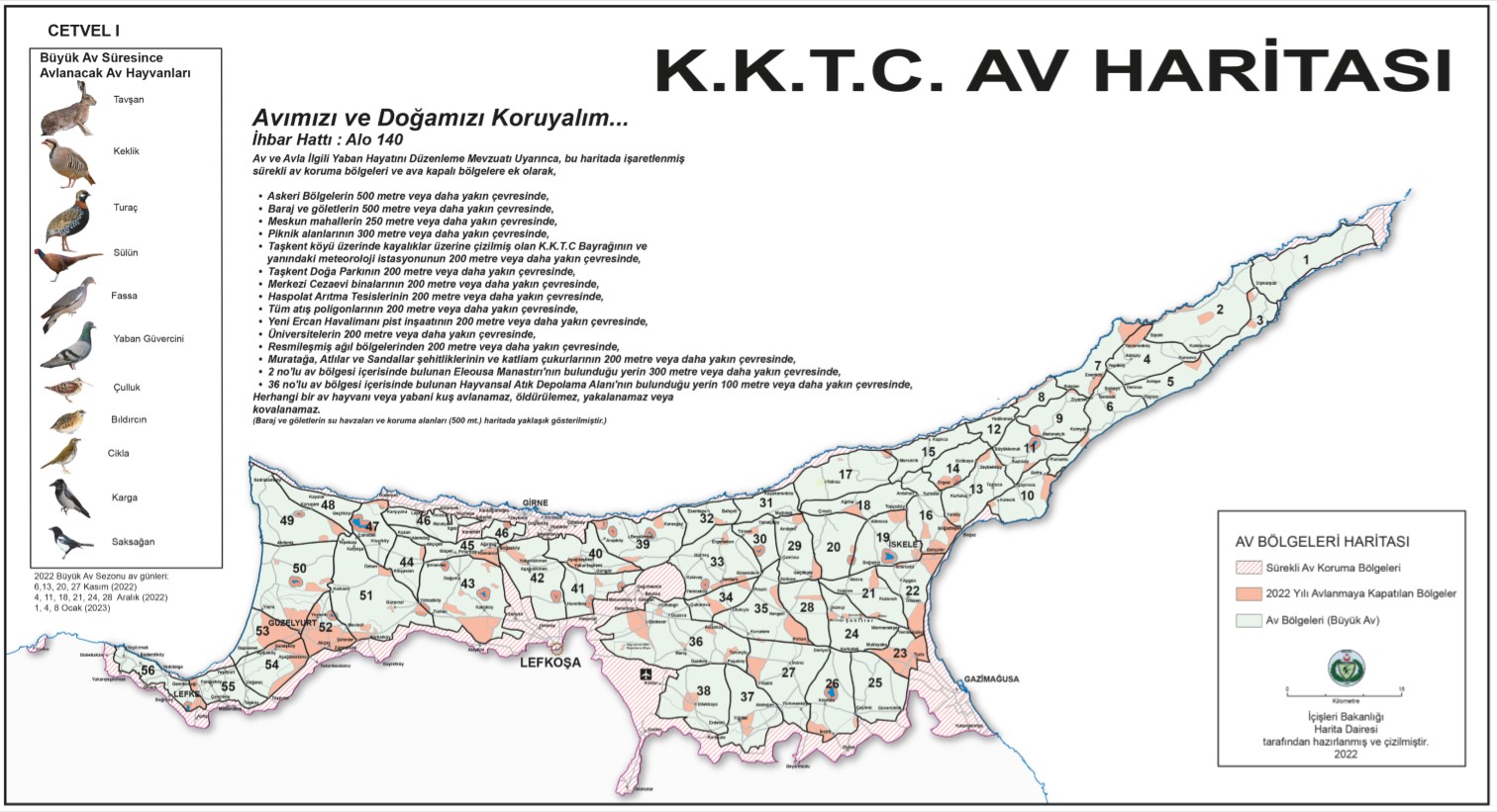 Büyük Av Haritasında işaretlenmiş sürekli av koruma bölgeleri ve ava kapalı bölgelere ek olarak: