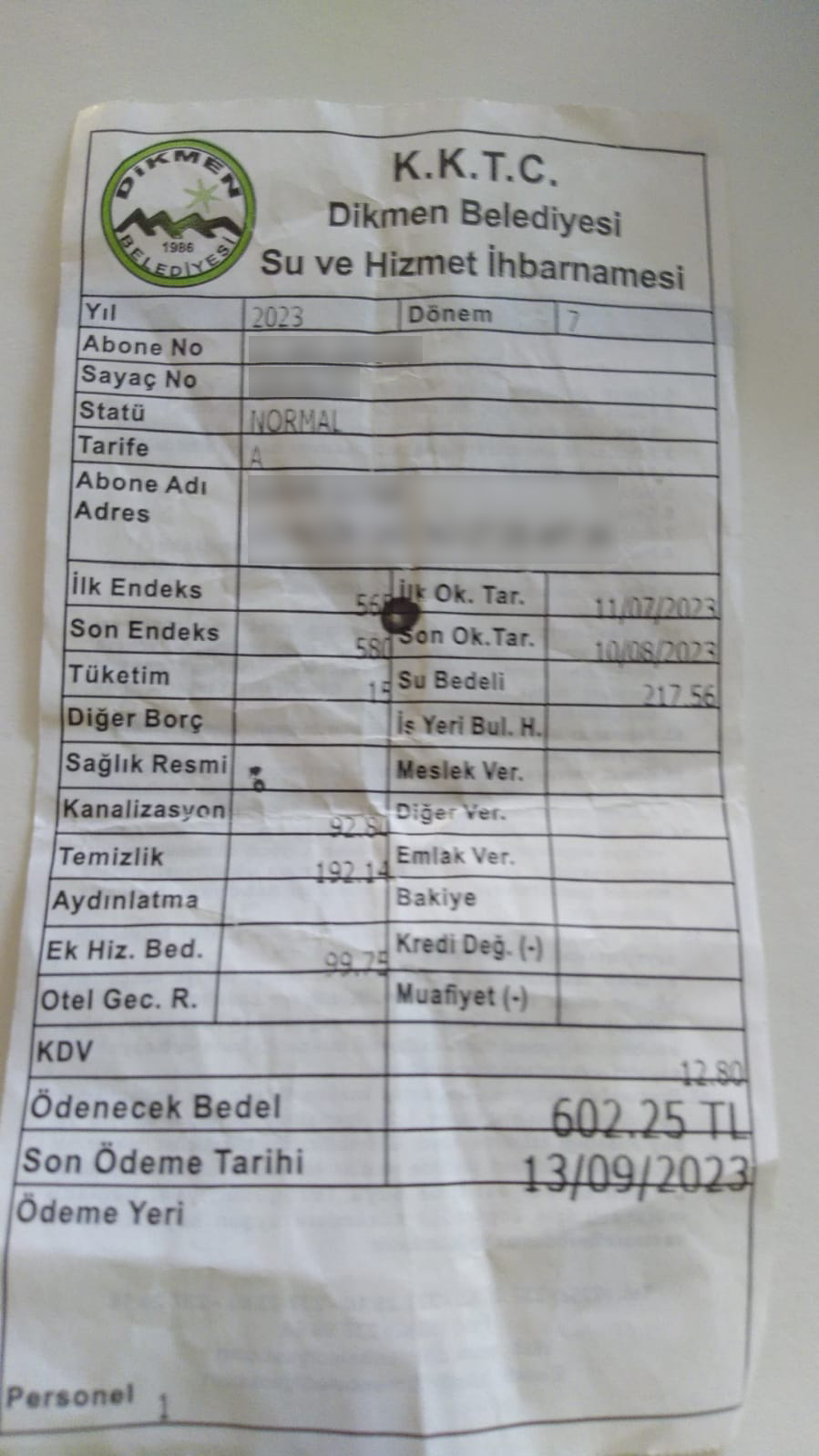 Dikmen Belediyesi’nin abonelerine bu ay gönderdiği su faturaları dudak uçuklattı. Su ücretinde herhangi bir düzenlemeye gidilmezken, ek ücretlere yüzde 100 zam geldi.