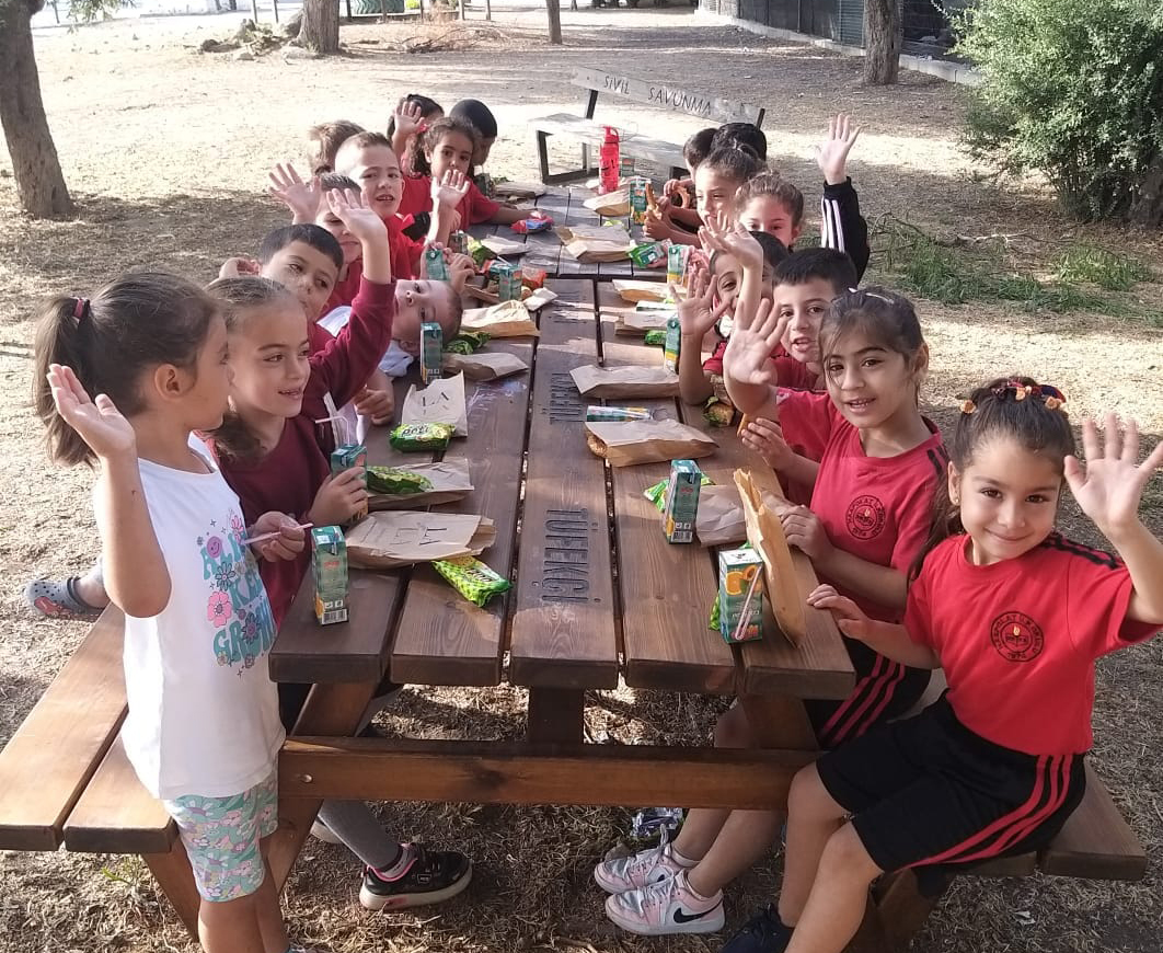 Etkinlikte çocuklar birlikte piknik ortamında kahvaltı yapmanın mutluluğunu yaşarlarken, neşe içerisinde kahvaltılarını yapıp, derslerine devam ettiler.