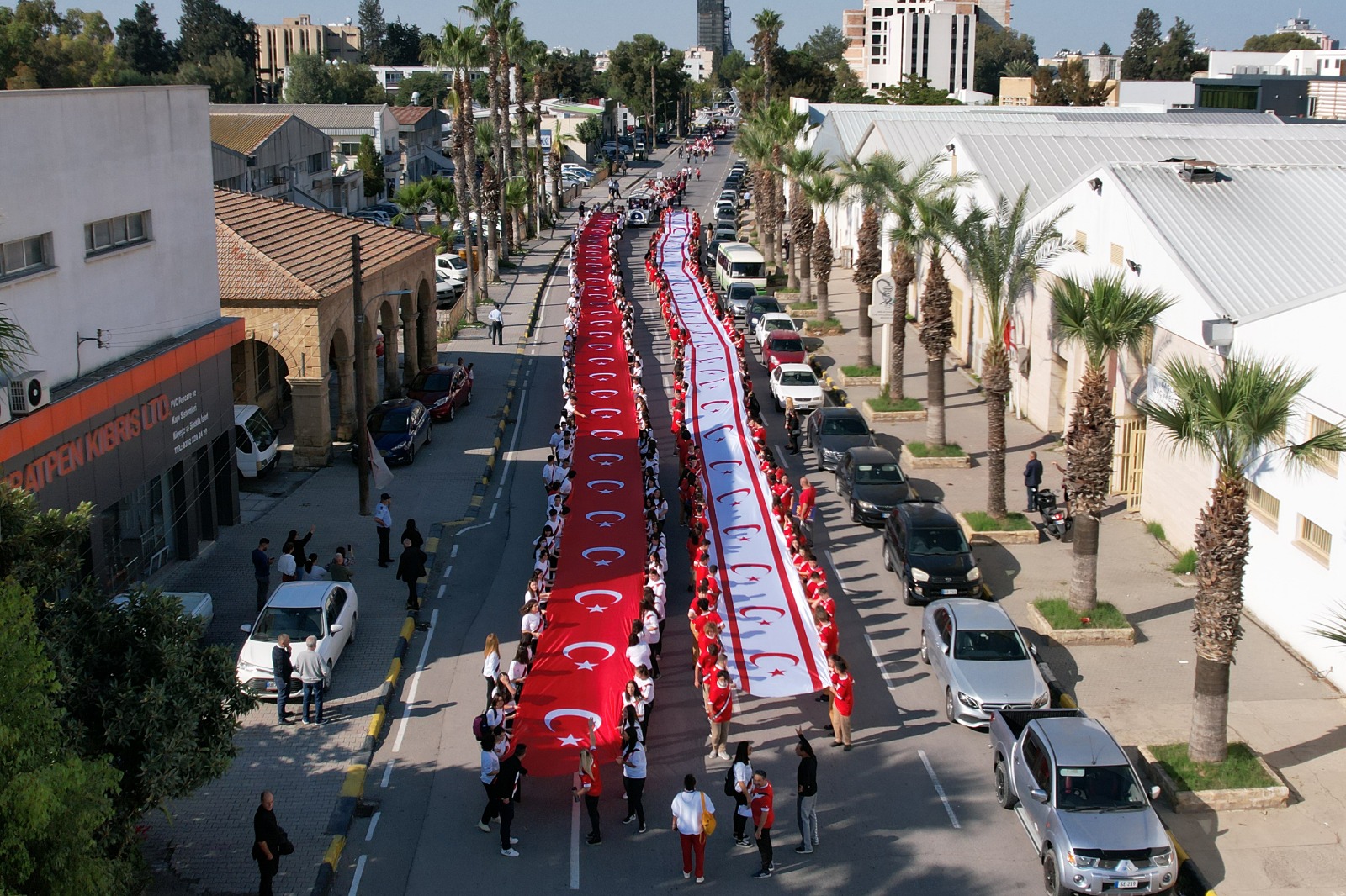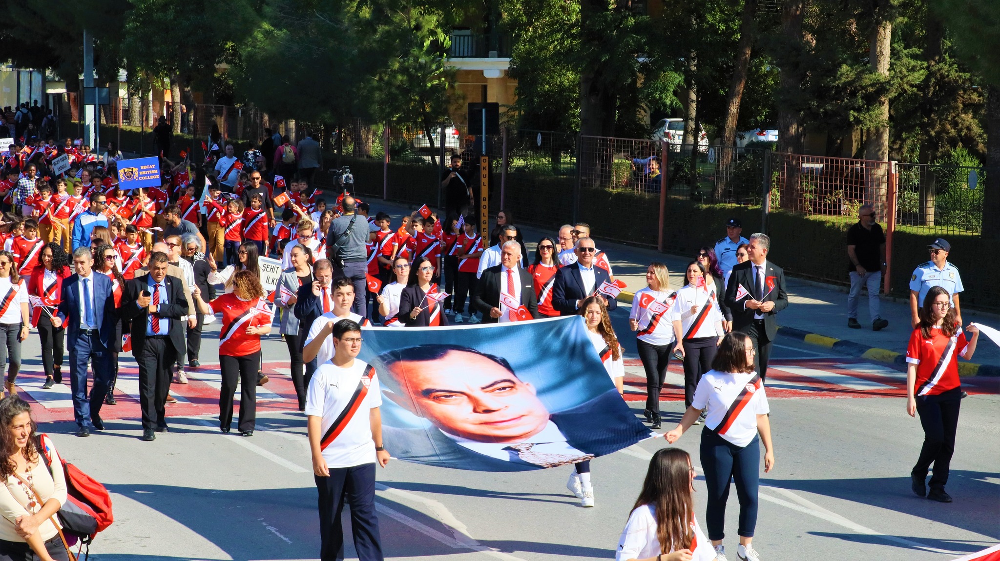 100’er metrelik KKTC ve TC bayraklarının taşındığı yürüyüşte, Kıbrıs Türk Halkının Varoluş ve Özgürlük Mücadelesi Lideri Dr. Fazıl Küçük ve Kurucu Cumhurbaşkanı Rauf Raif Denktaş’ın fotoğrafları da taşındı.