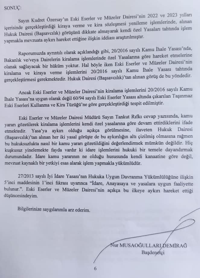 Halkın Partisi Genel Başkanı Kudret Özersay, Ombudsman’a yaptığı “Turizm Bakanlığı’na bağlı Eski Eserler ve Müzeler Dairesi tarafından yapılan kiralama işlemlerinin yasa dışı olduğu” şikayeti sonrası hazırlanan raporu kamuoyu ile paylaştı.