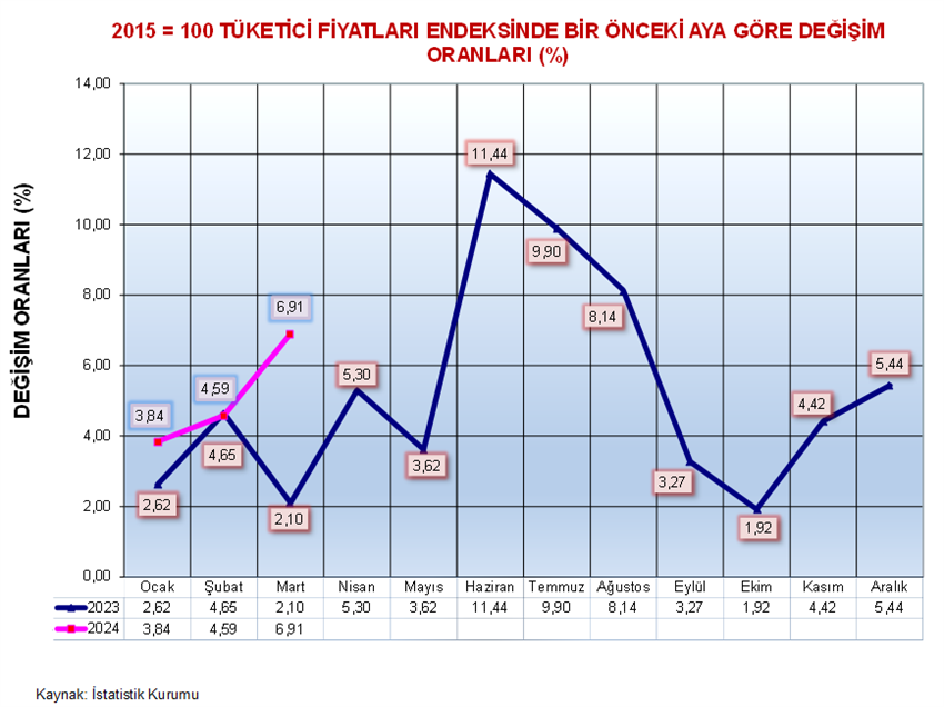 İstatistik Kurumu, mart ayı hayat pahalılığı oranını yüzde 6,91 olarak açıkladı.