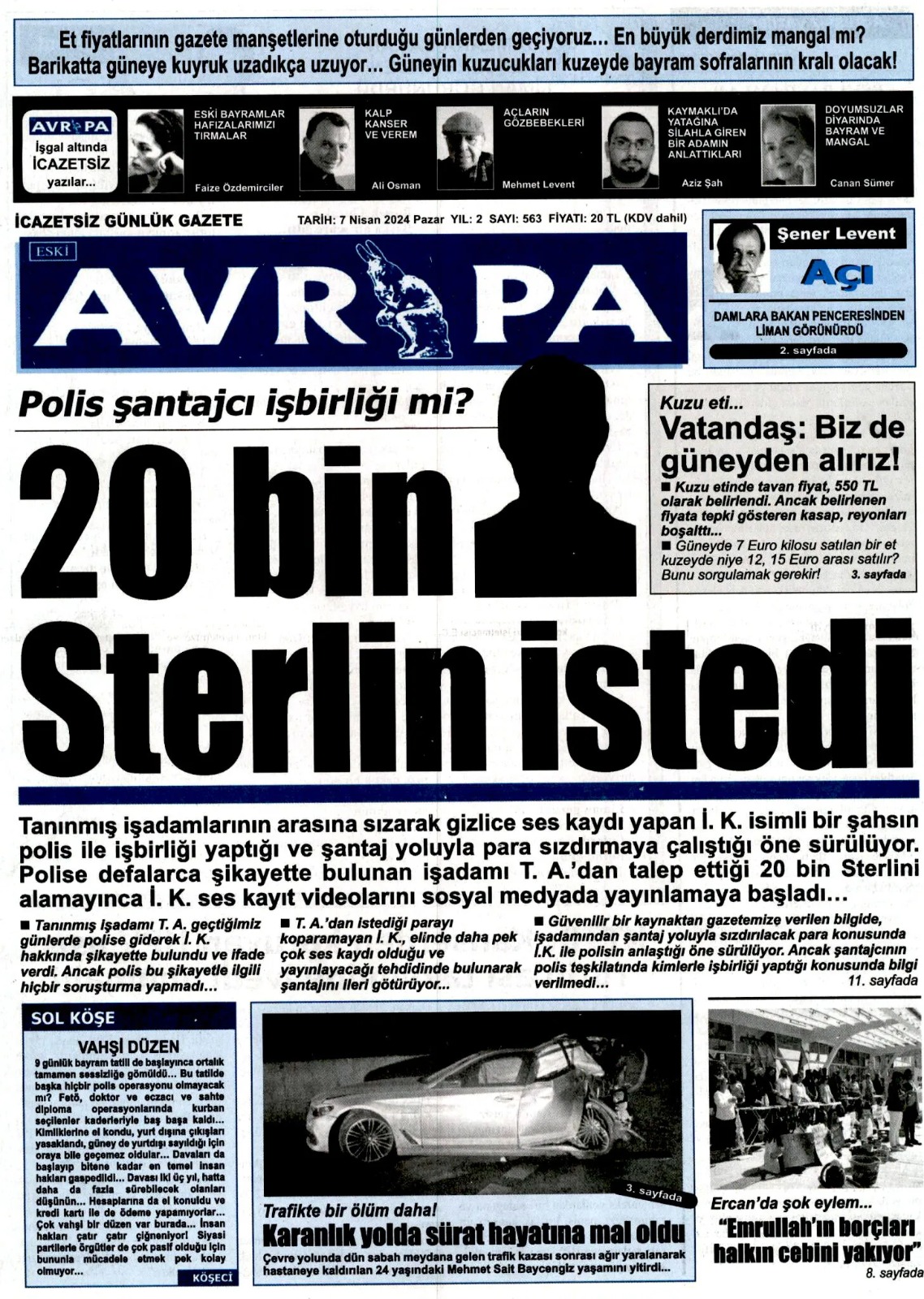 7 Nisan 2024 Pazar Gazete Manşetleri