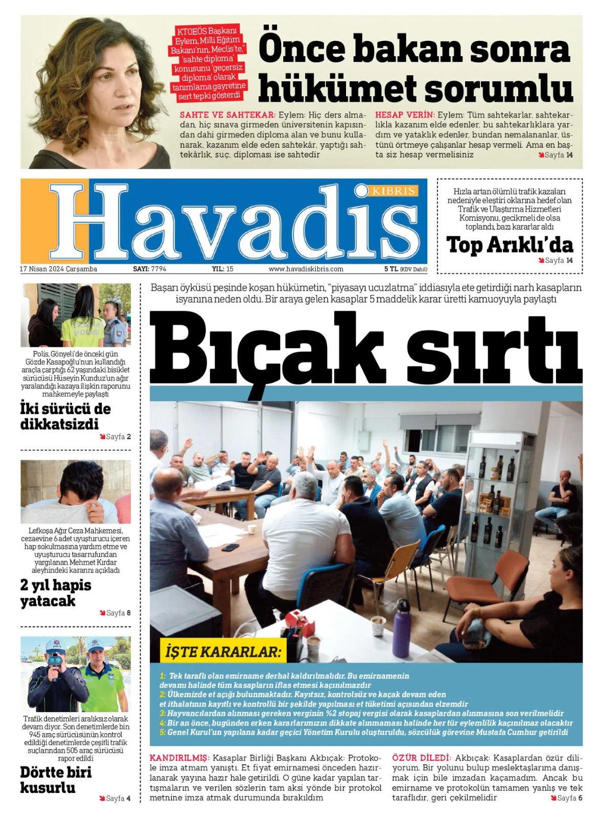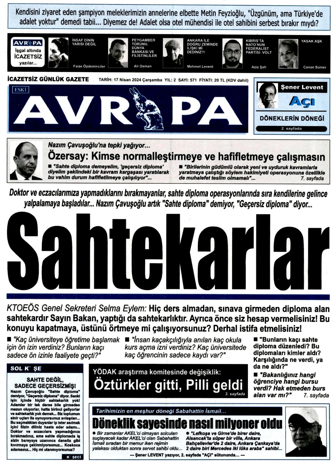 17 Nisan 2024 Çarşamba Gazete Manşetleri