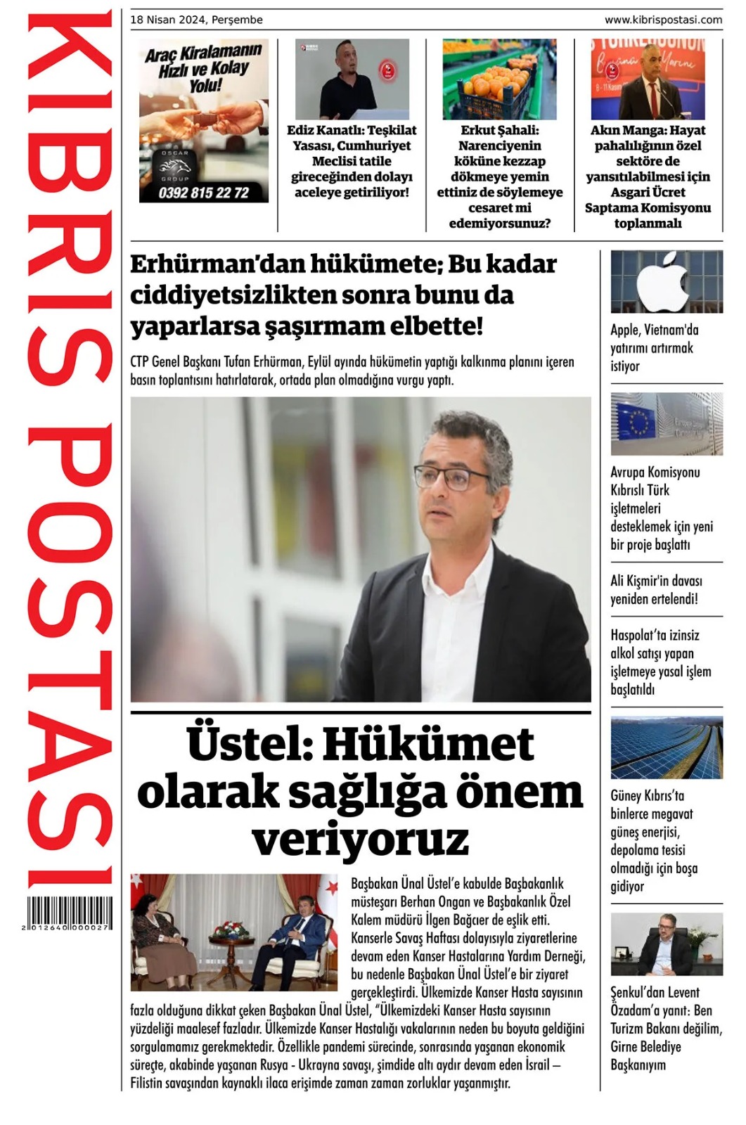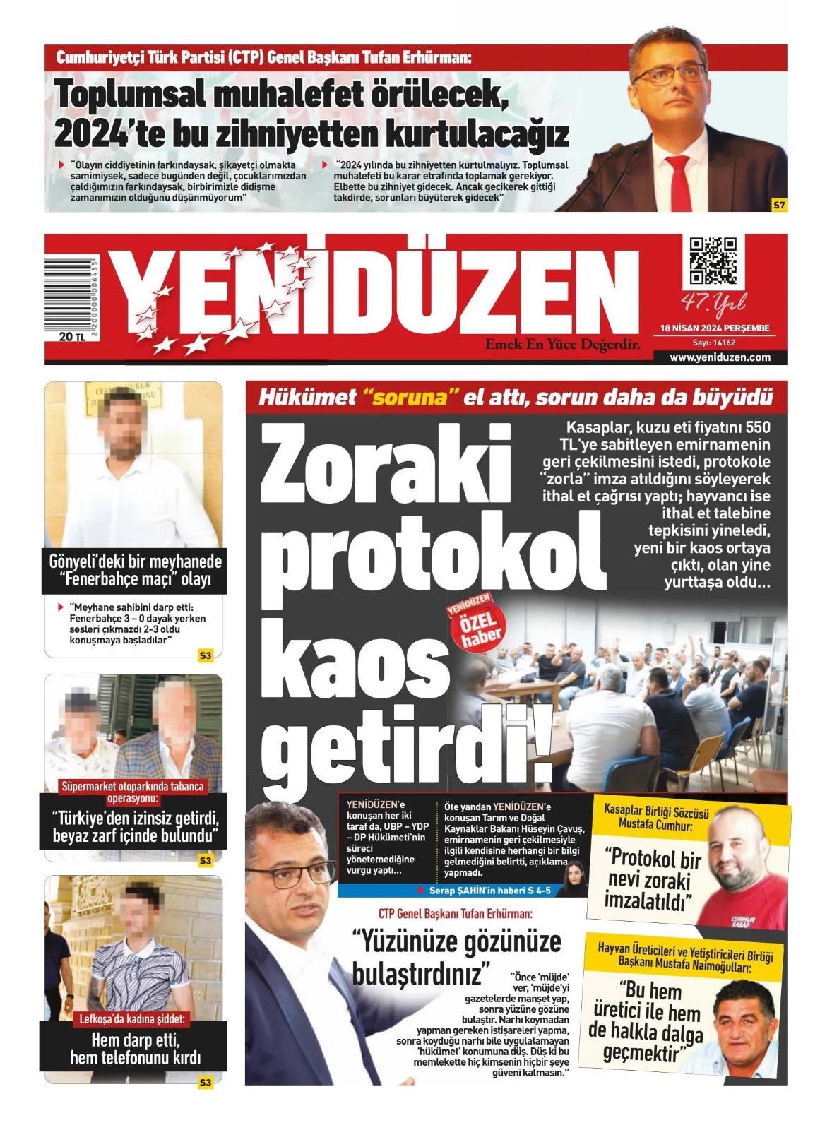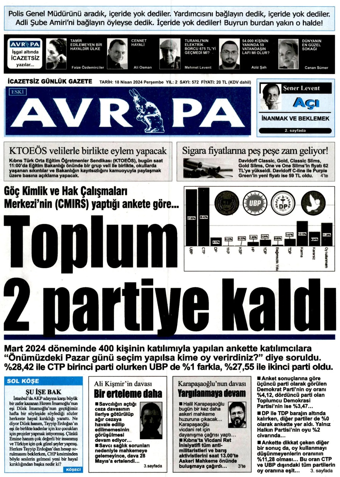 18 Nisan 2024 Perşembe Gazete Manşetleri