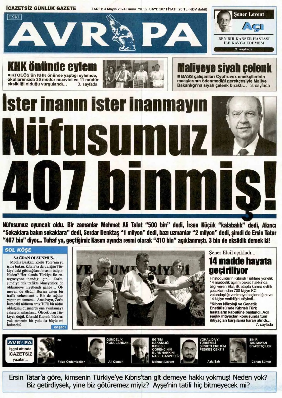 3 Mayıs 2024 Cuma Gazete Manşetleri