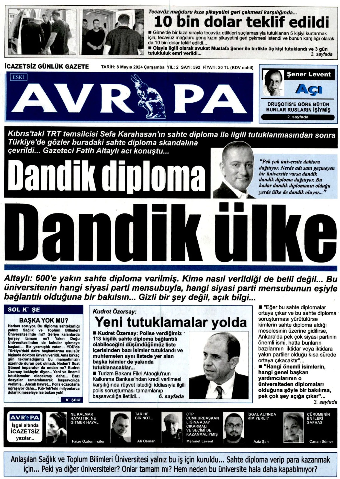 8 Mayıs 2024 Çarşamba Gazete Manşetleri