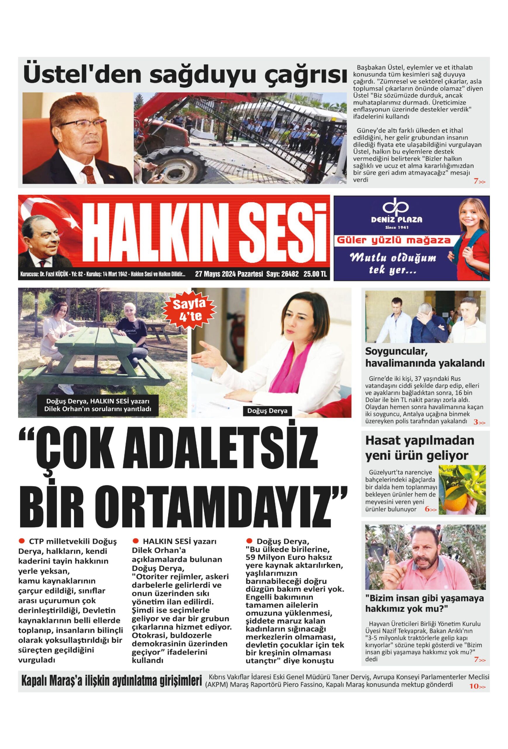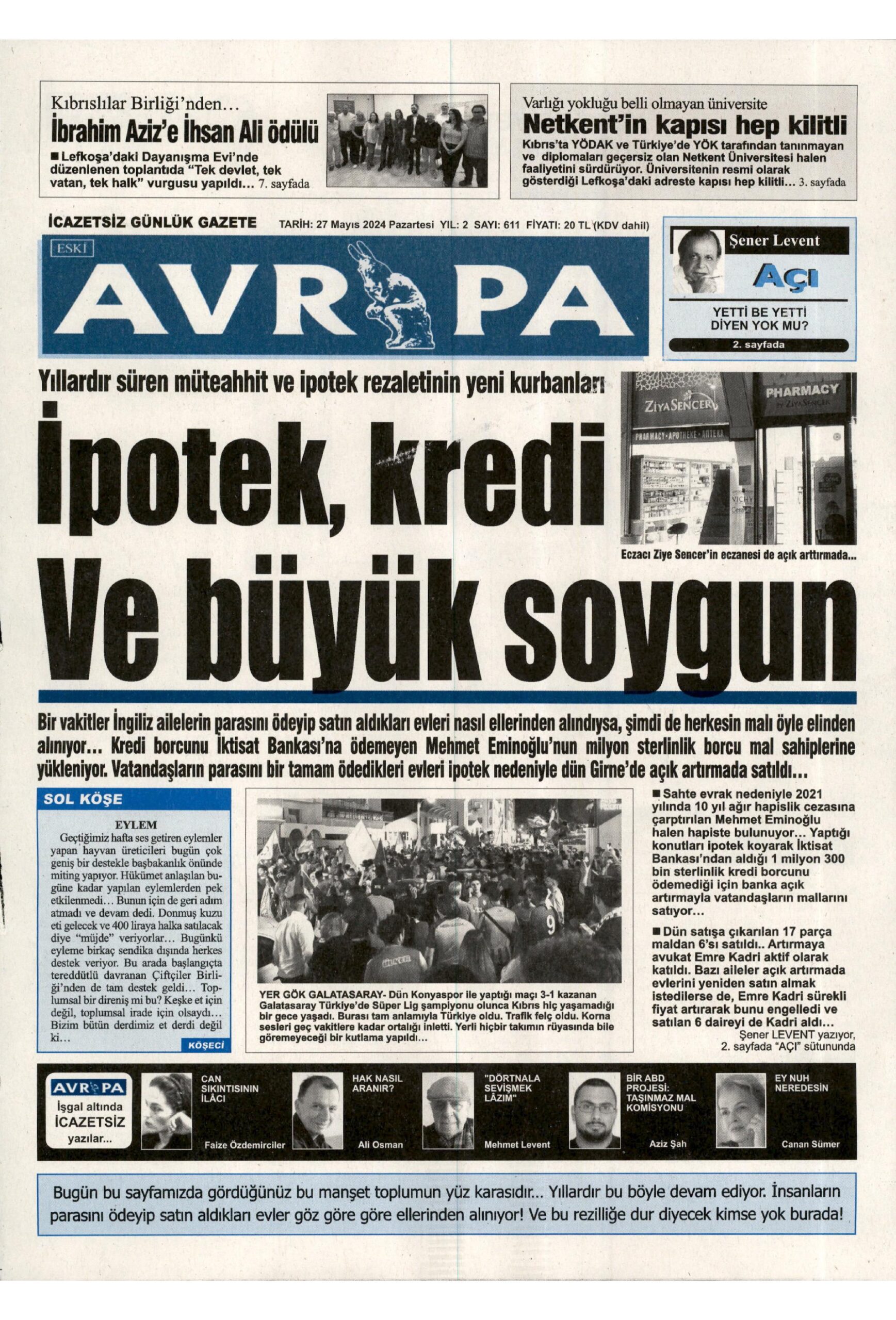 27 Mayıs 2024 Pazartesi Gazete Manşetleri