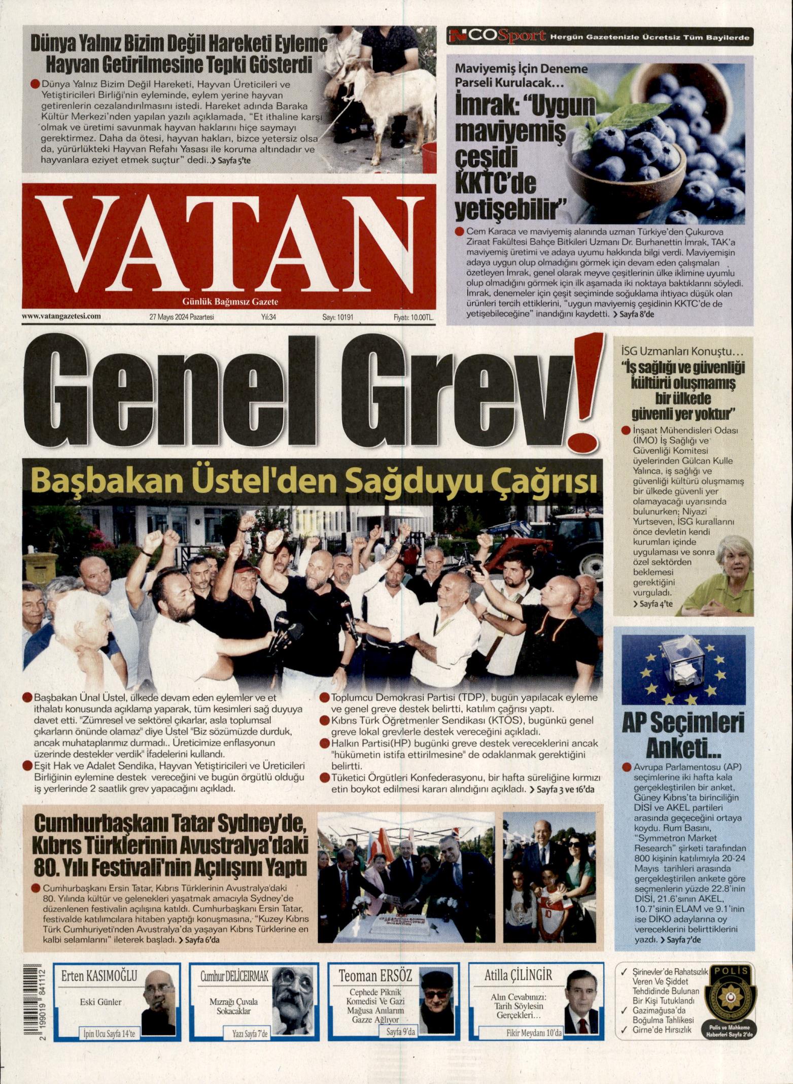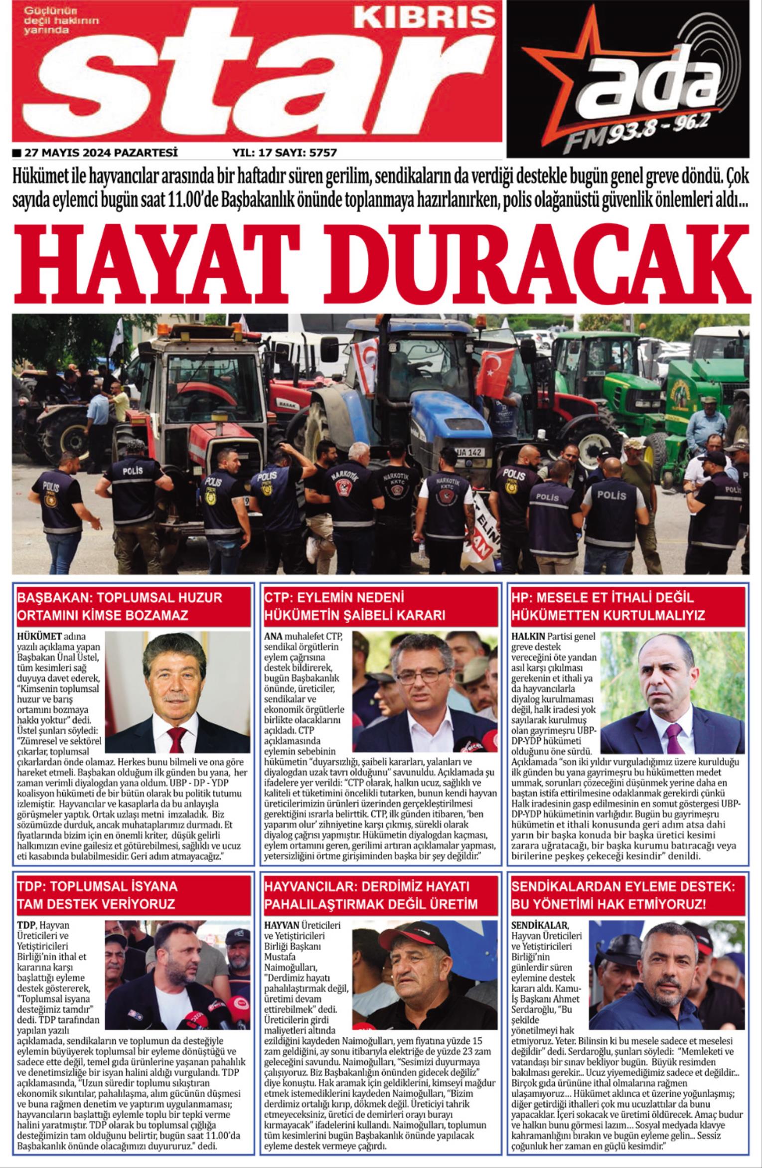 27 Mayıs 2024 Pazartesi gazete manşetleri