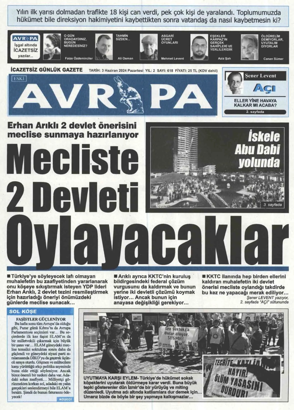3 Haziran 2024 Pazartesi Gazete Manşetleri