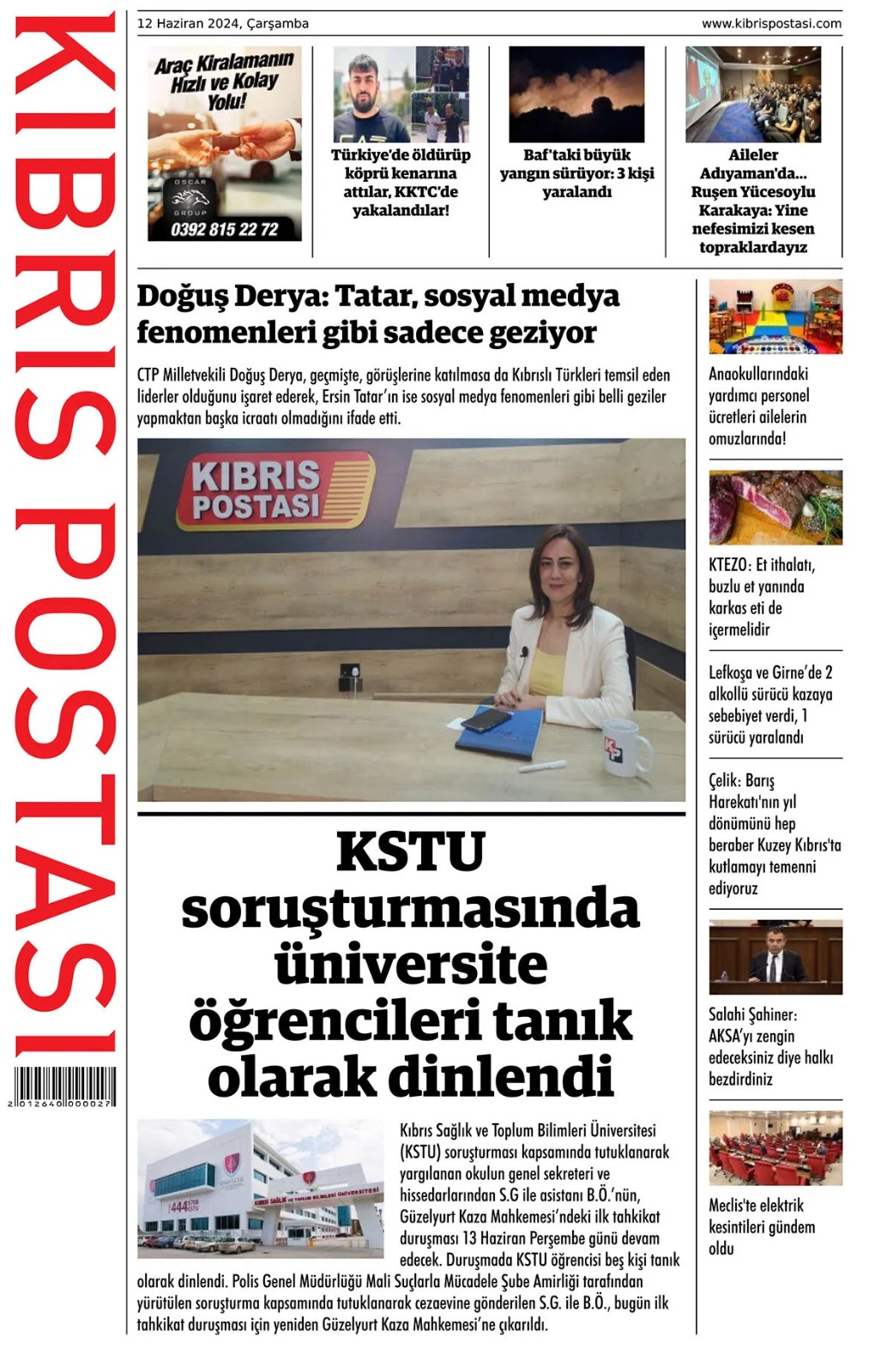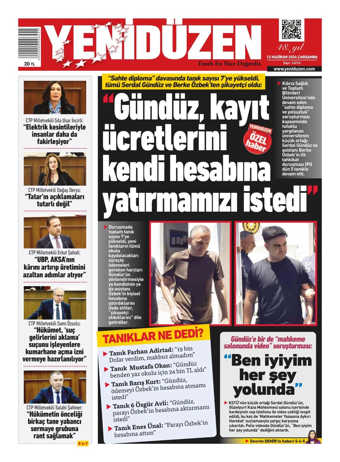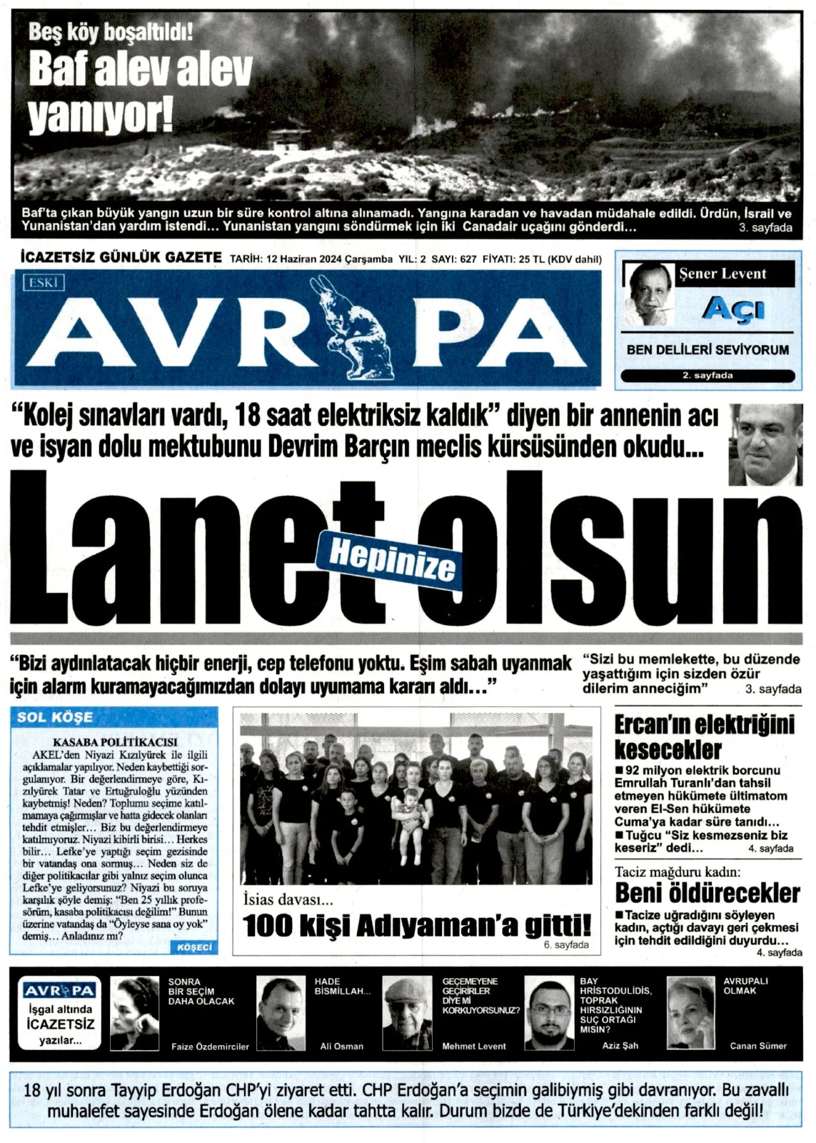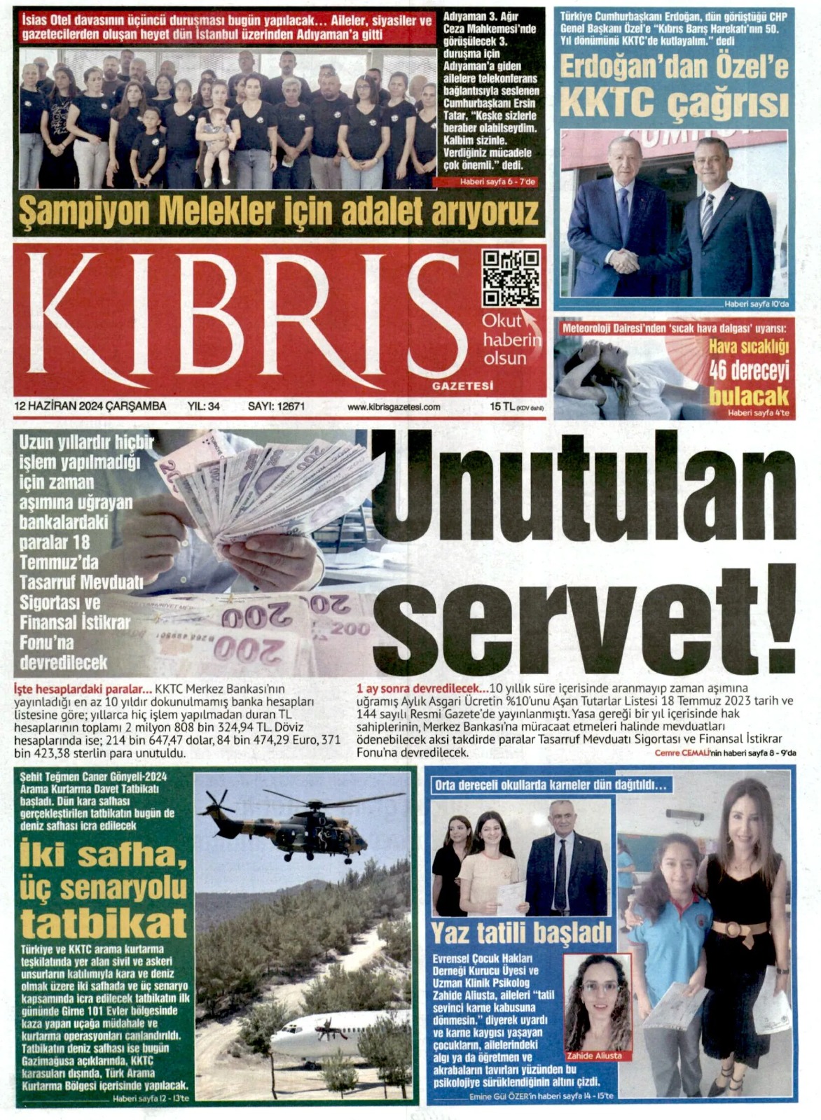12 Haziran 2024 Çarşamba Gazete Manşetleri