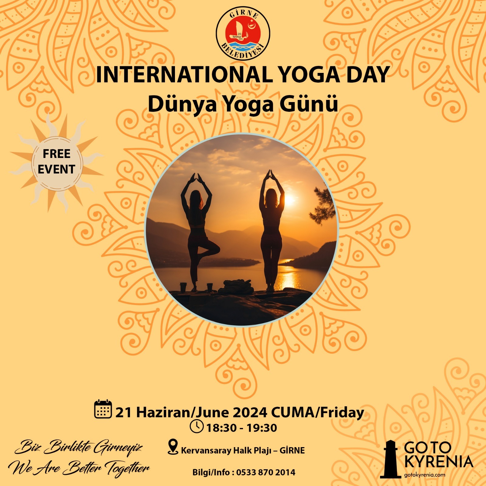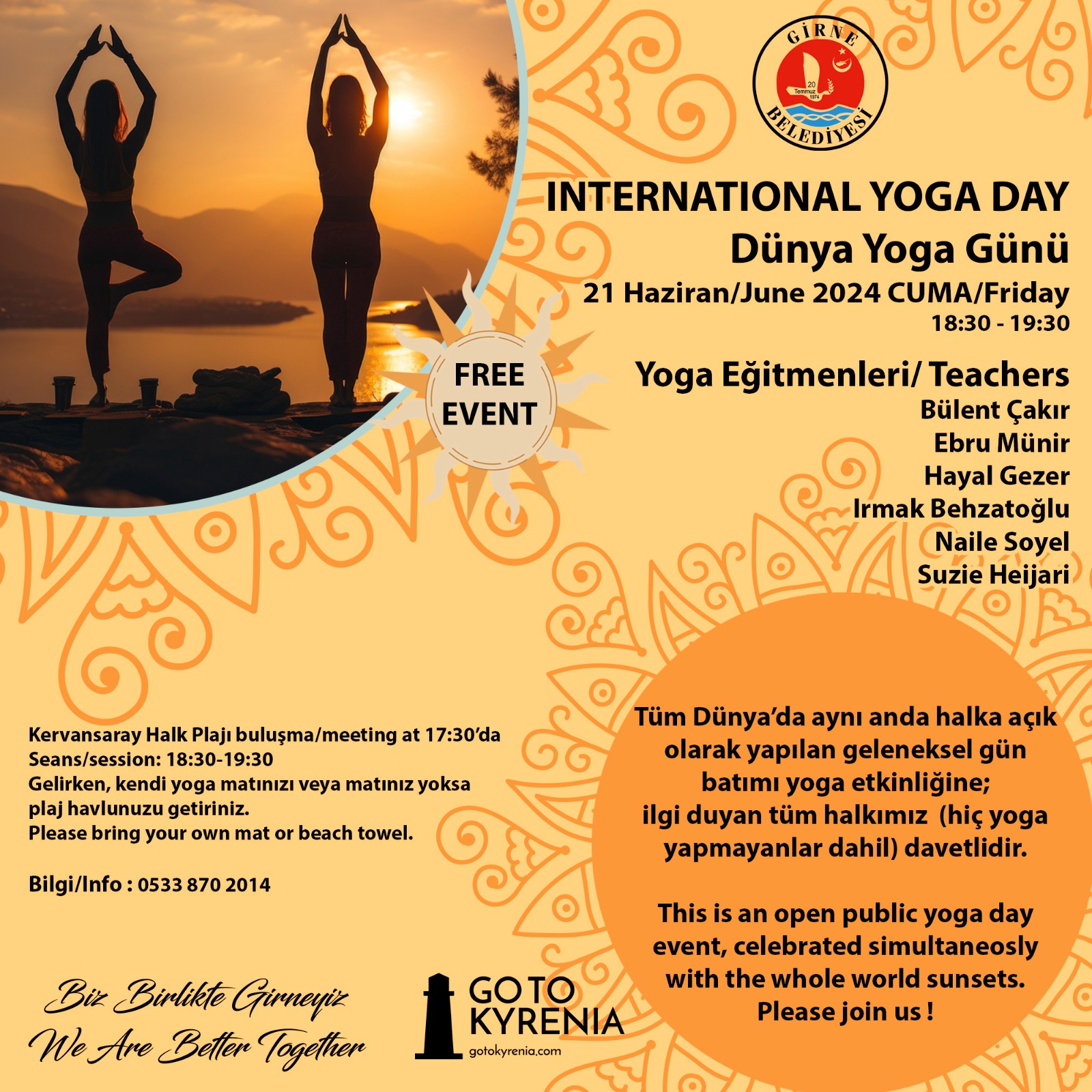 Tüm Dünya ülkelerinde Global bir şekilde kutlanan 21 Haziran Dünya Yoga Günü, yine aynı gün ve saatlerde, Girne Belediyesi organizasyonunda Girne’de de gerçekleştiriliyor.
