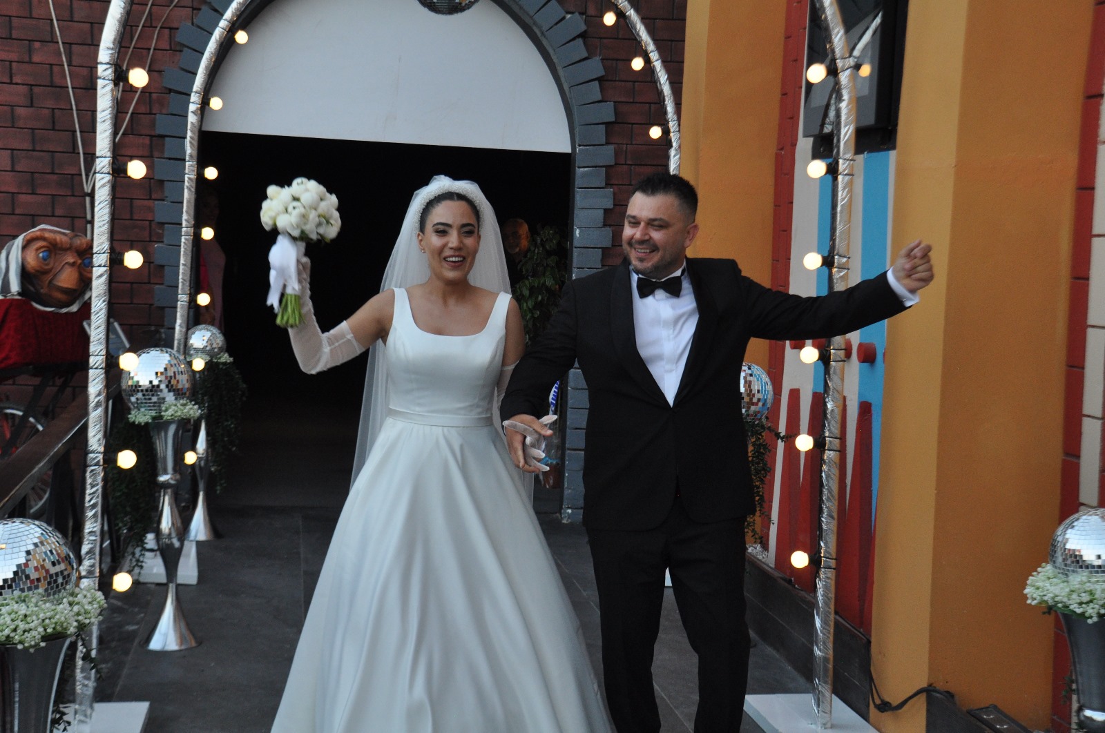 Sevdikleriyle bir araya gelerek hayatlarını birleştiren çift, gece boyunca dostlarından ve yakınlarından gelen tebrikleri coşkuyla kabul etti.