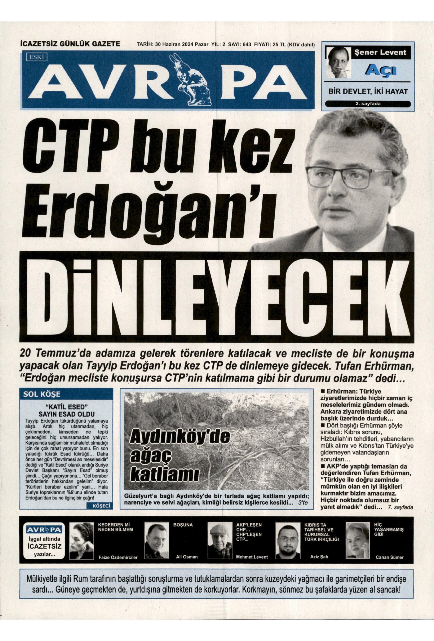 30 Haziran 2024 Pazar Gazete Manşetleri