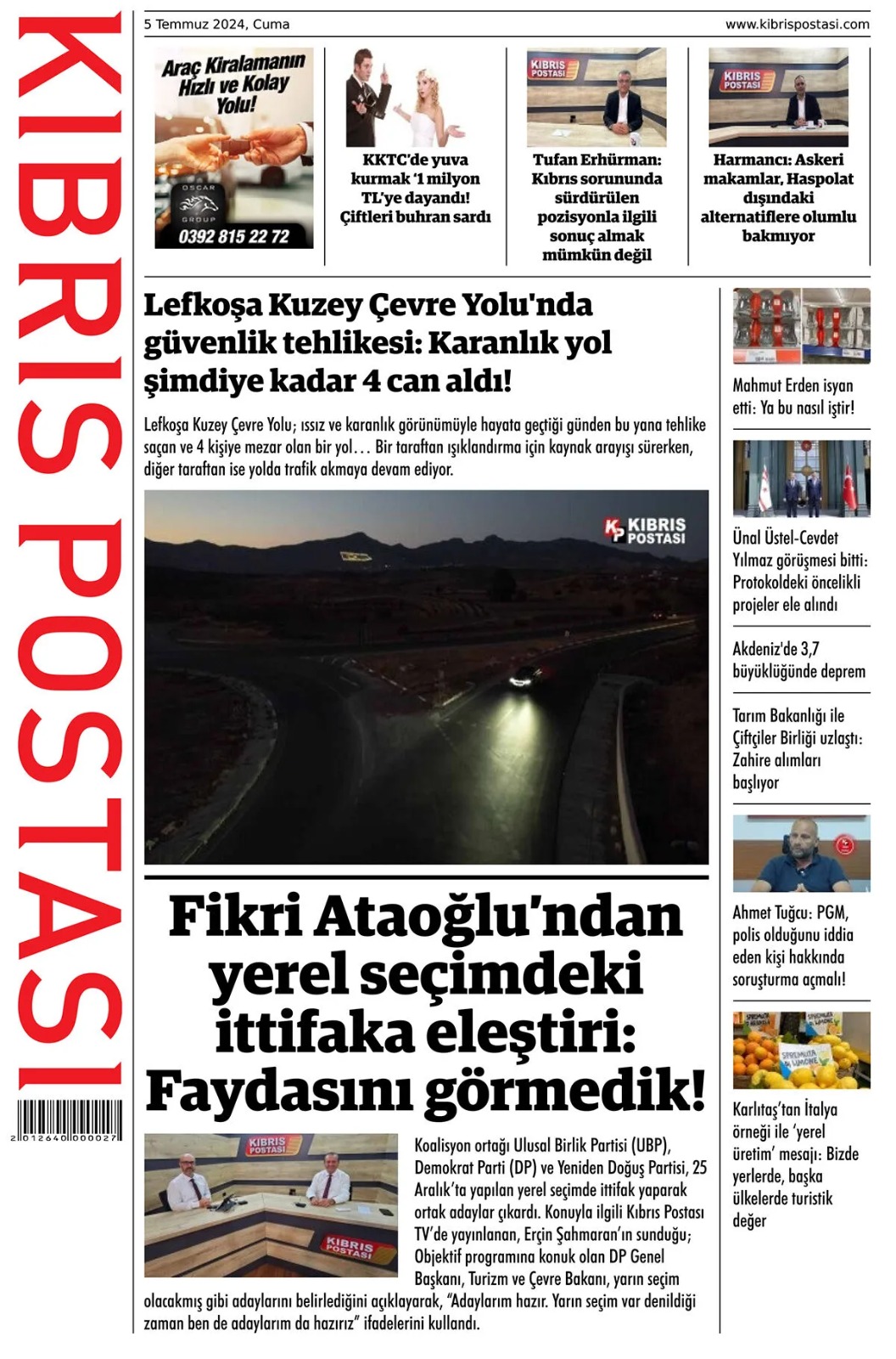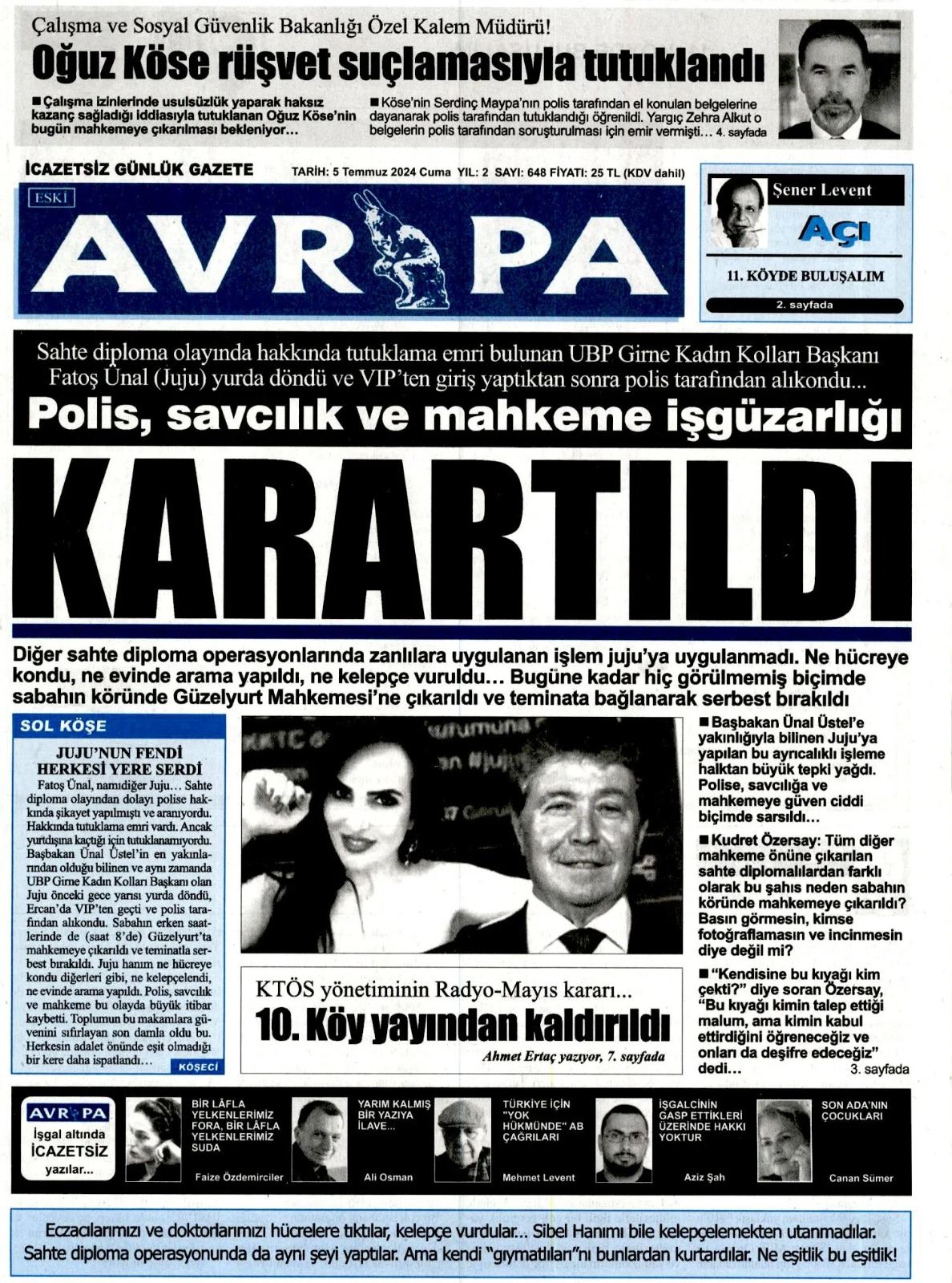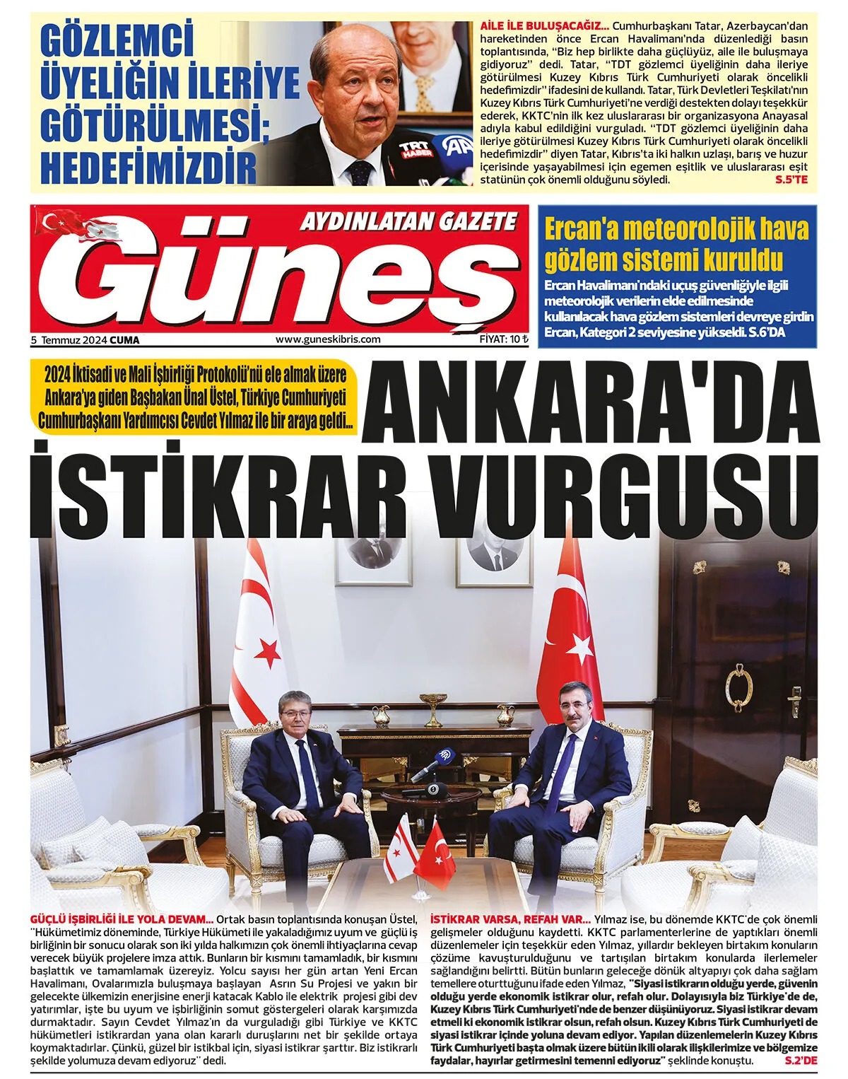 5 Temmuz 2024 Cuma Gazete Manşetleri