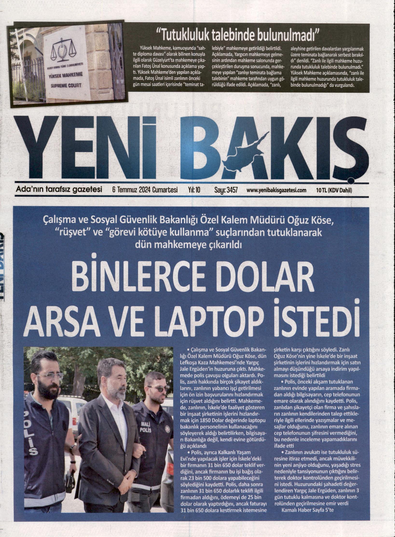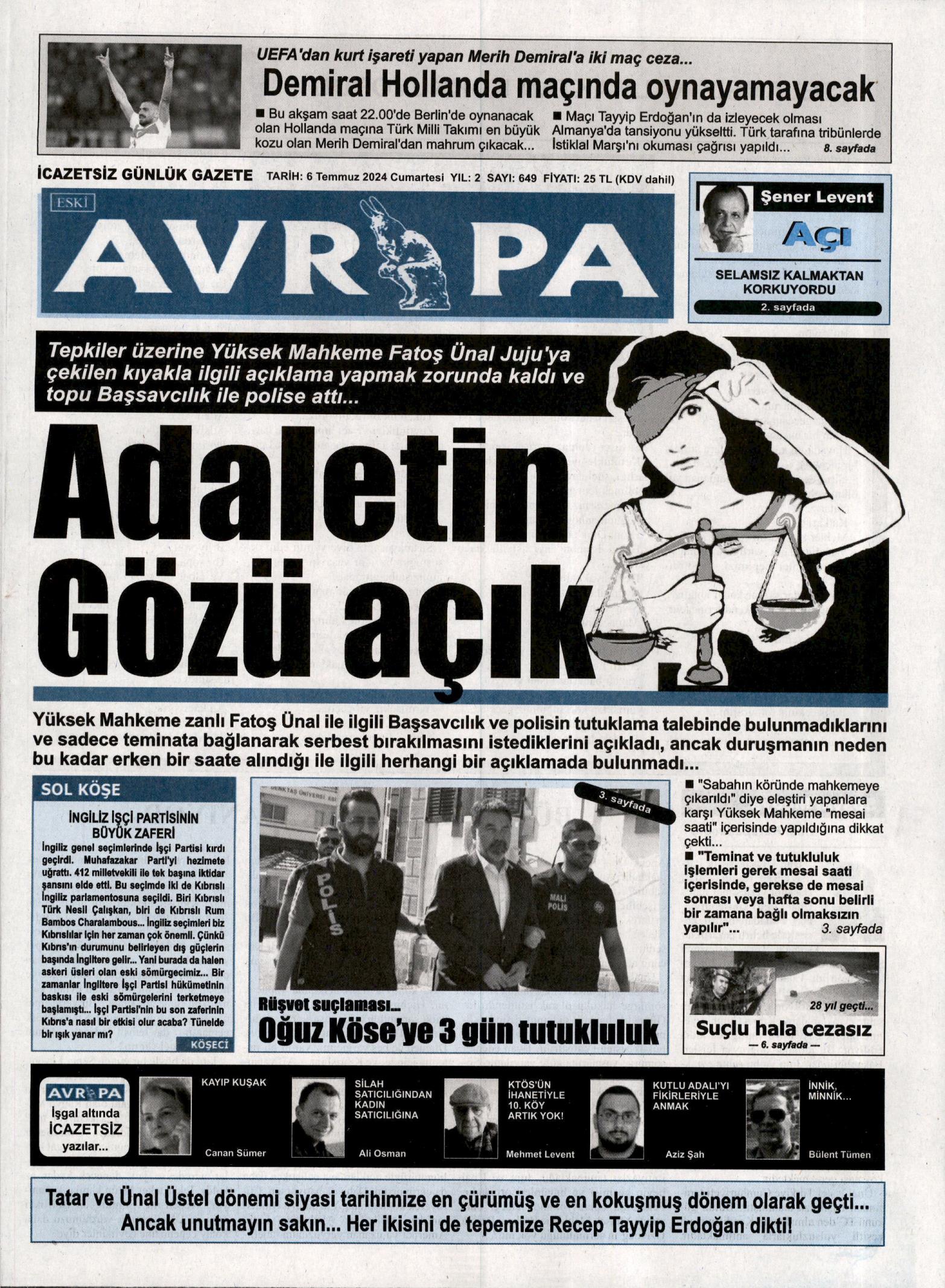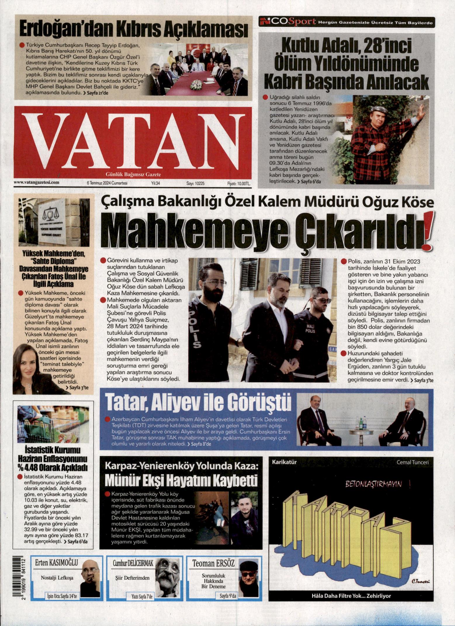 6 Temmuz 2024 Cumartesi gazete manşetleri