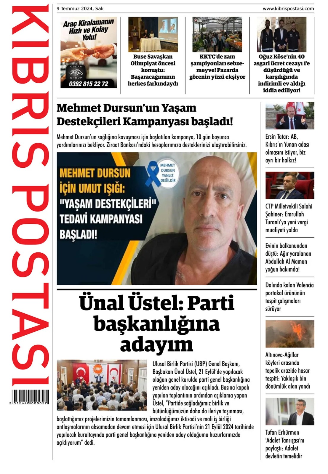 9 Temmuz 2024 Salı Gazete Manşetleri