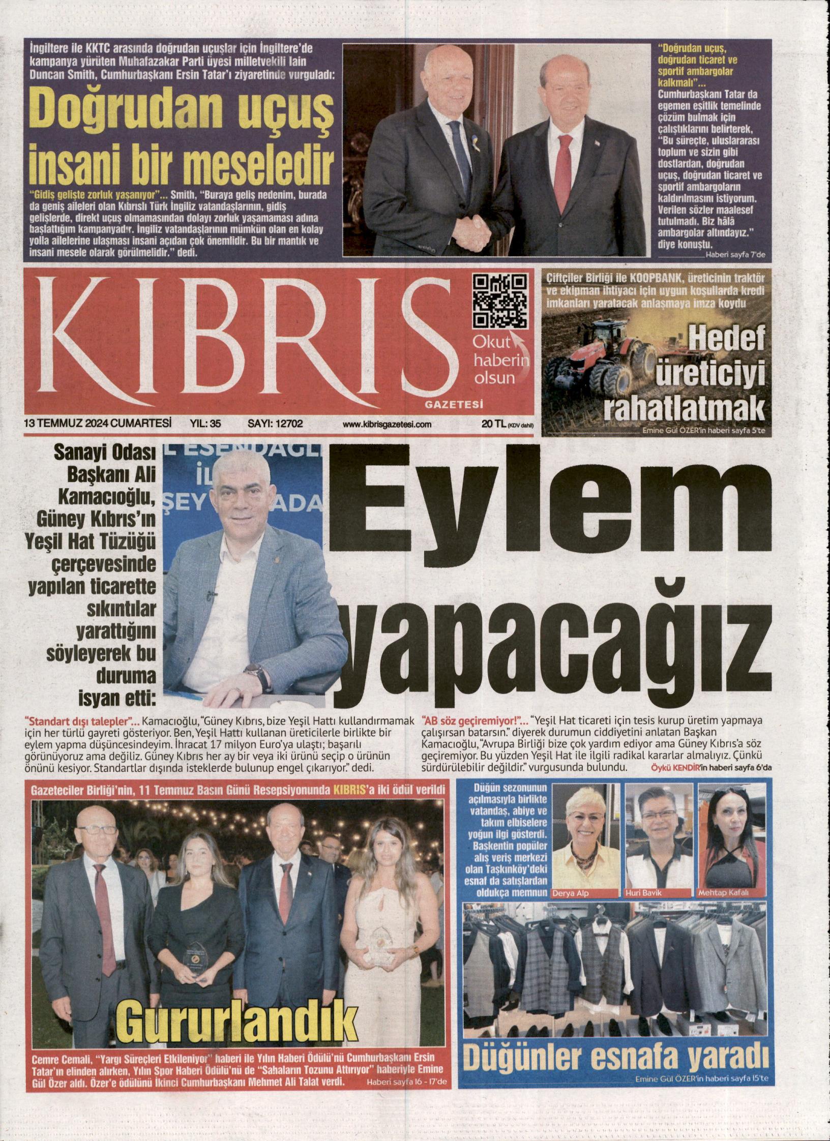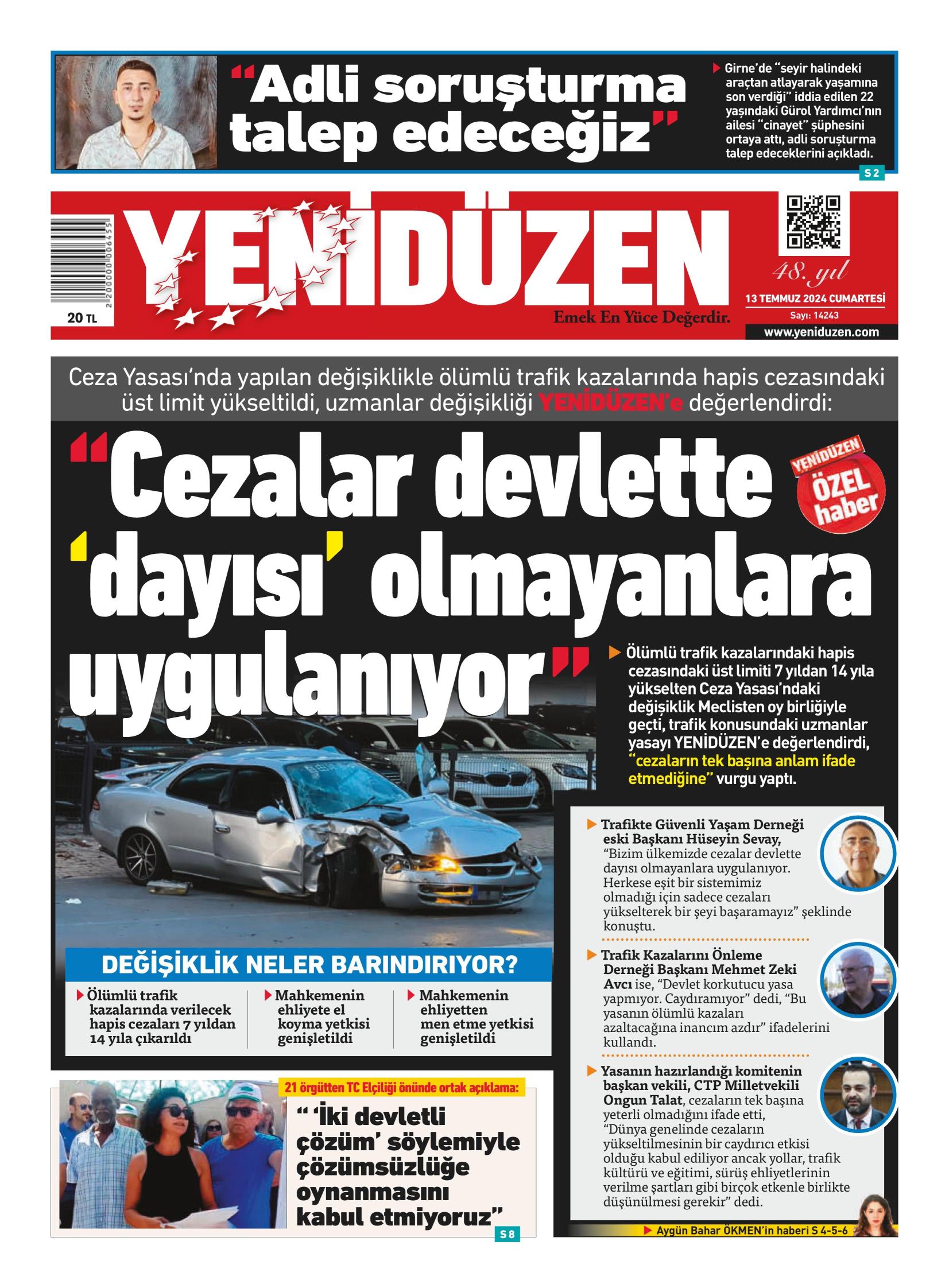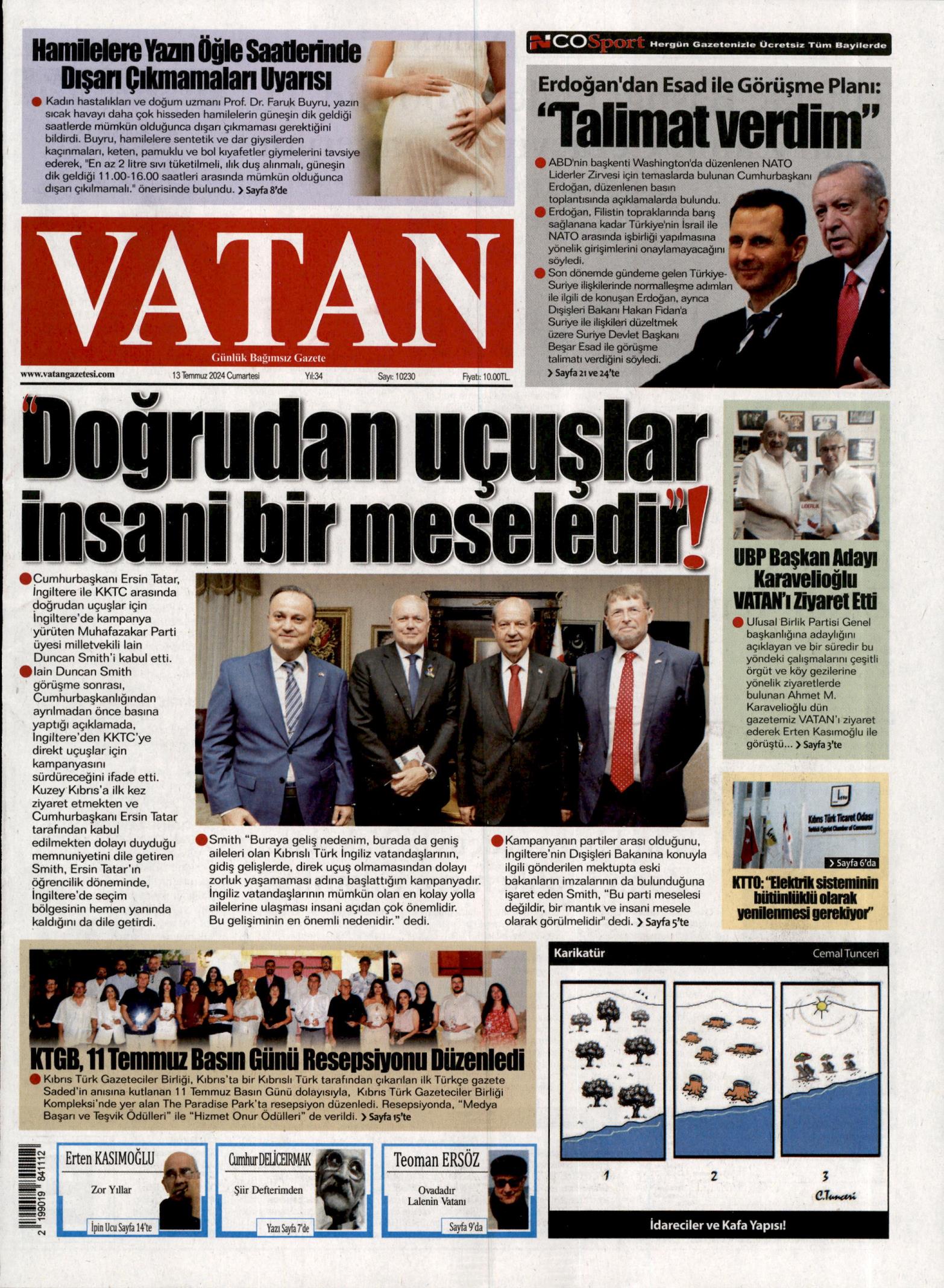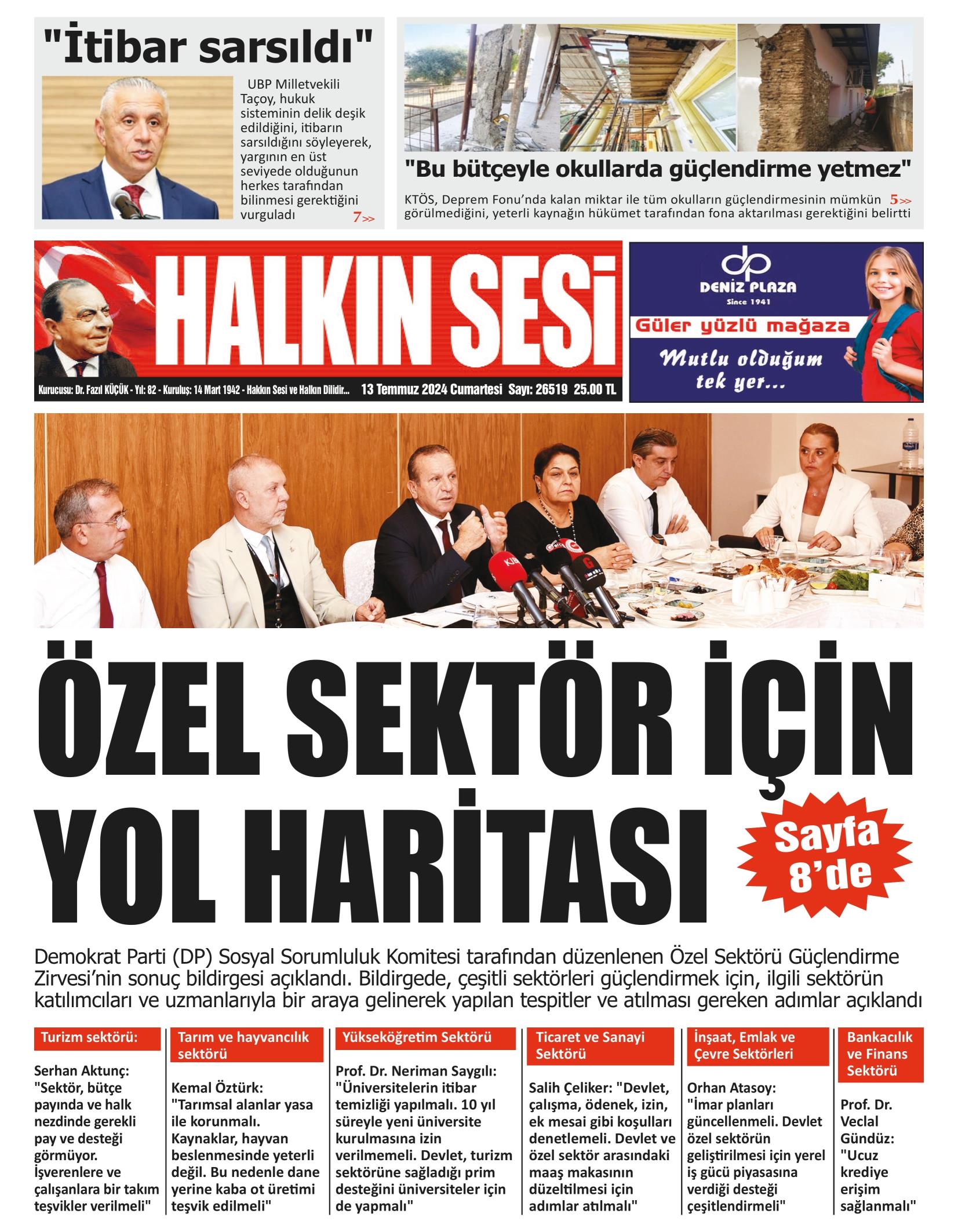 13 Temmuz 2024 Cumartesi Gazete Manşetleri