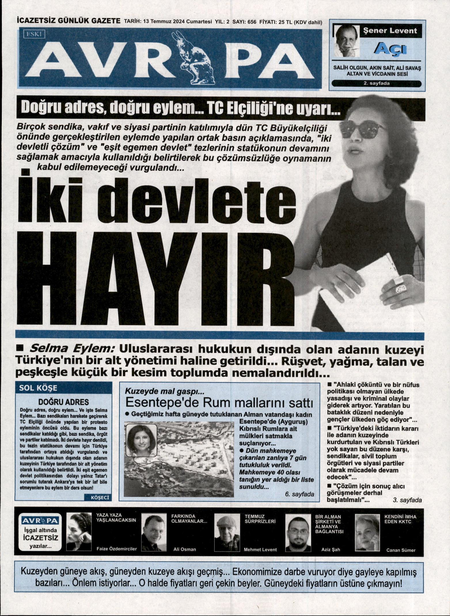 13 Temmuz 2024 Cumartesi gazete manşetleri