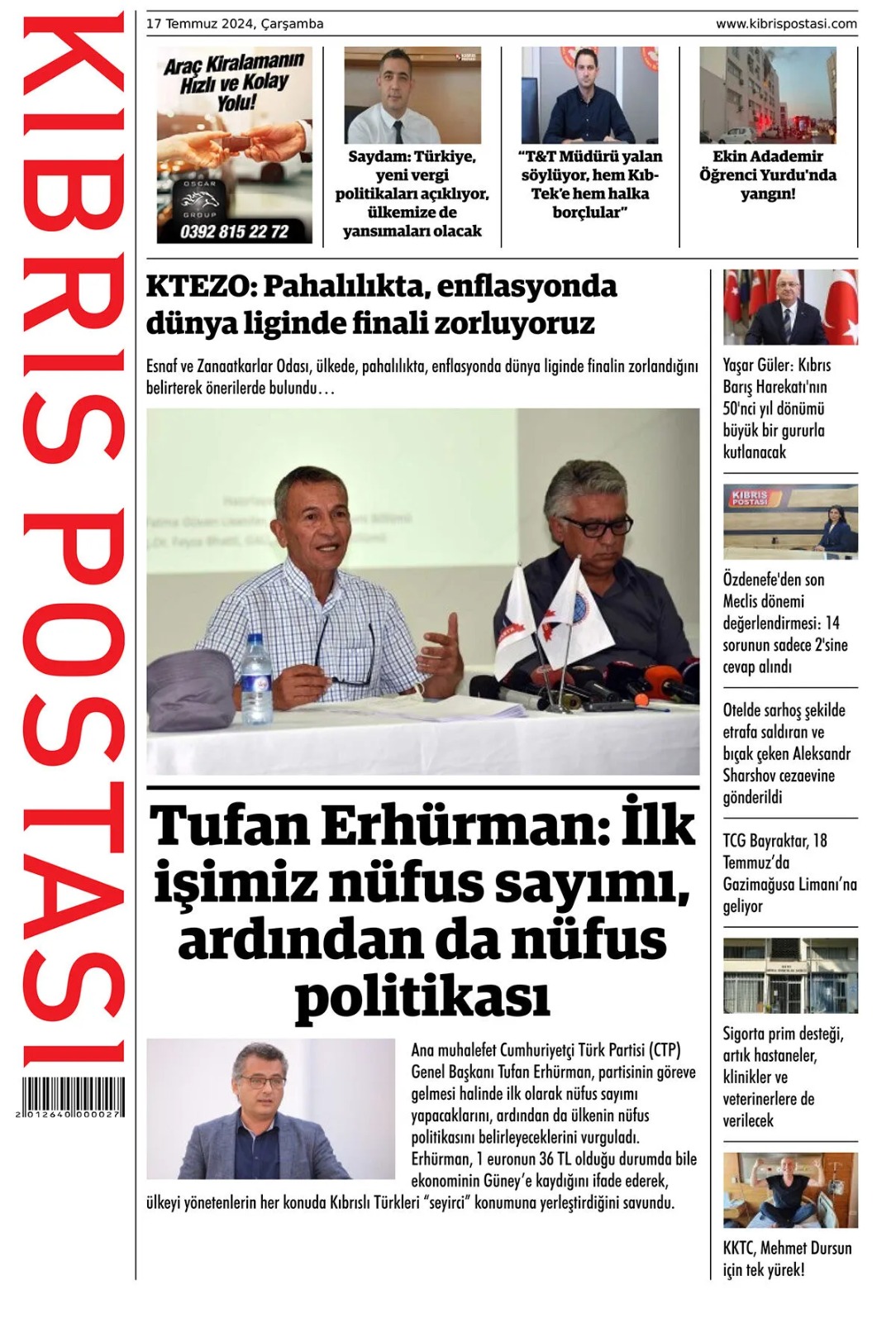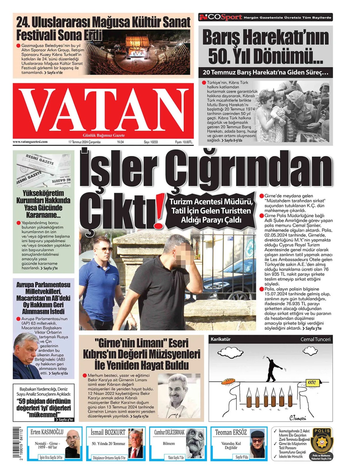 17 Temmuz 2024 Çarşamba Gazete Manşetleri