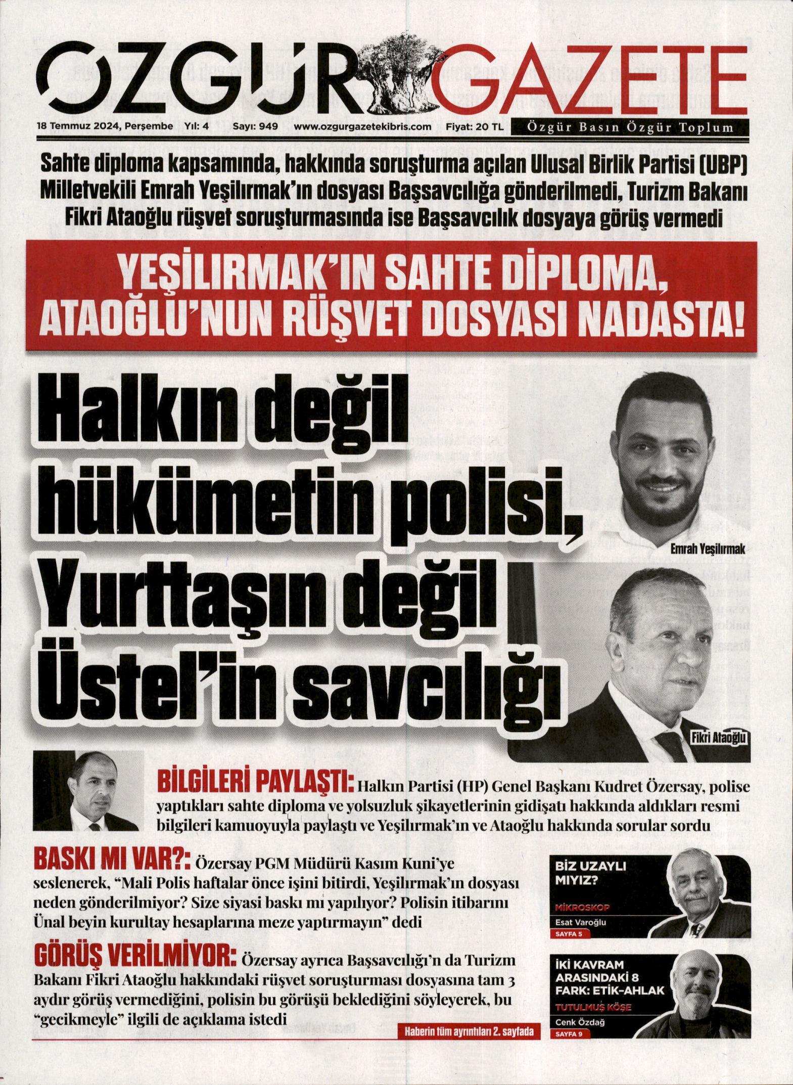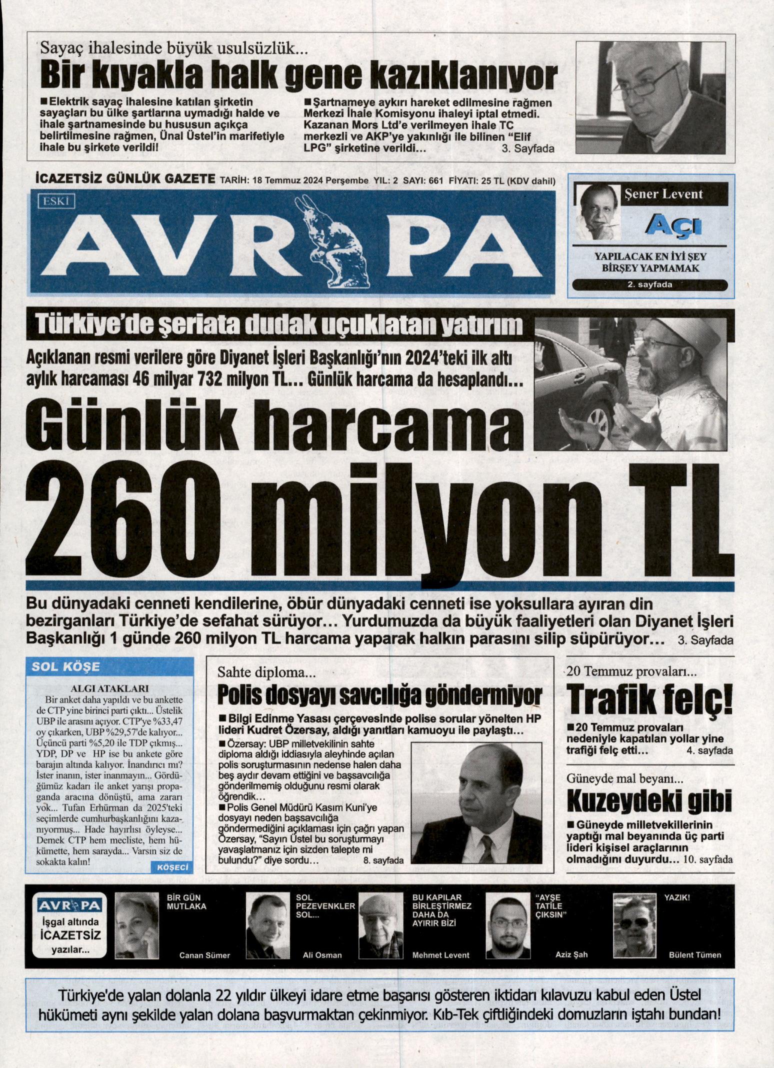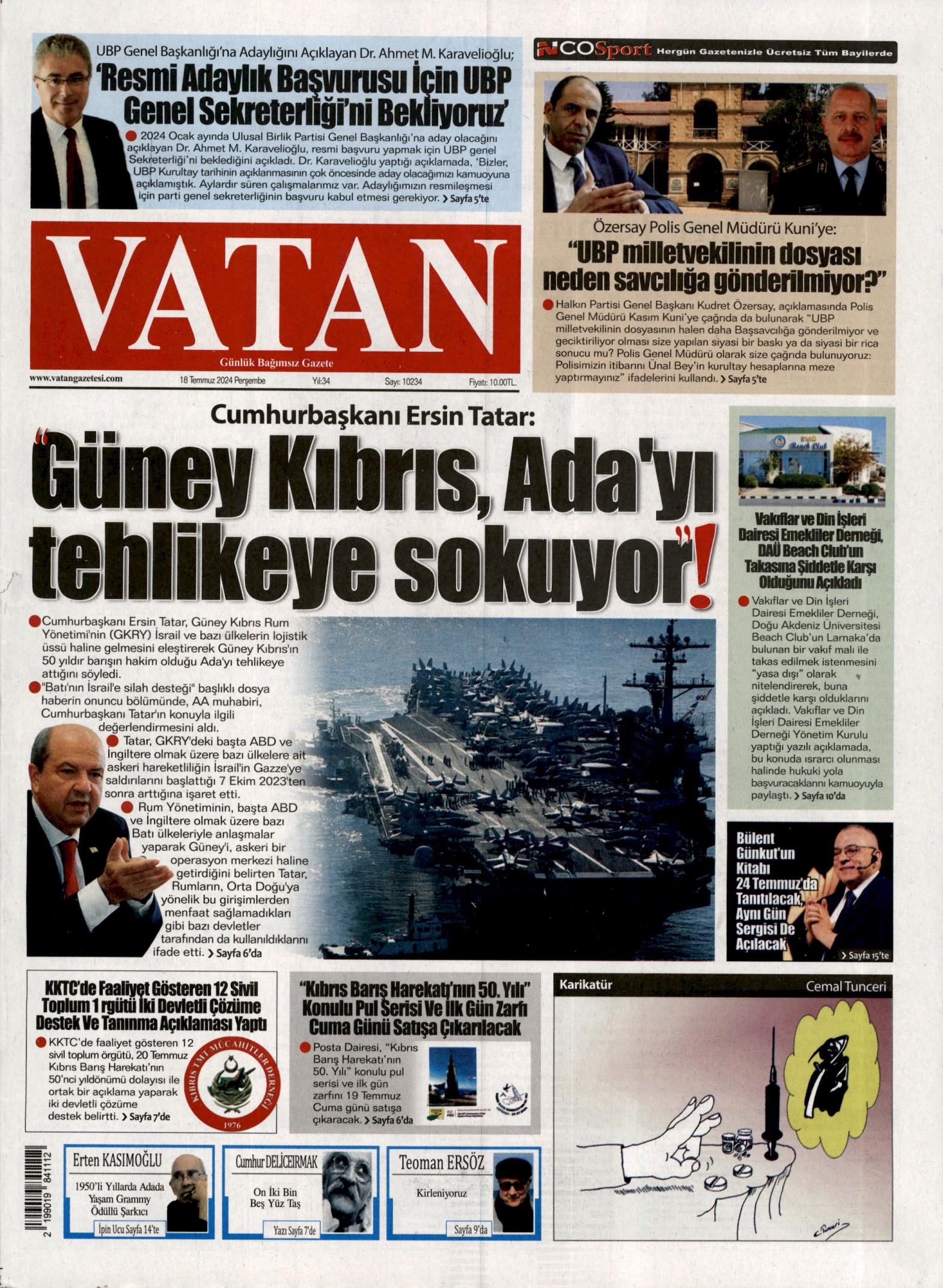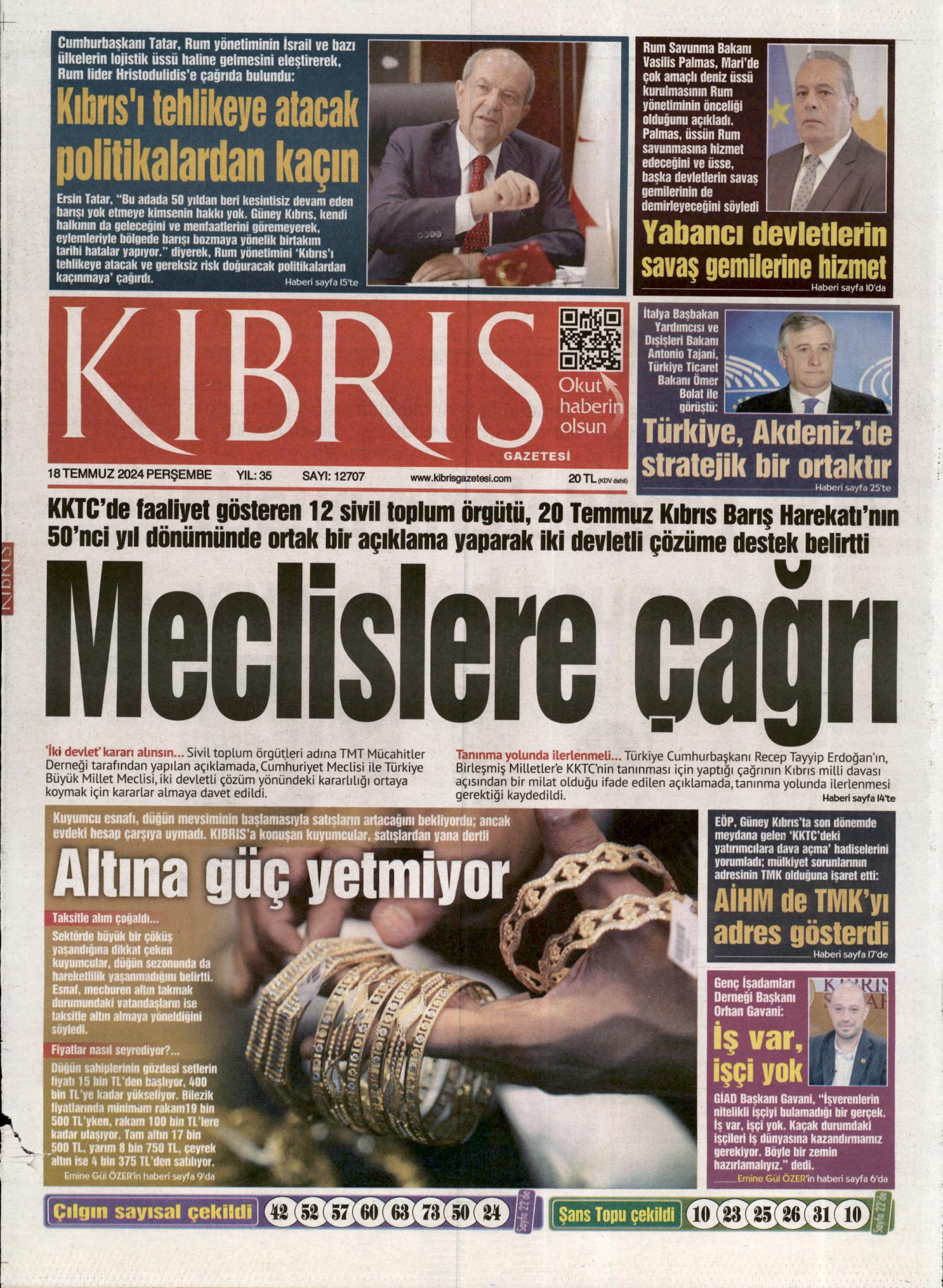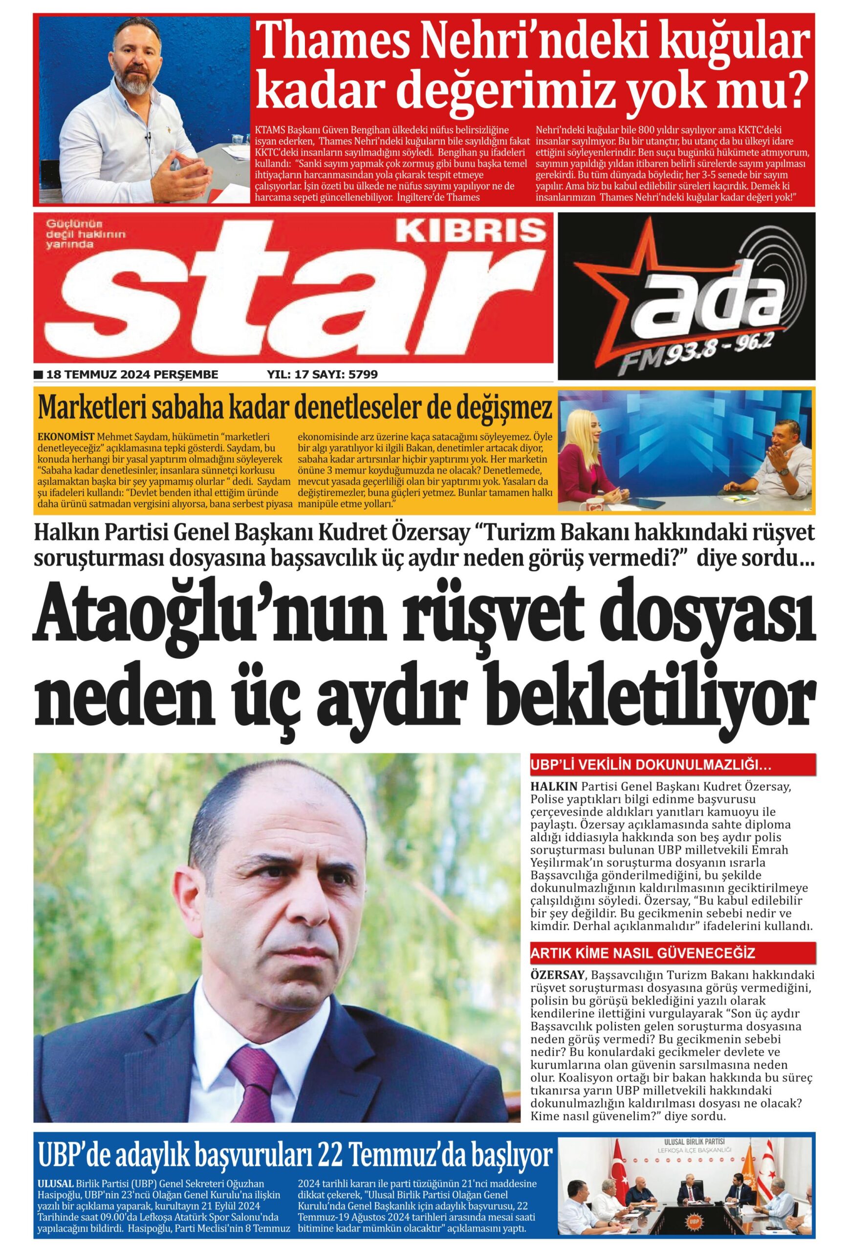 #18 Temmuz 2024 Perşembe gazete manşetleri