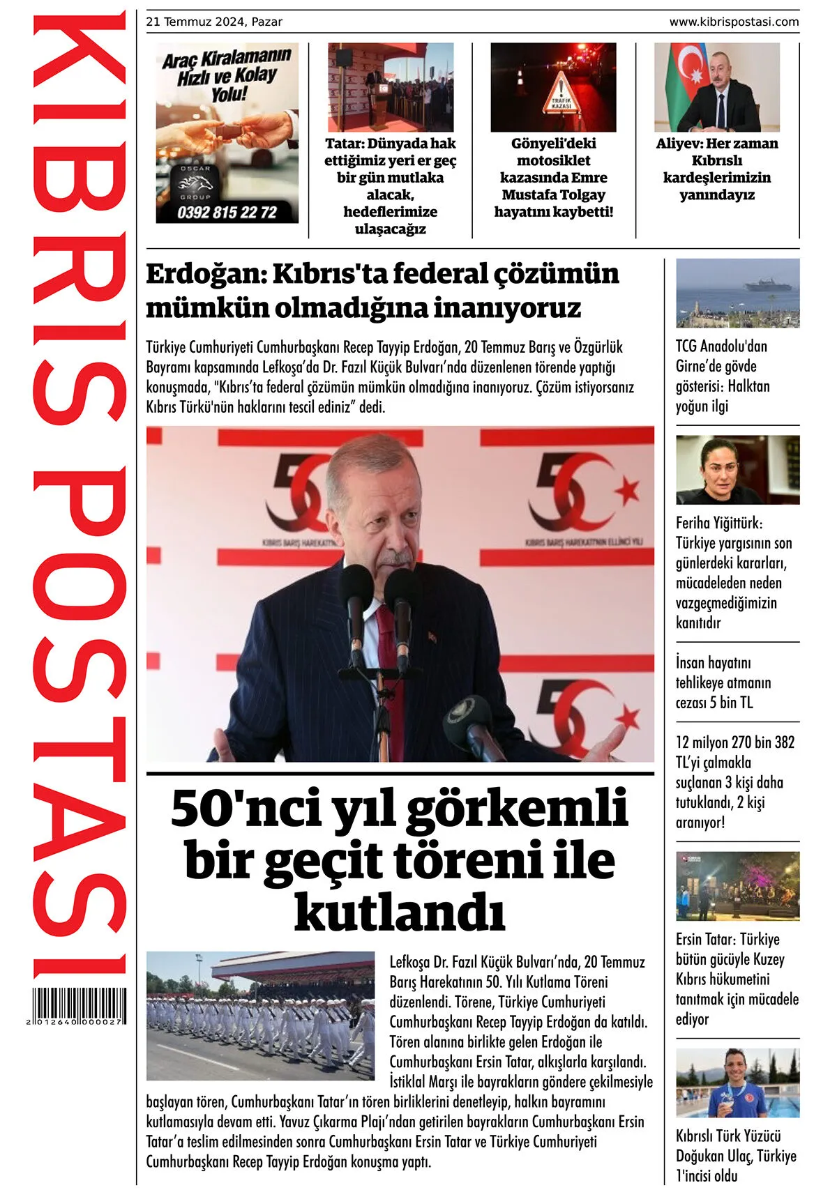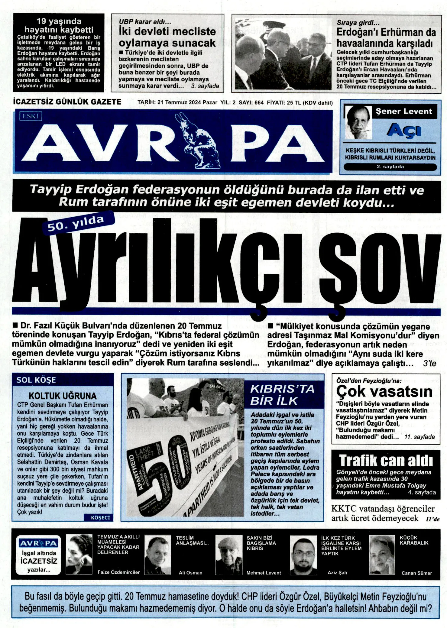 21 Temmuz 2024 Pazar Gazete Manşetleri
