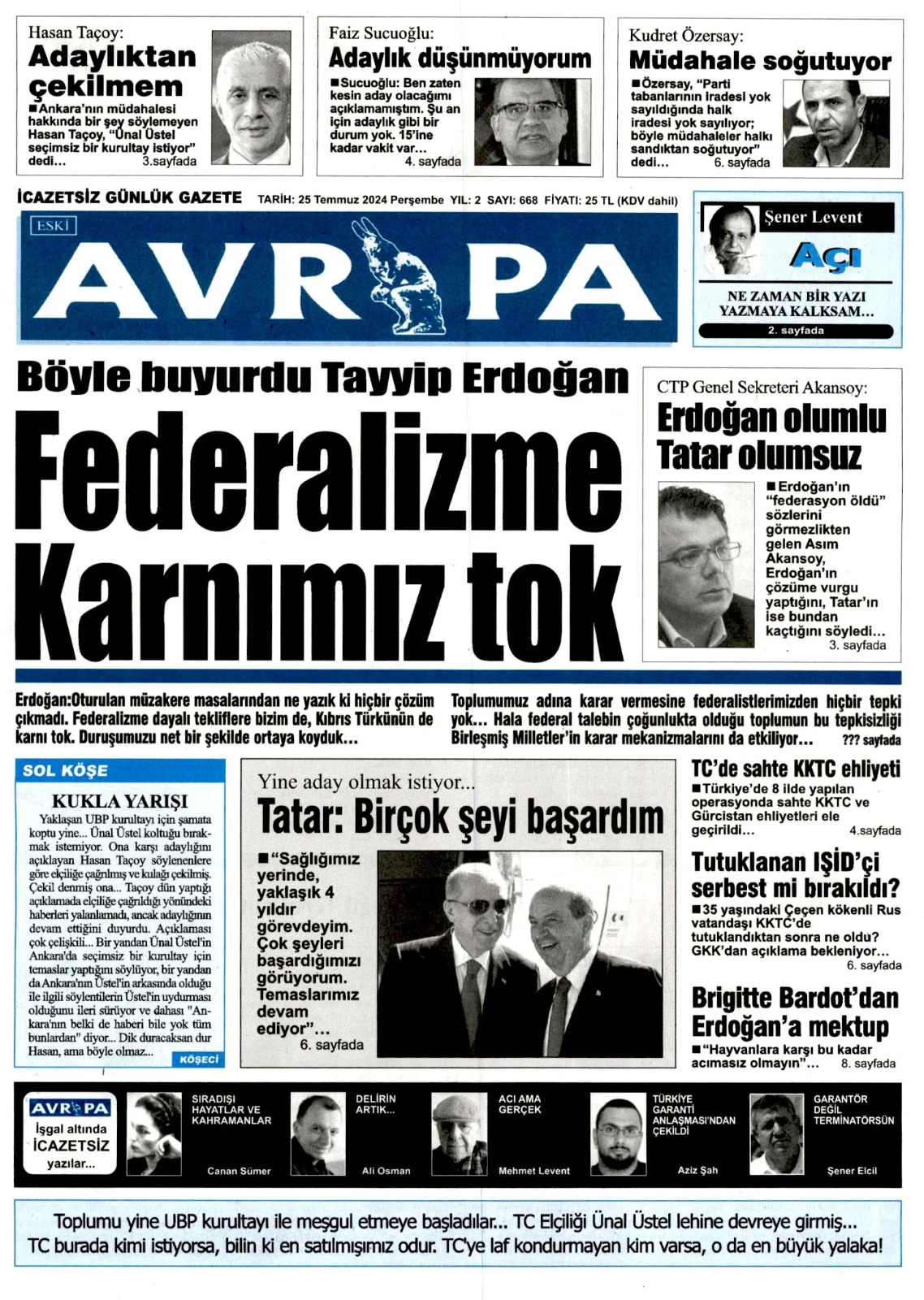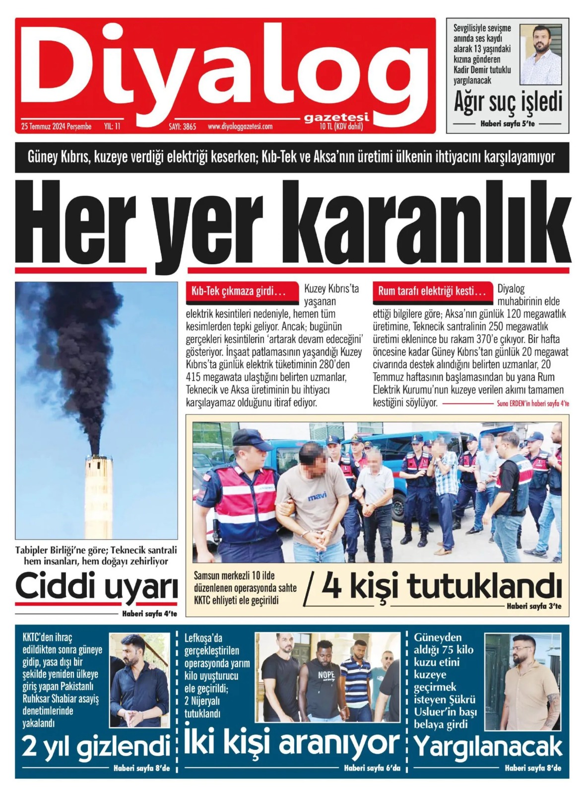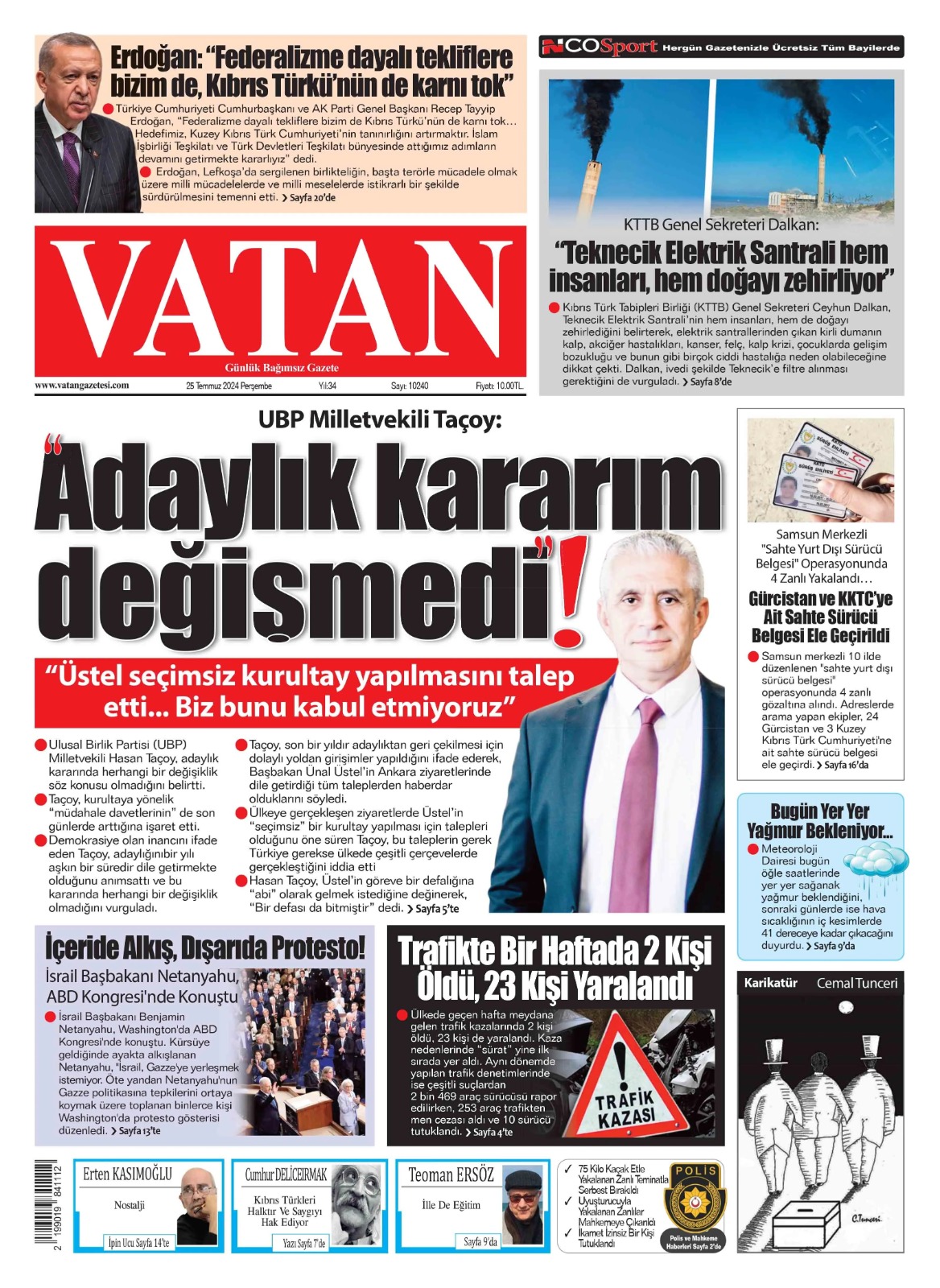 25 Temmuz 2024 Perşembe Gazete Manşetleri
