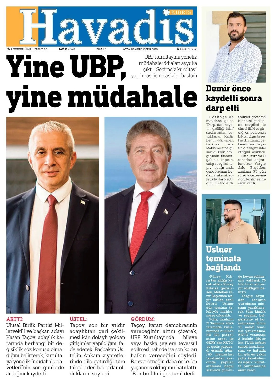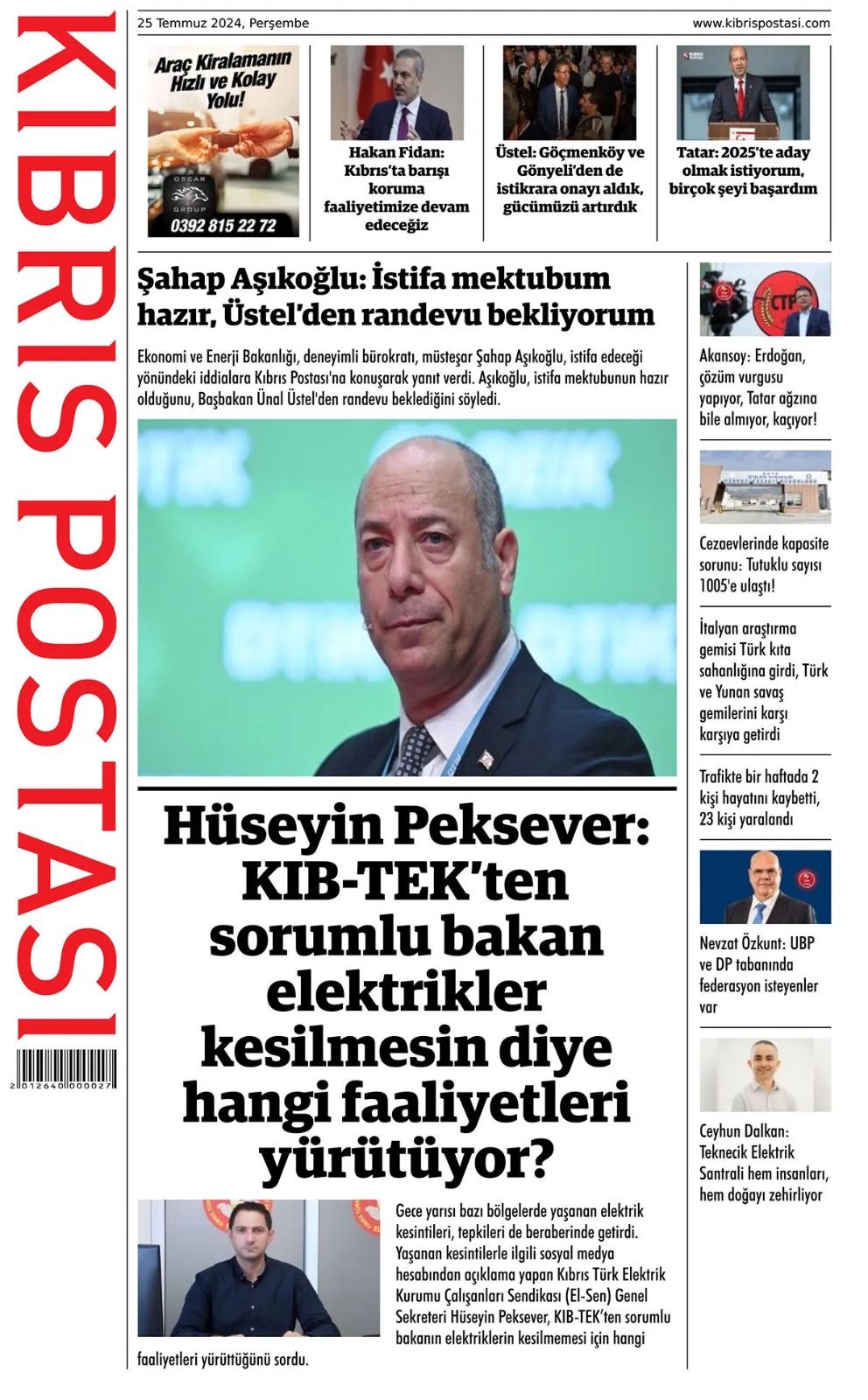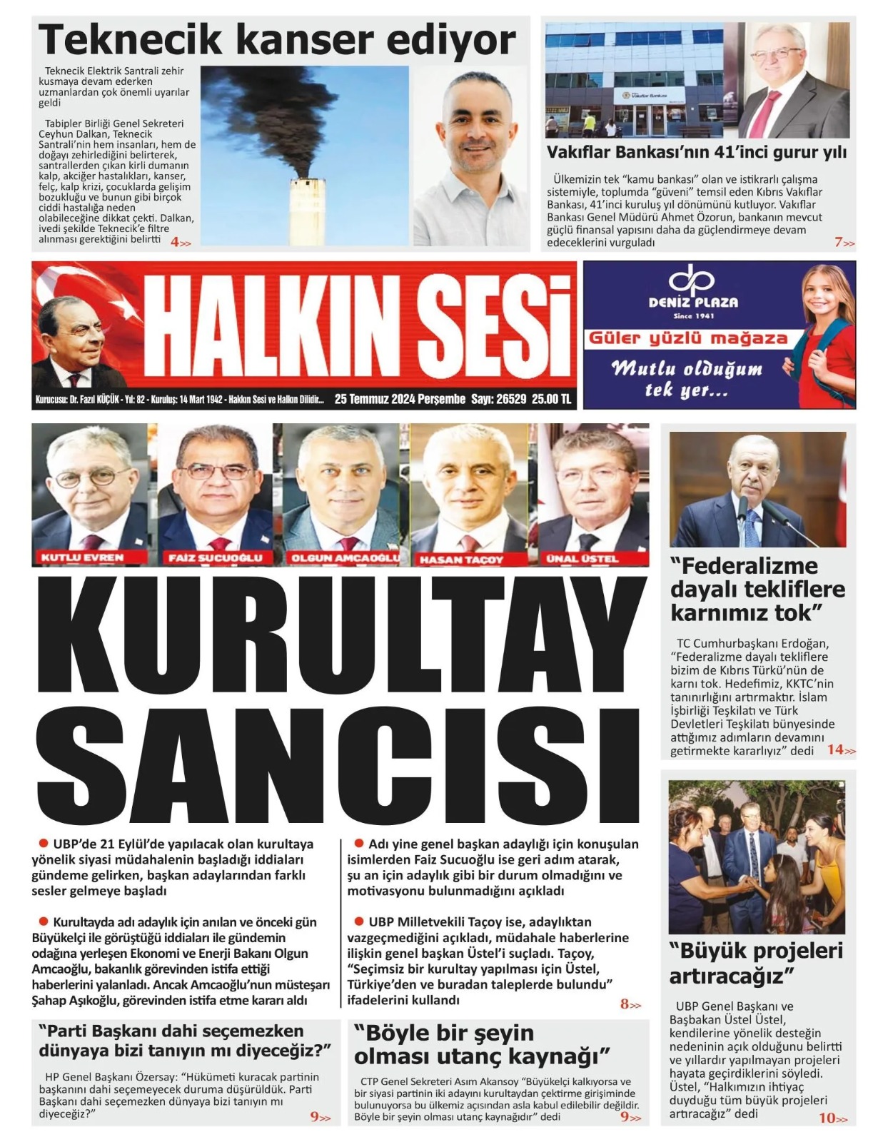 25 Temmuz 2024 Perşembe Gazete Manşetleri