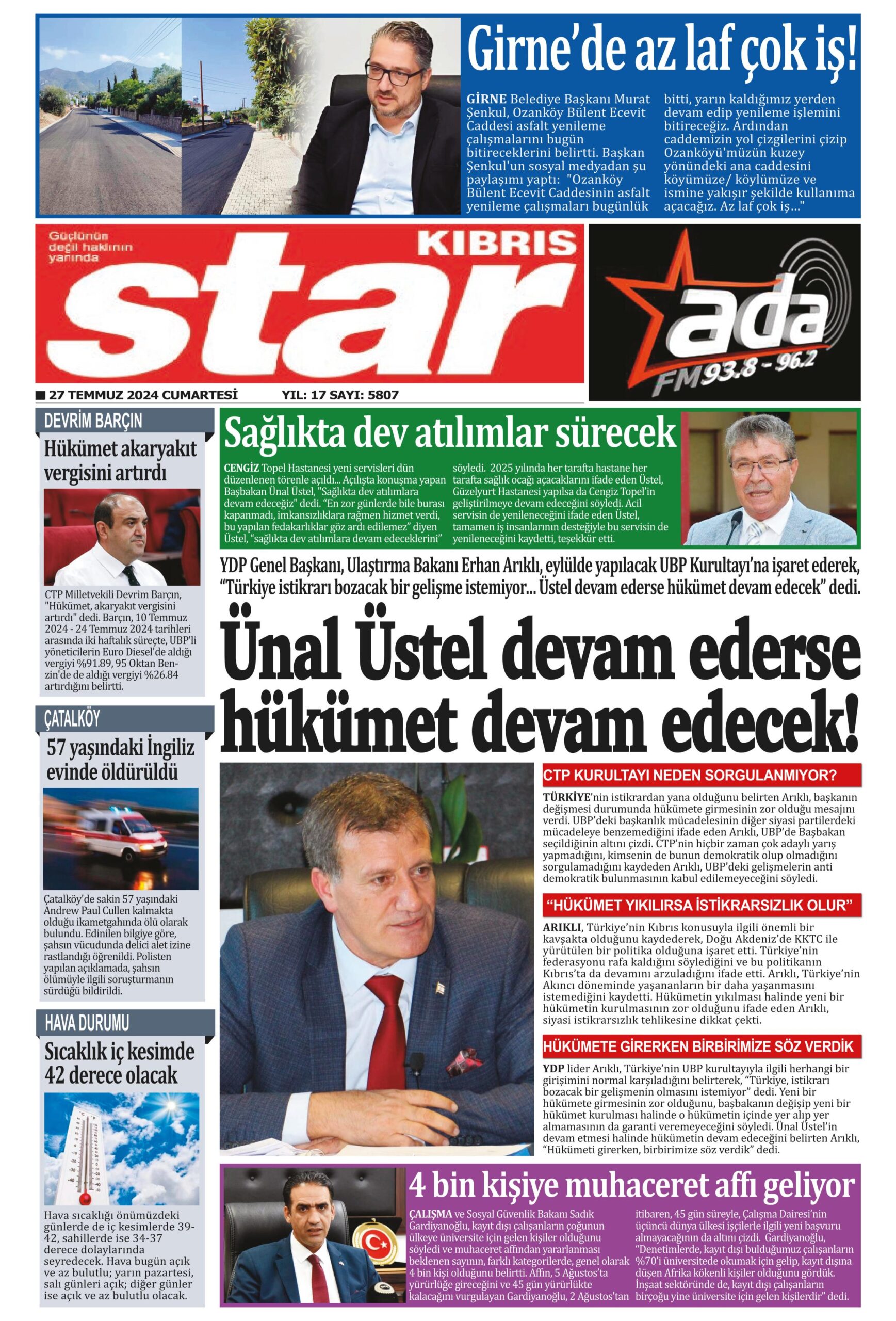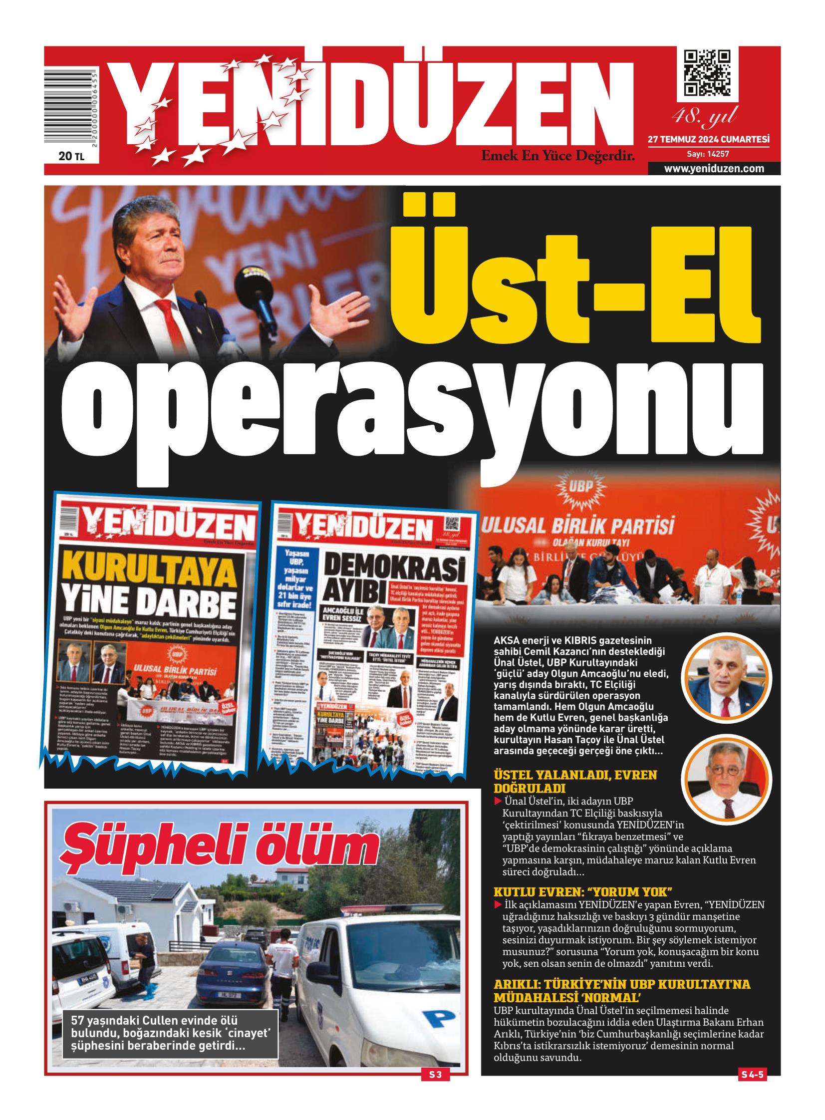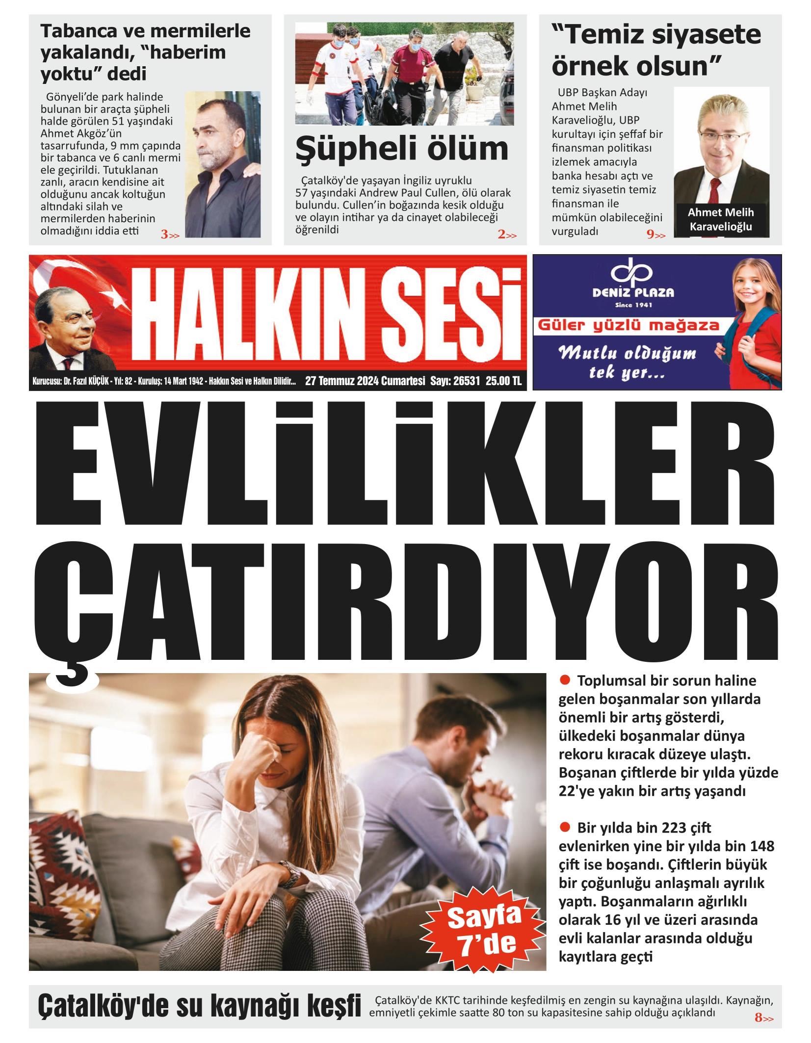 27 Temmuz 2024 Cumartesi gazete manşetleri