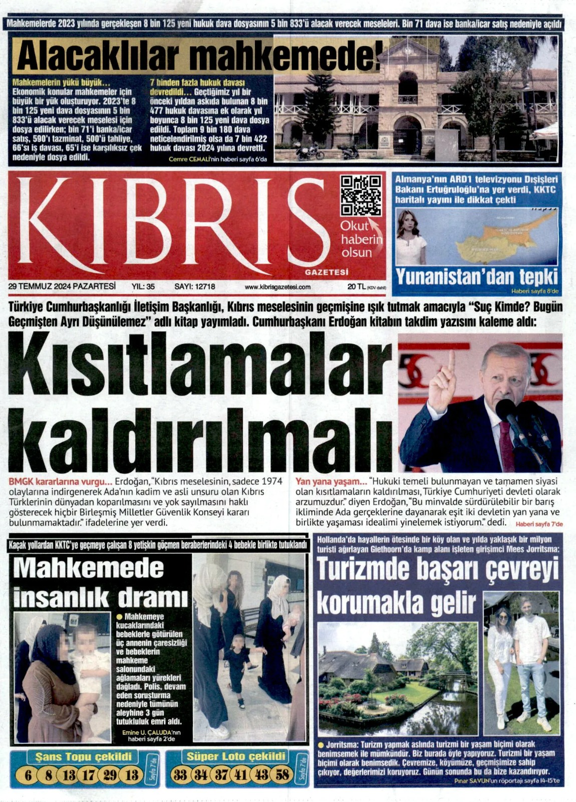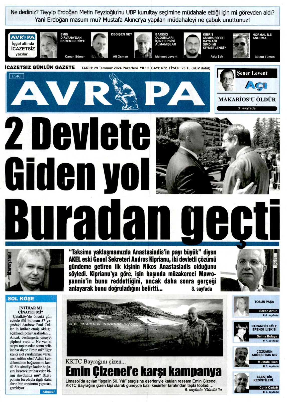 29 Temmuz 2024 Pazartesi Gazete Manşetleri