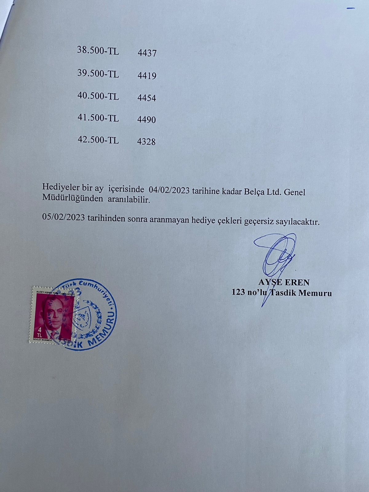 Çekiliş sonrasında kazanan kişilerin hediyelerini bir ay içerisinde (4 Şubat 2023) Belça Ltd. Genel Müdürlüğünden alabilecekleri açıklandı.