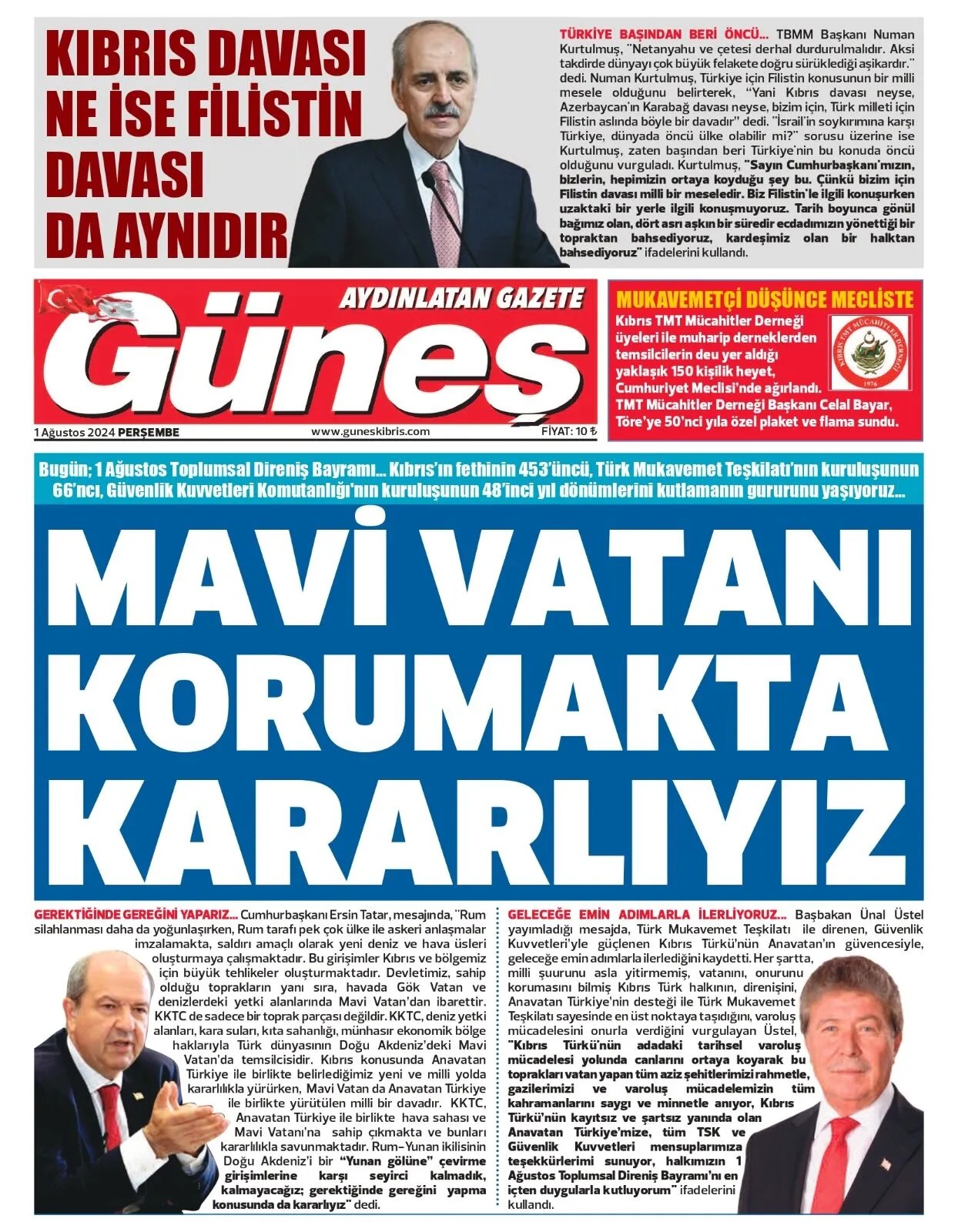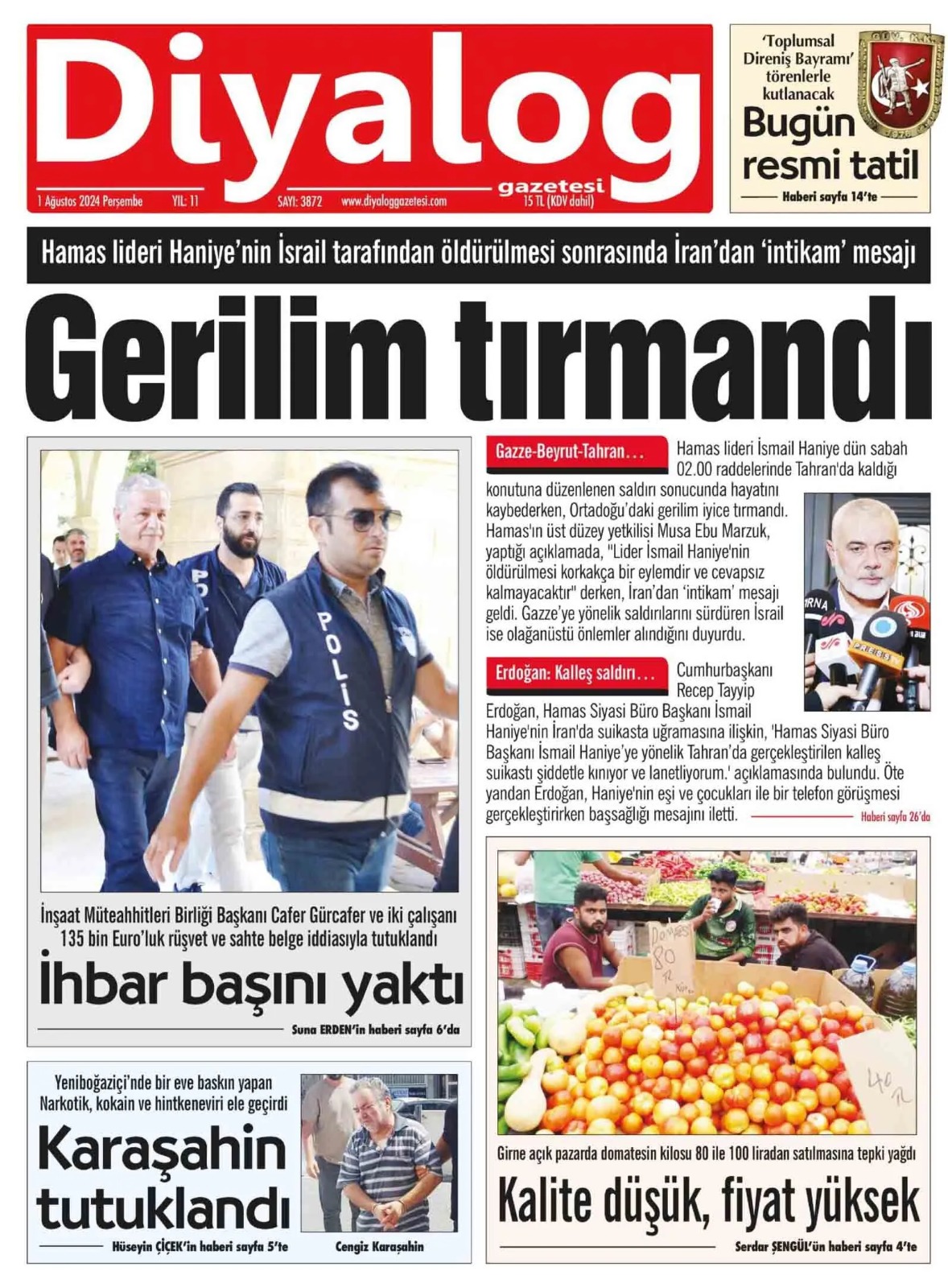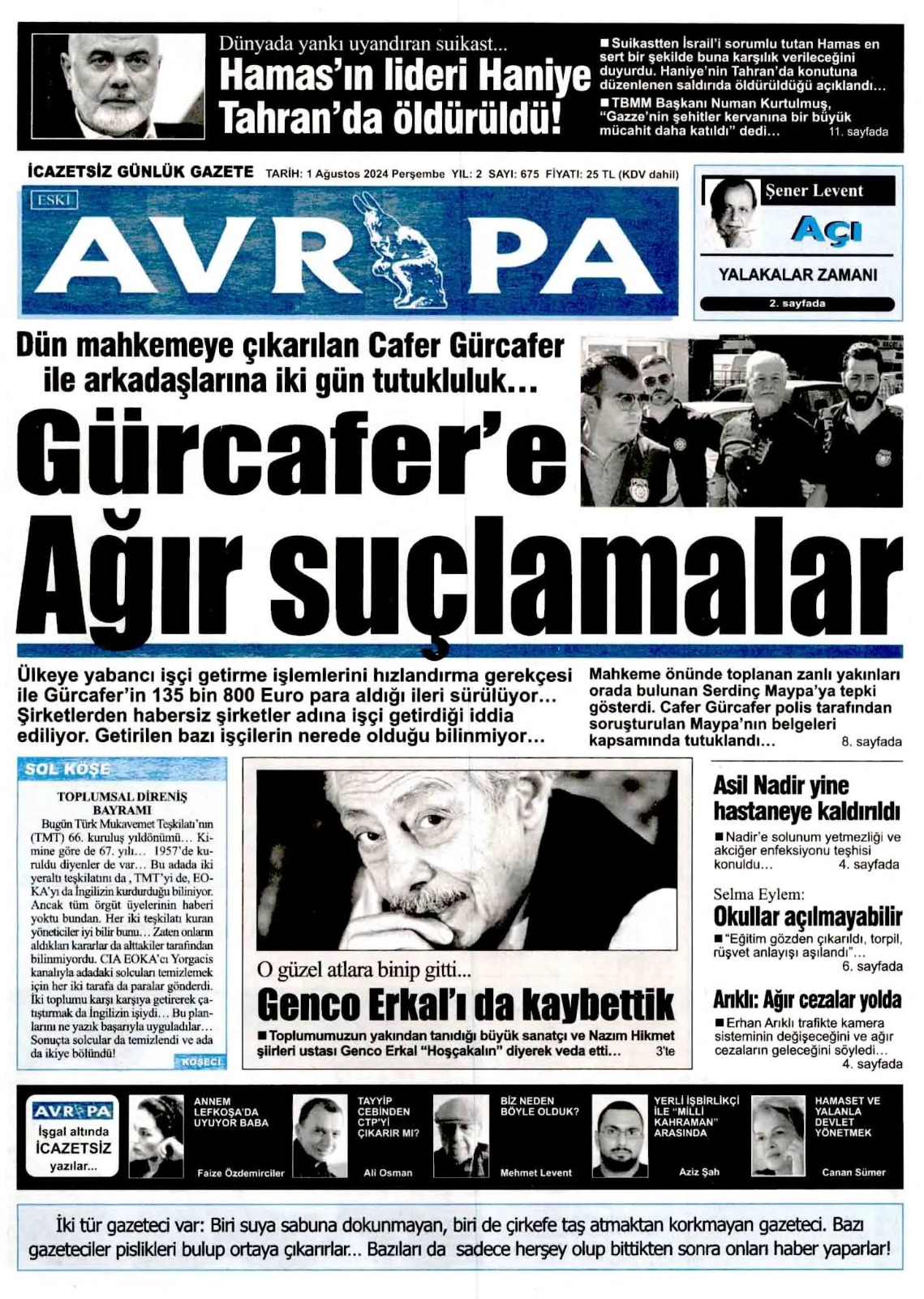 1 Ağustos 2024 Perşembe Gazete Manşetleri