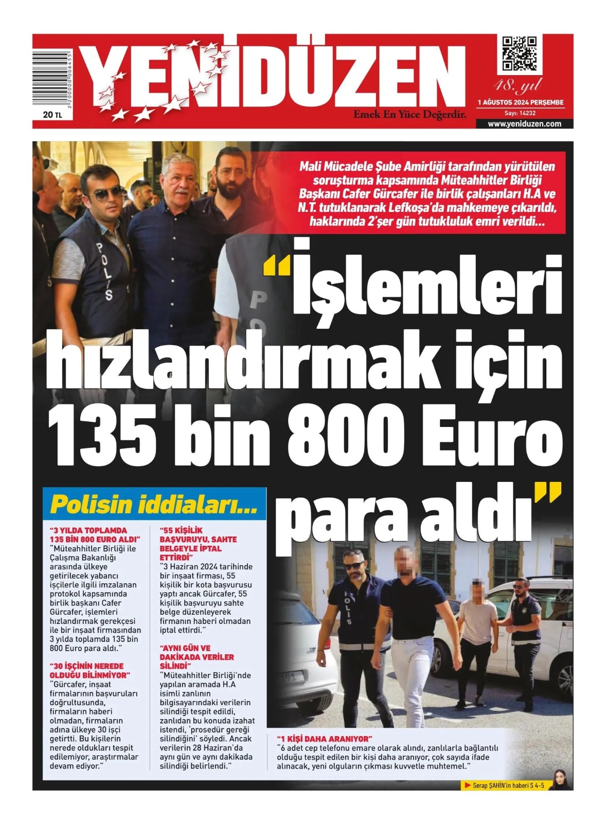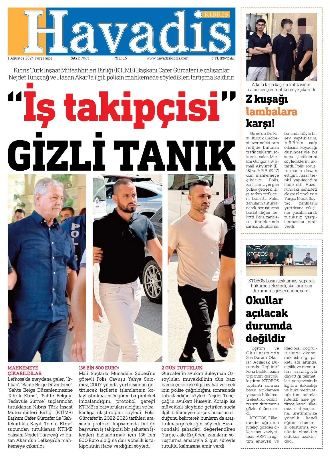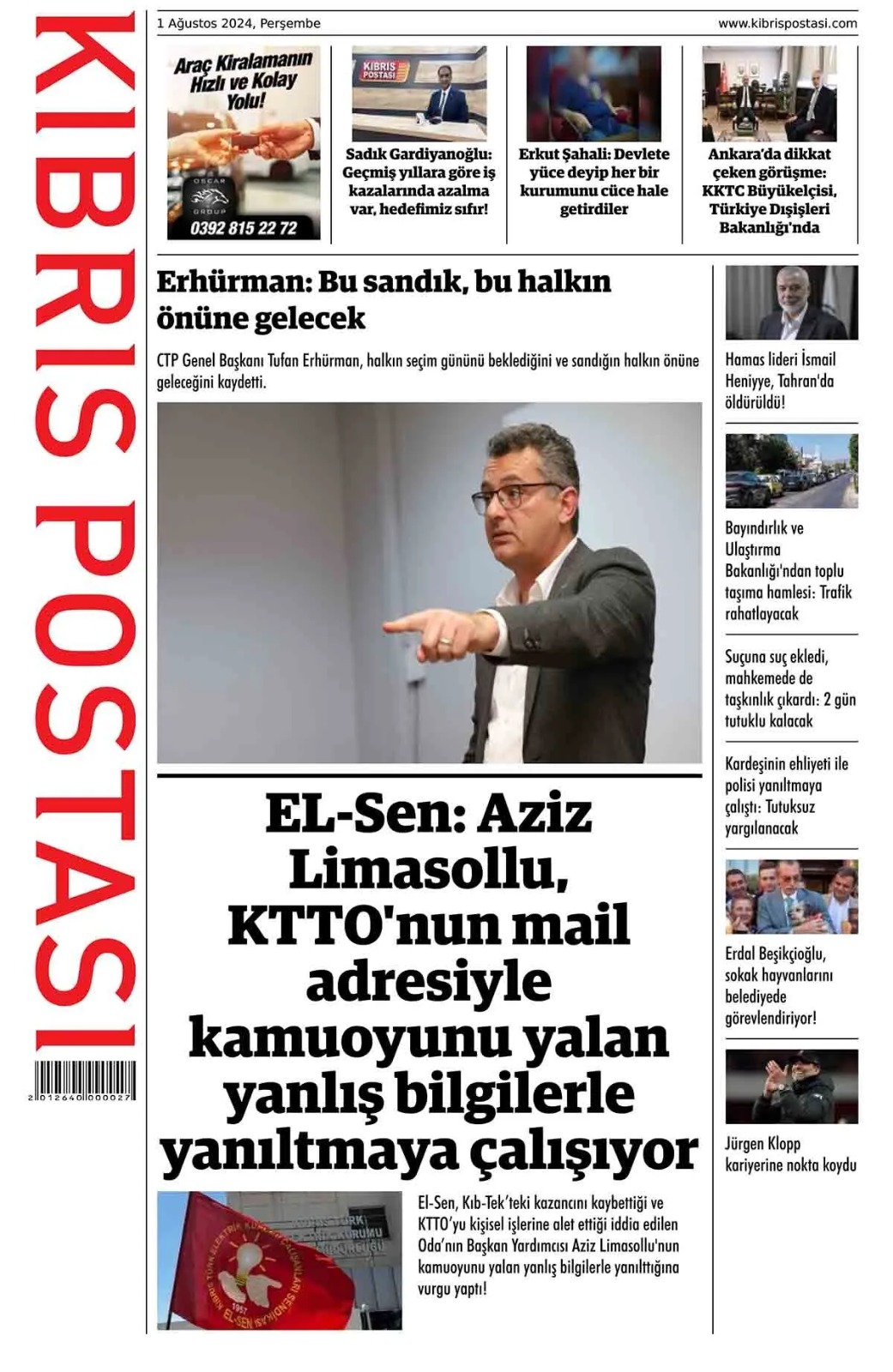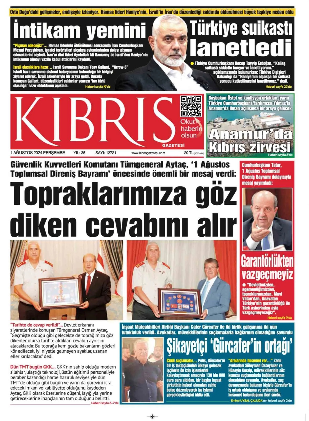 1 Ağustos 2024 Perşembe Gazete Manşetleri