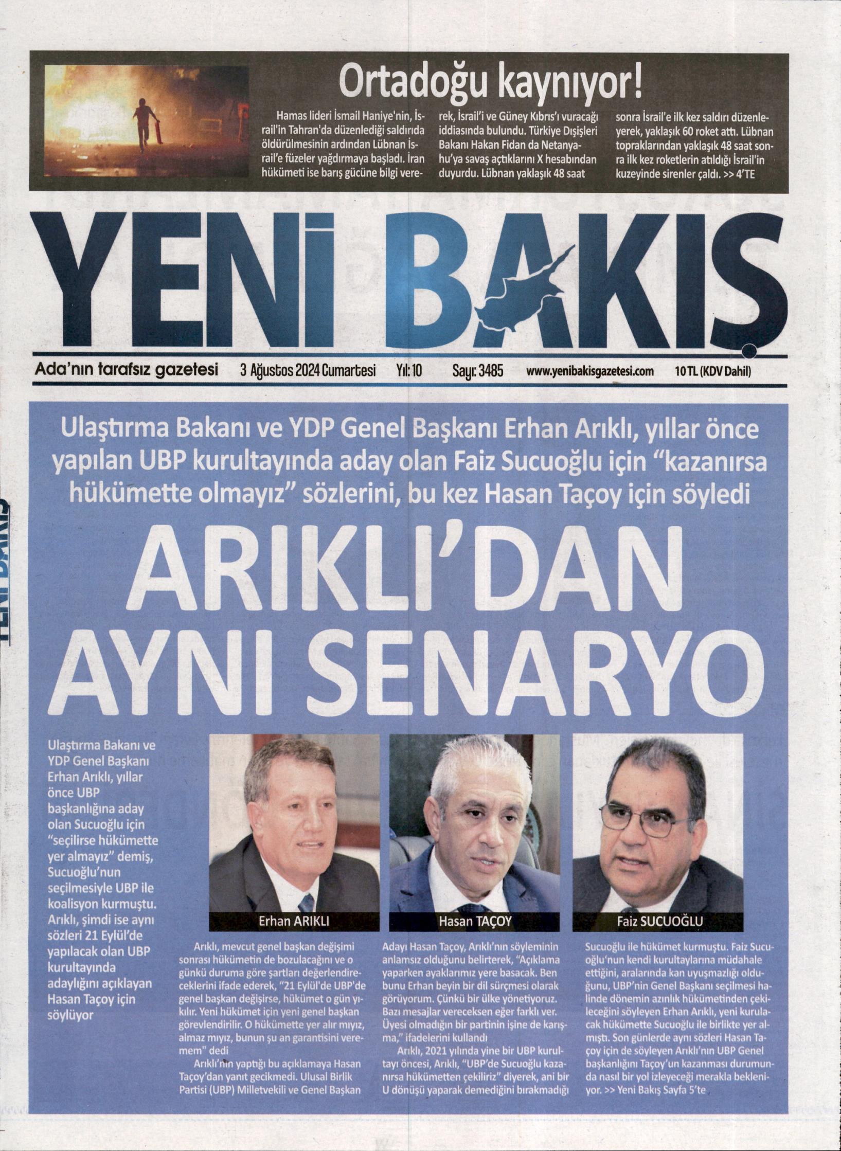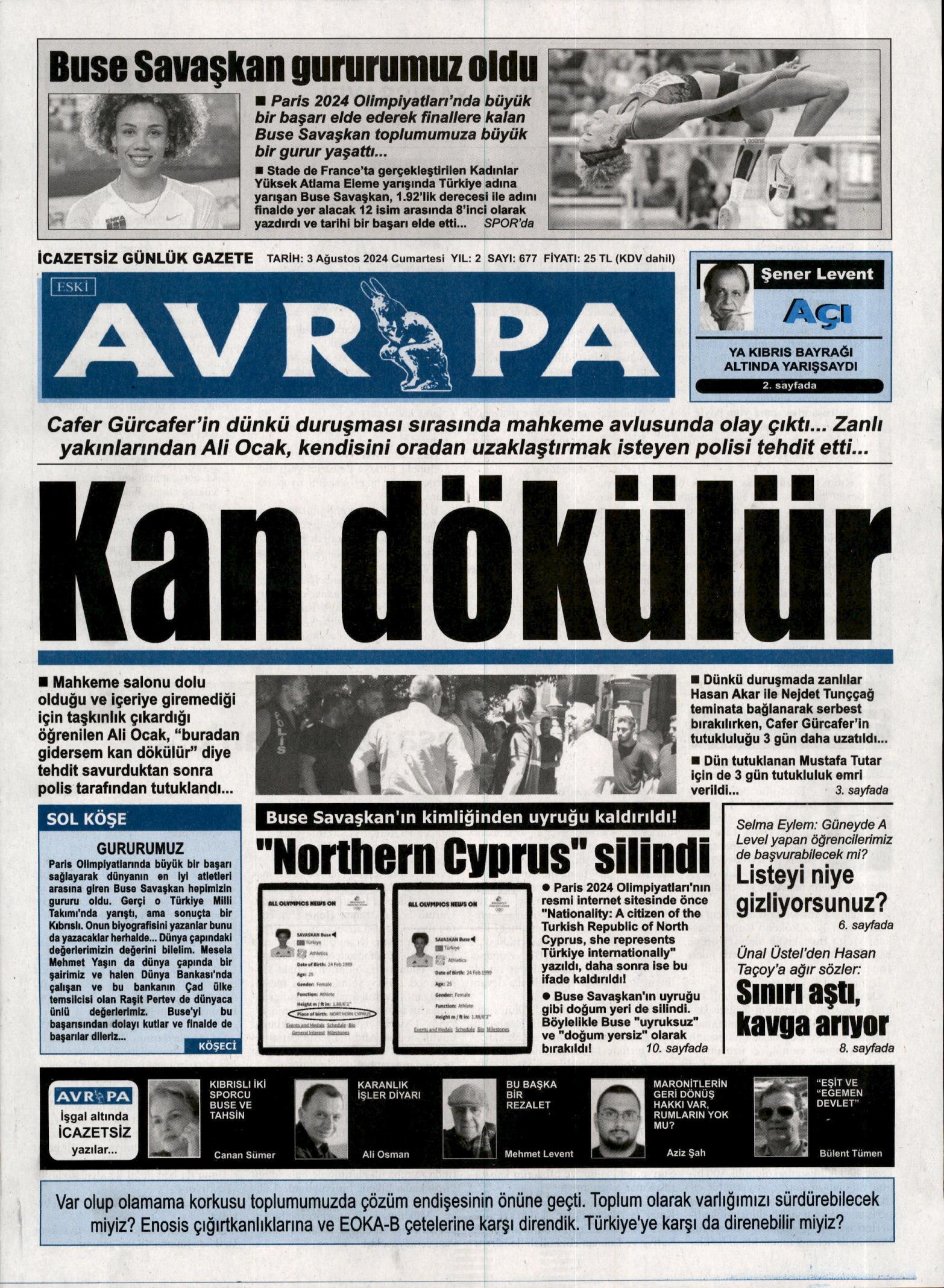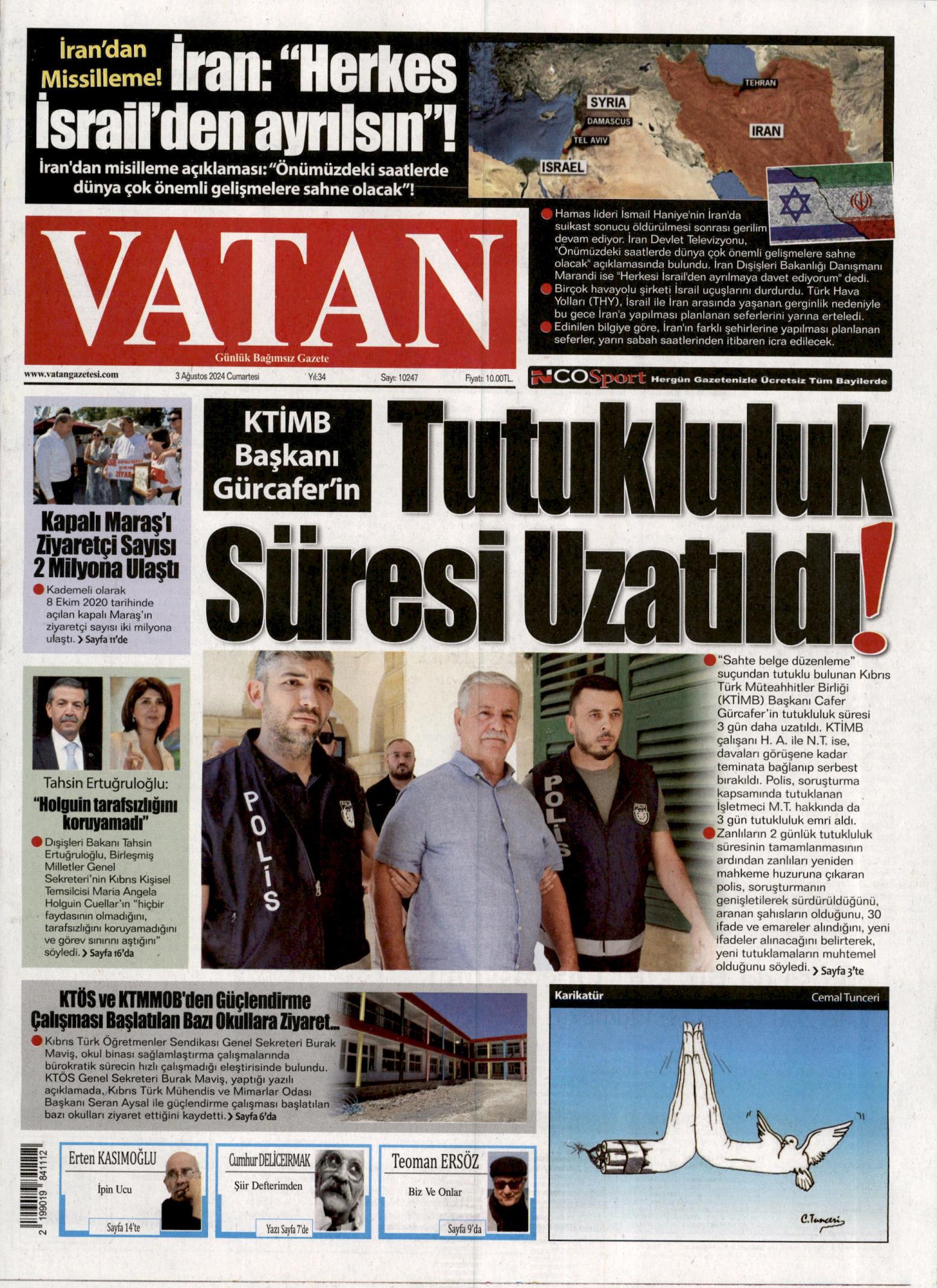 3 Ağustos 2024 Cumartesi Gazete Manşetleri