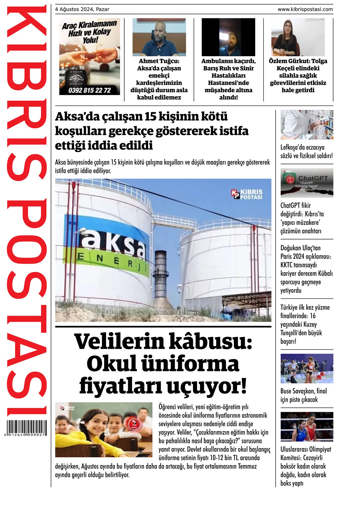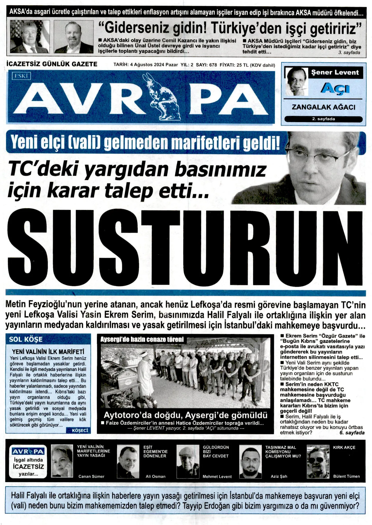 4 Ağustos 2024 Pazartesi Gazete Manşetleri
