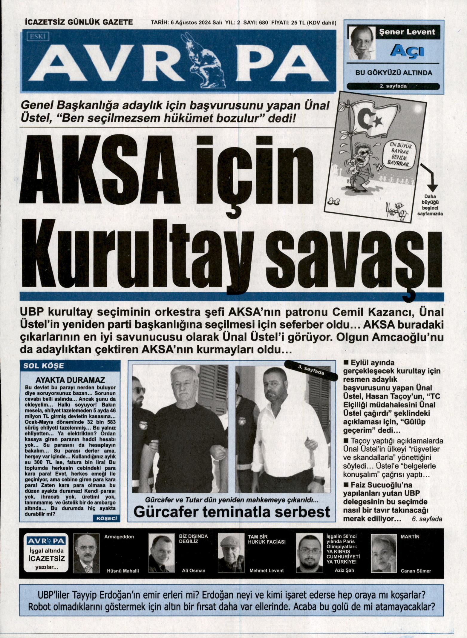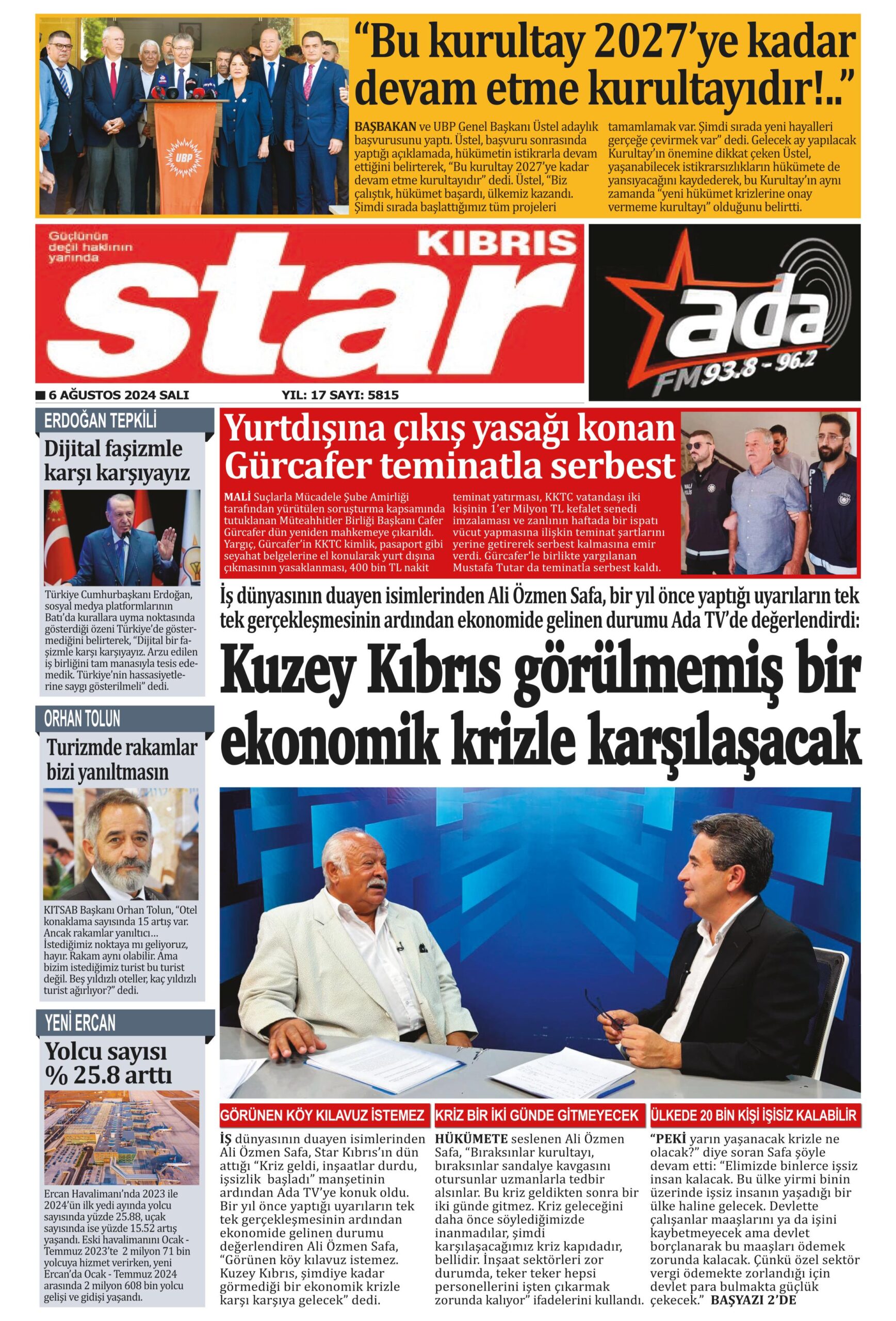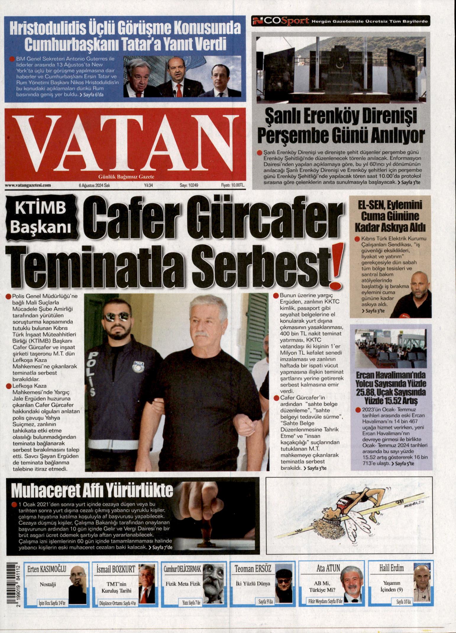 6 Ağustos 2024 Salı Gazete Manşetleri