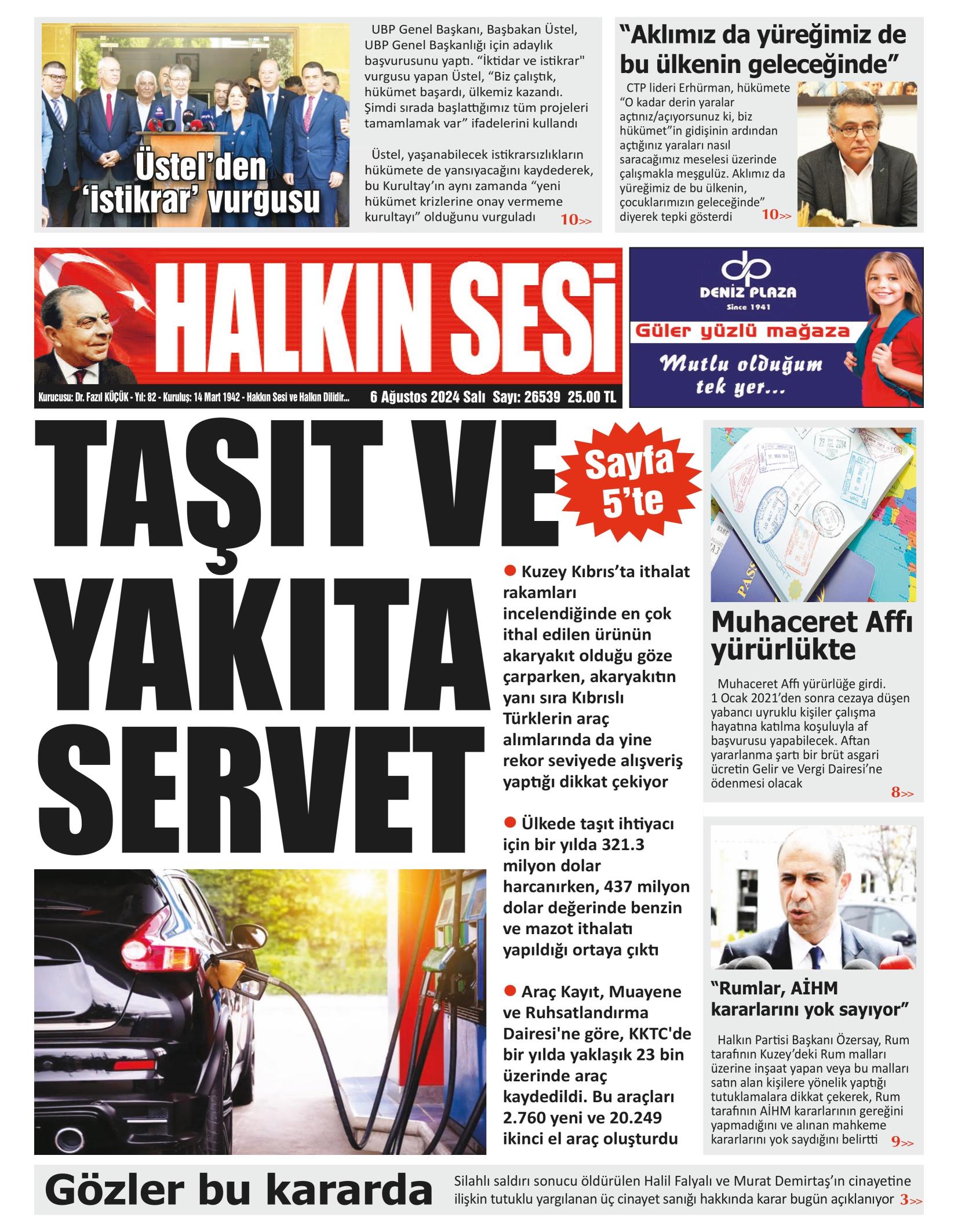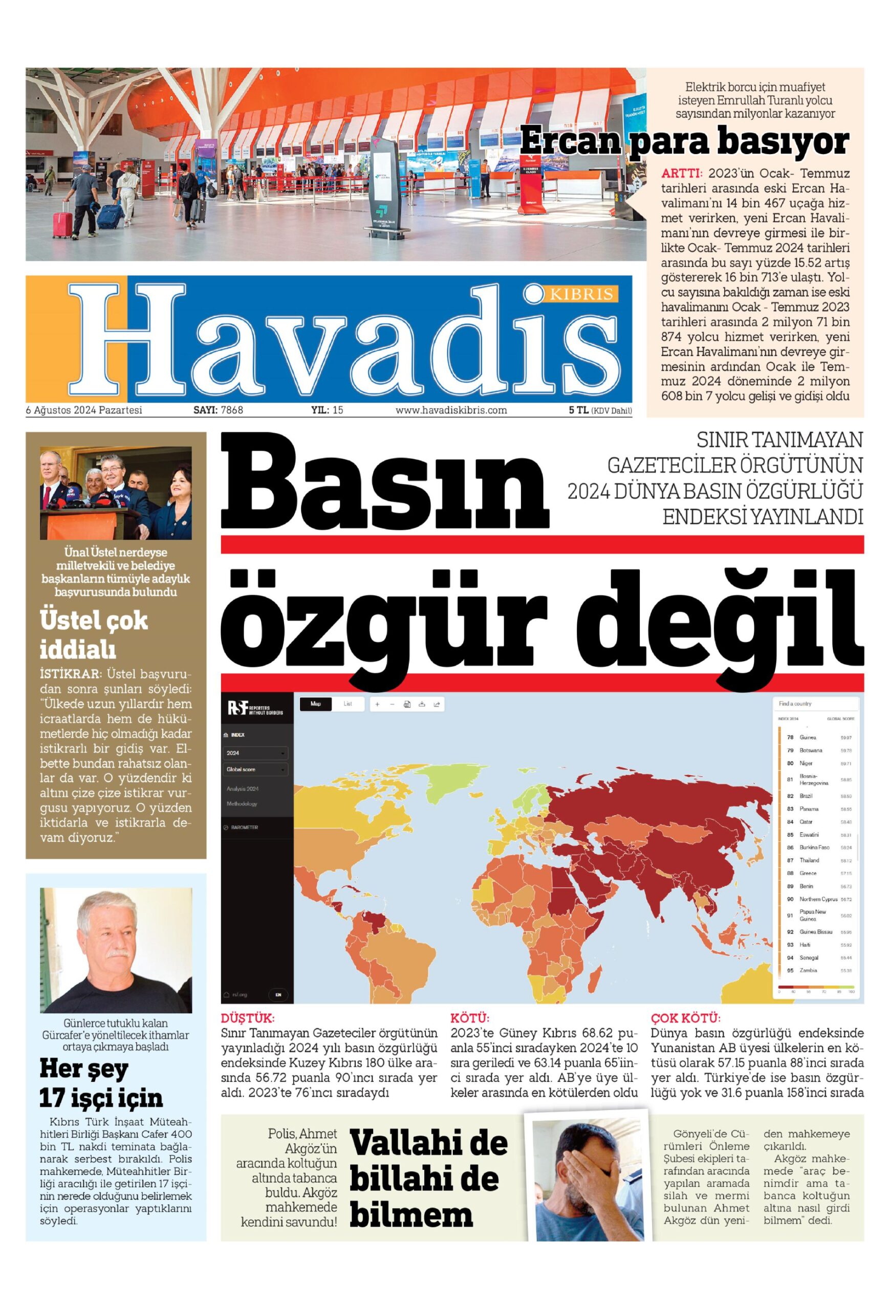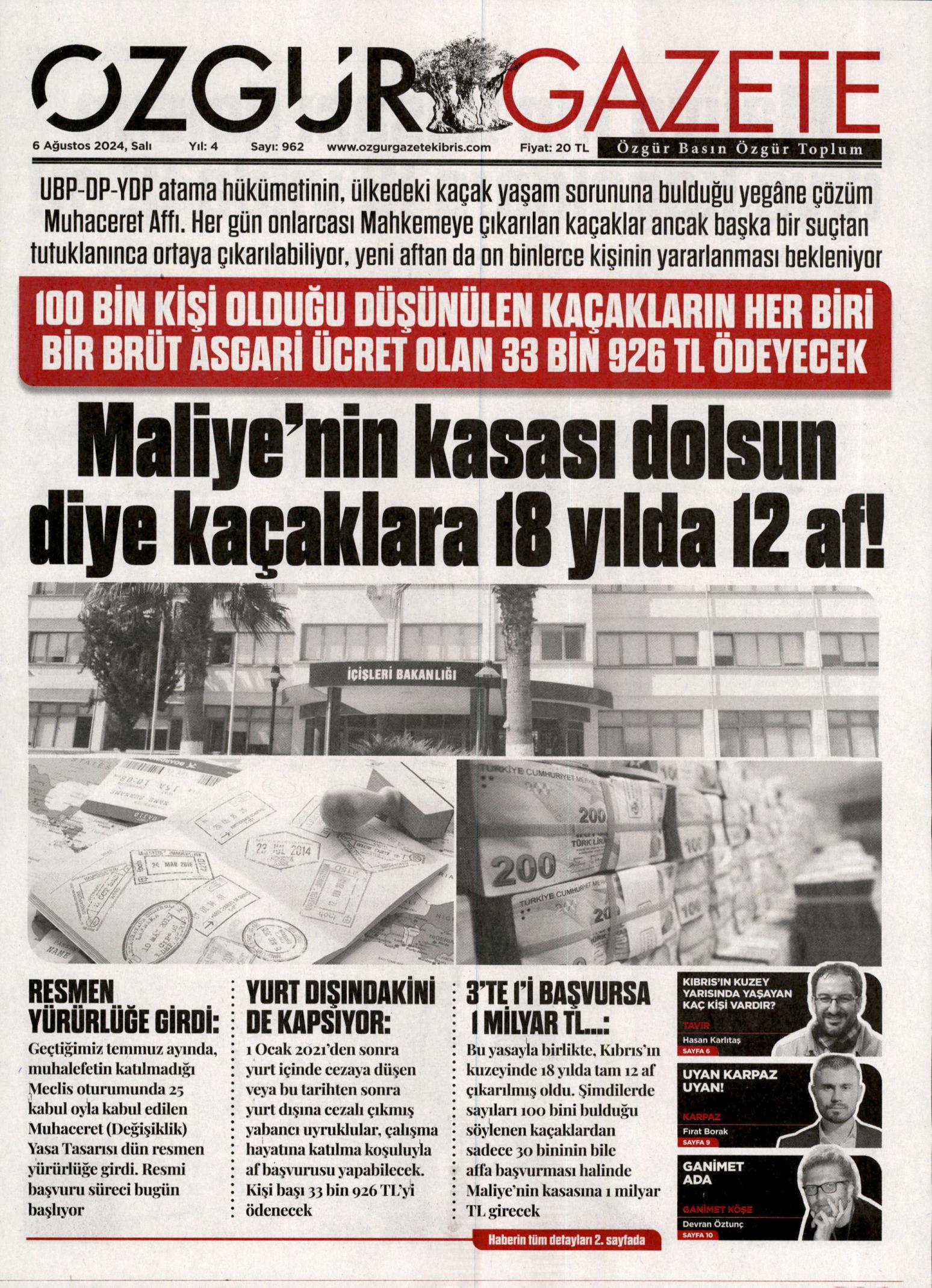 6 Ağustos 2024 Salı Gazete Manşetleri