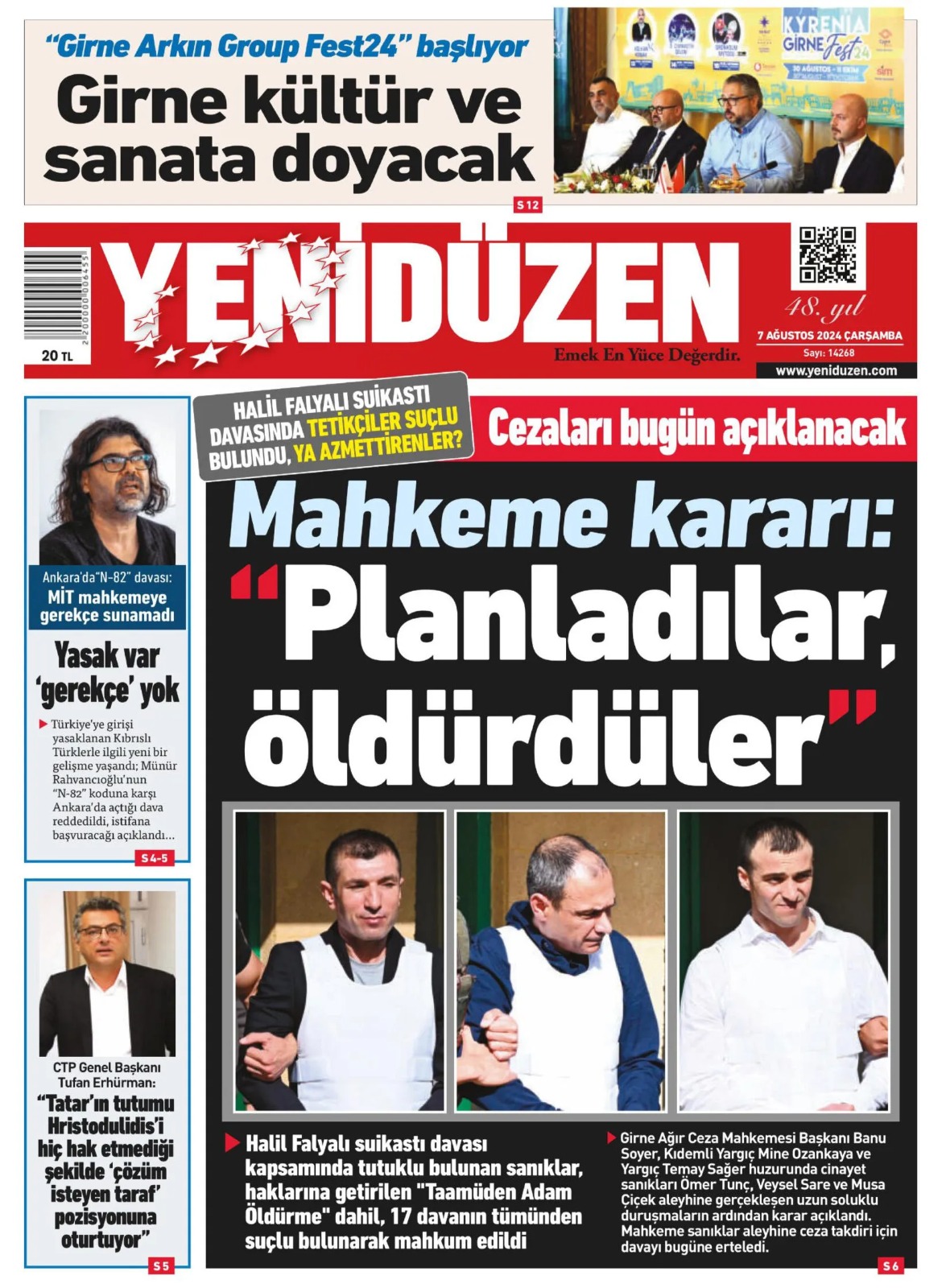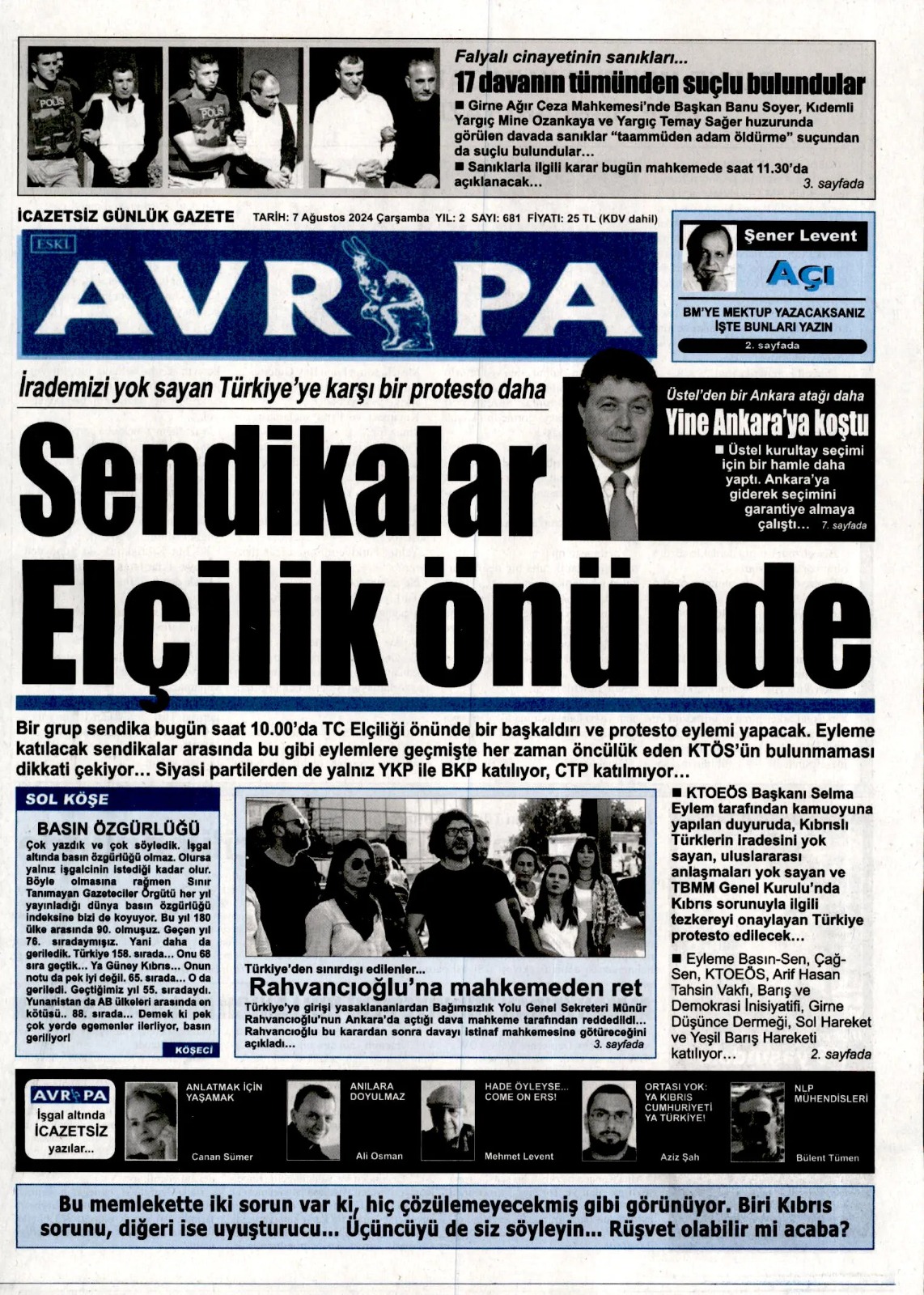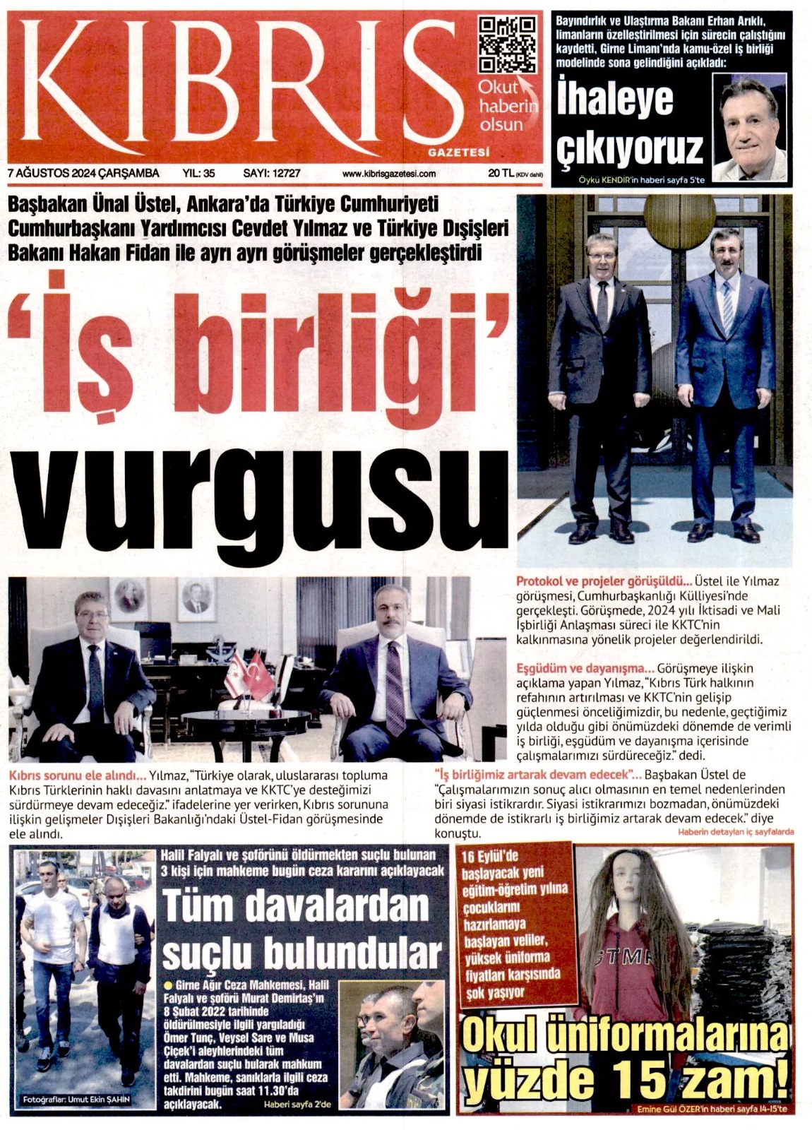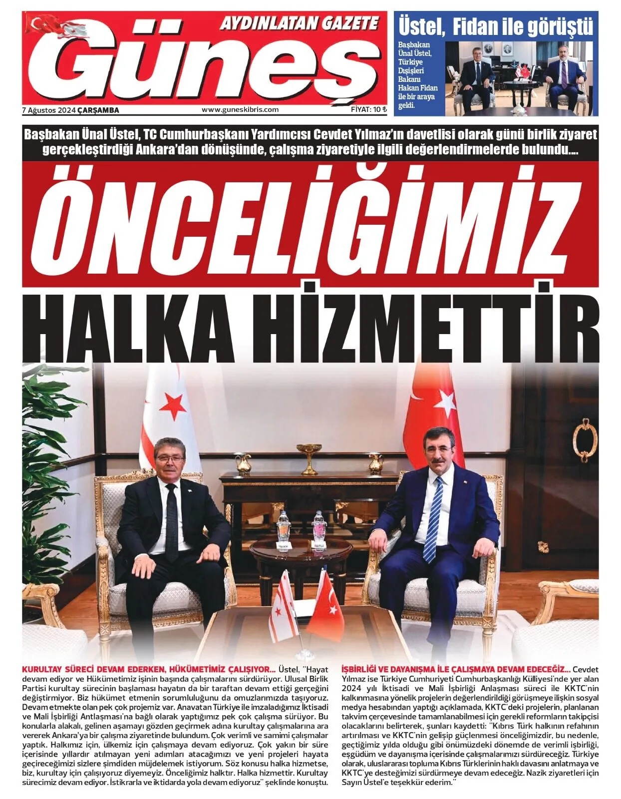 7 Ağustos 2024 Çarşamba Gazete Manşetleri