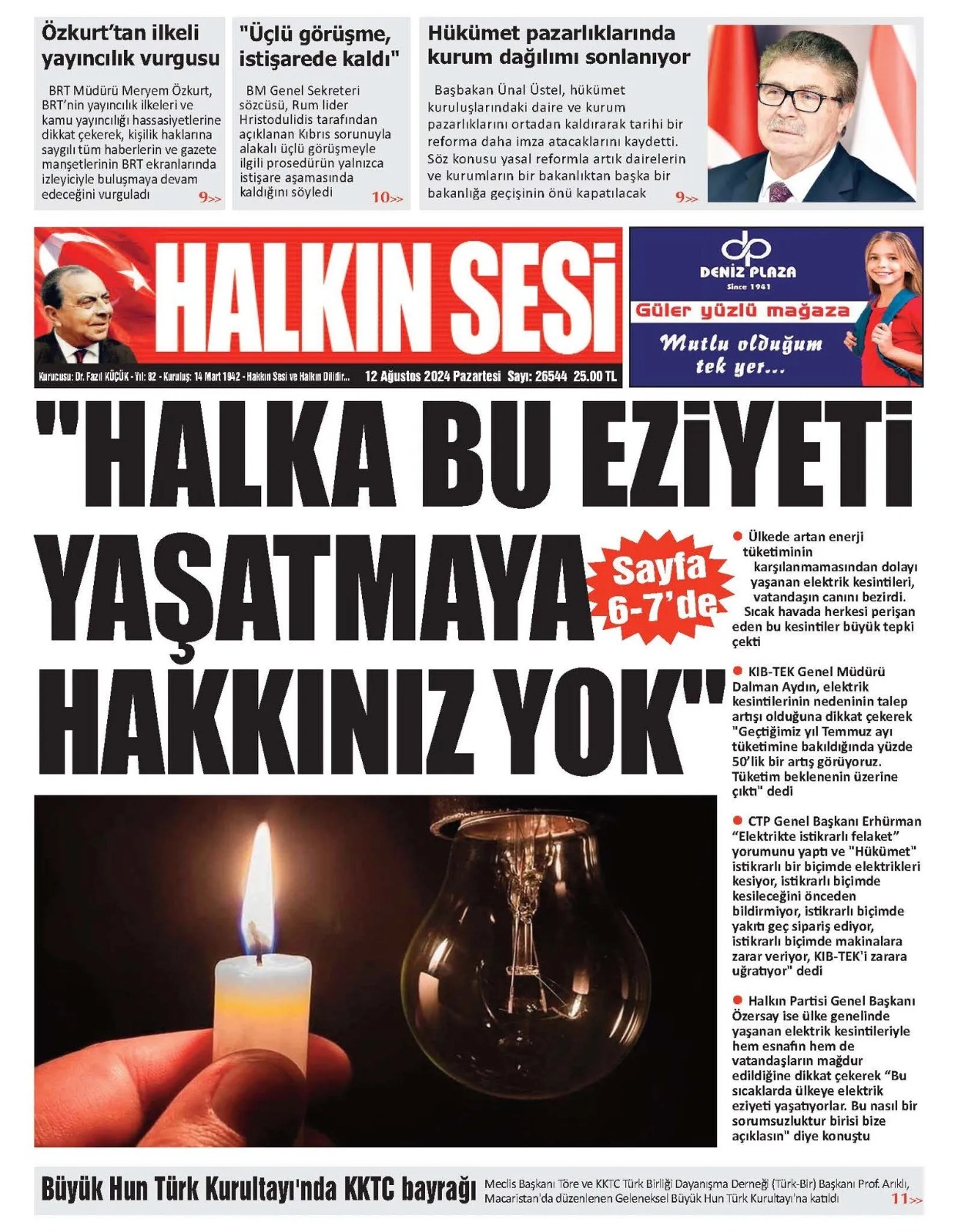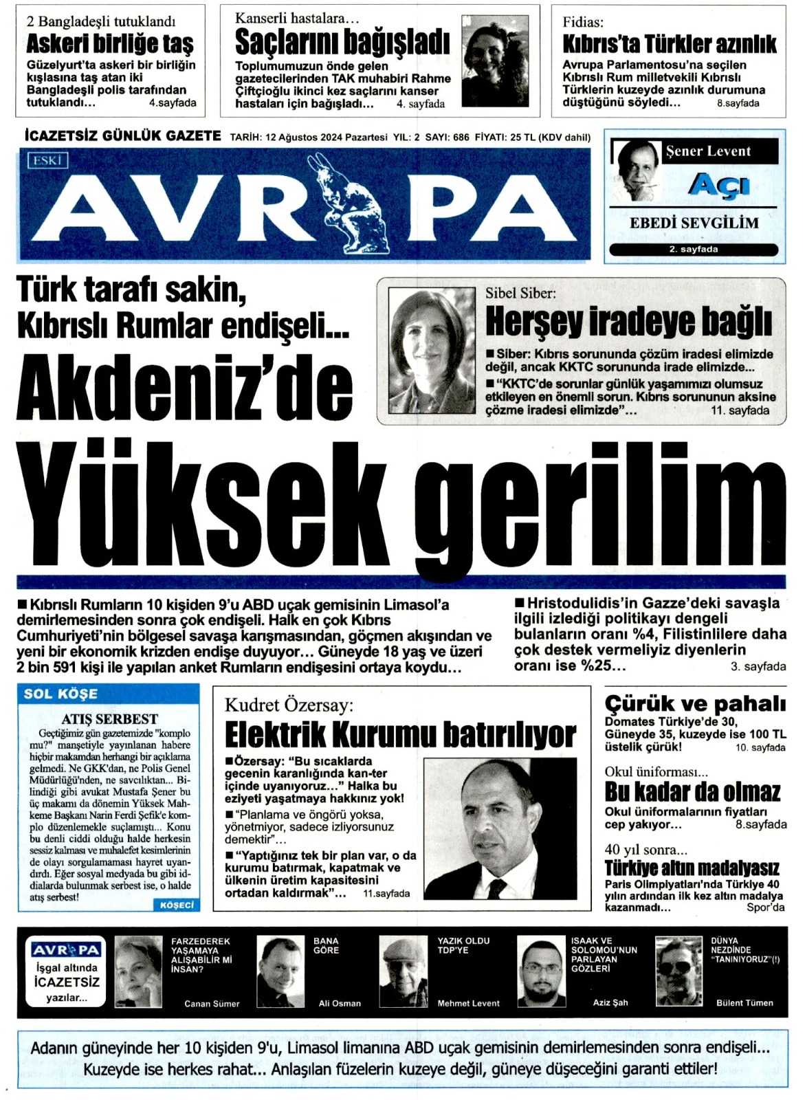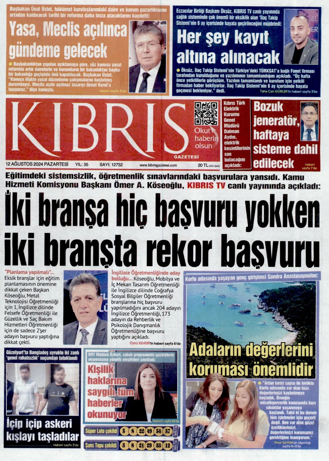 12 Ağustos 2024 Pazartesi Gazete Manşetleri
