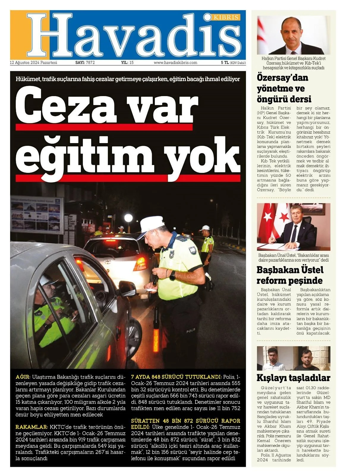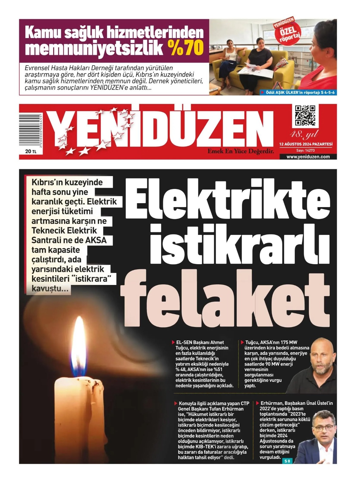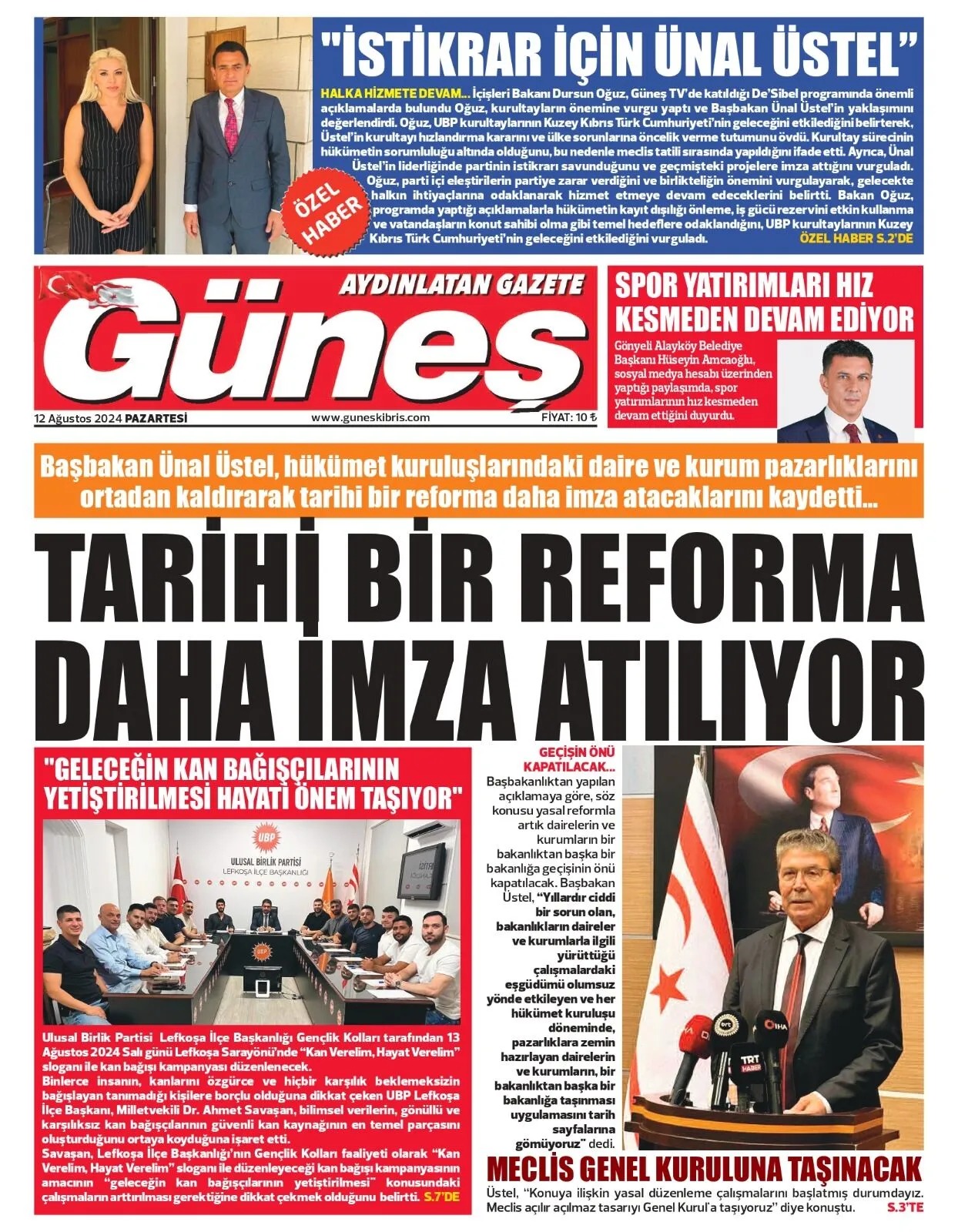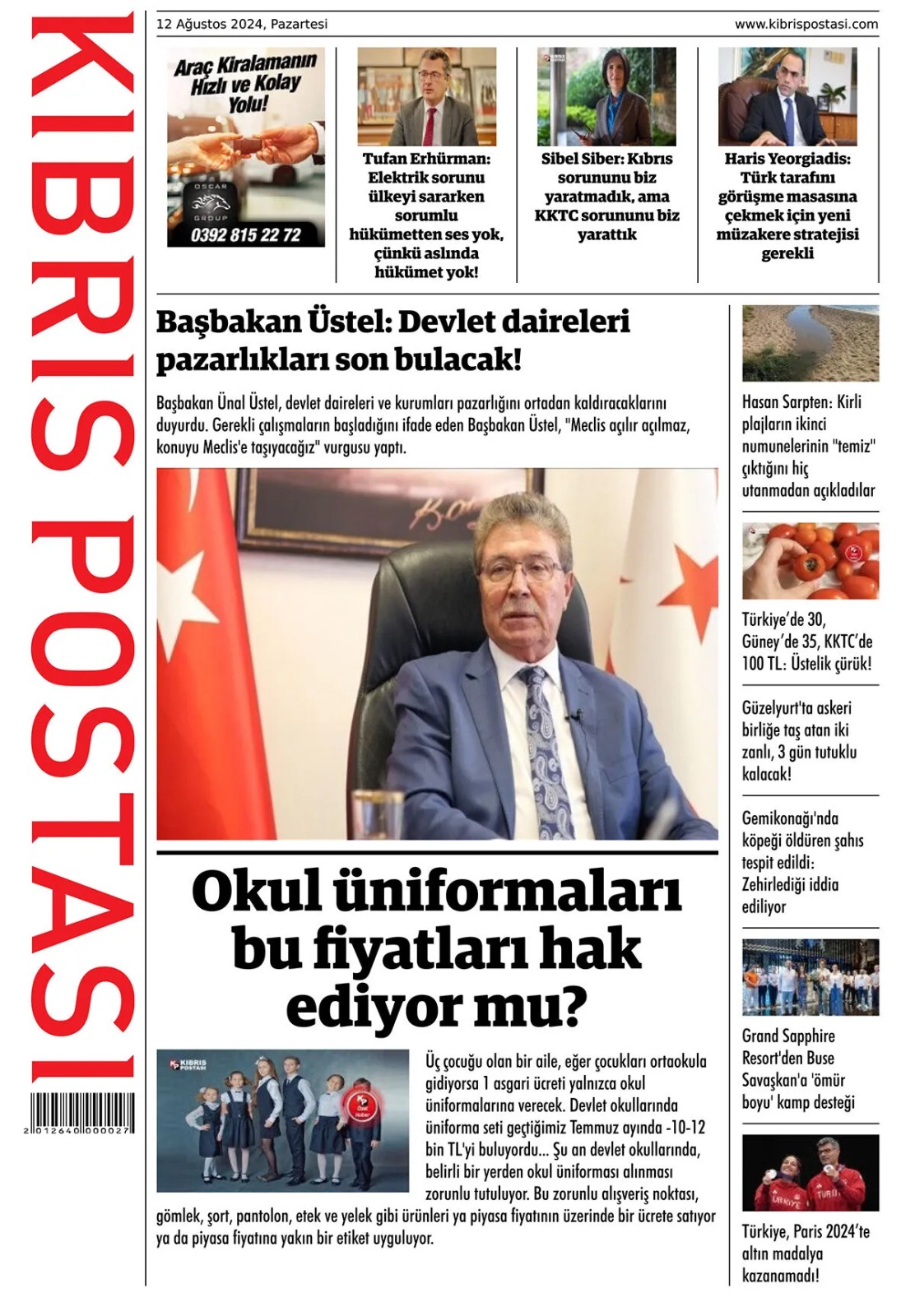 12 Ağustos 2024 Pazartesi Gazete Manşetleri