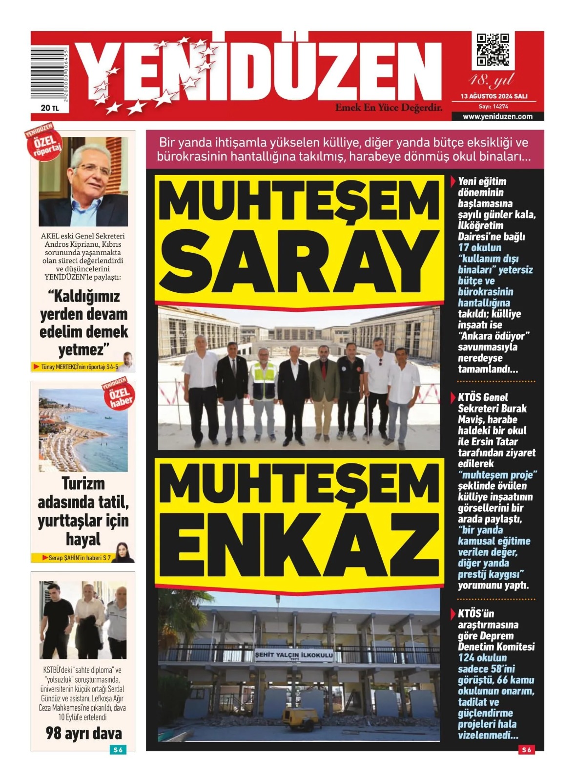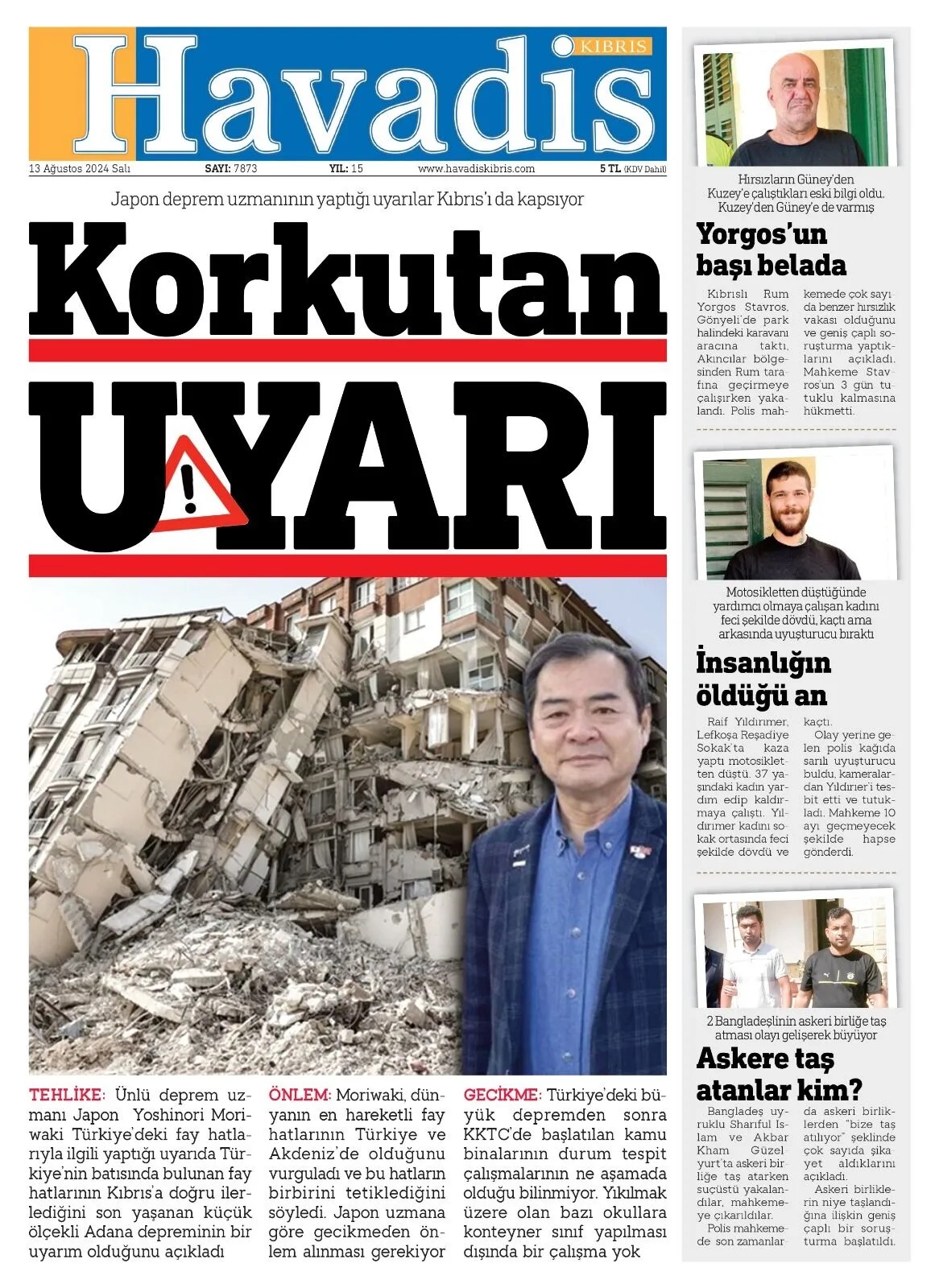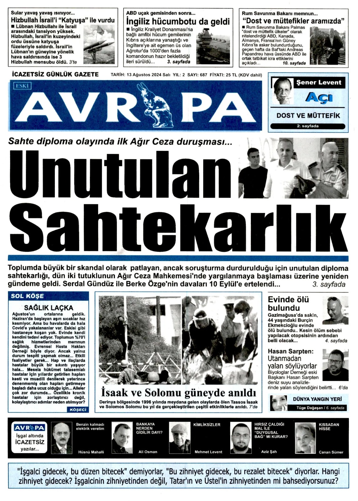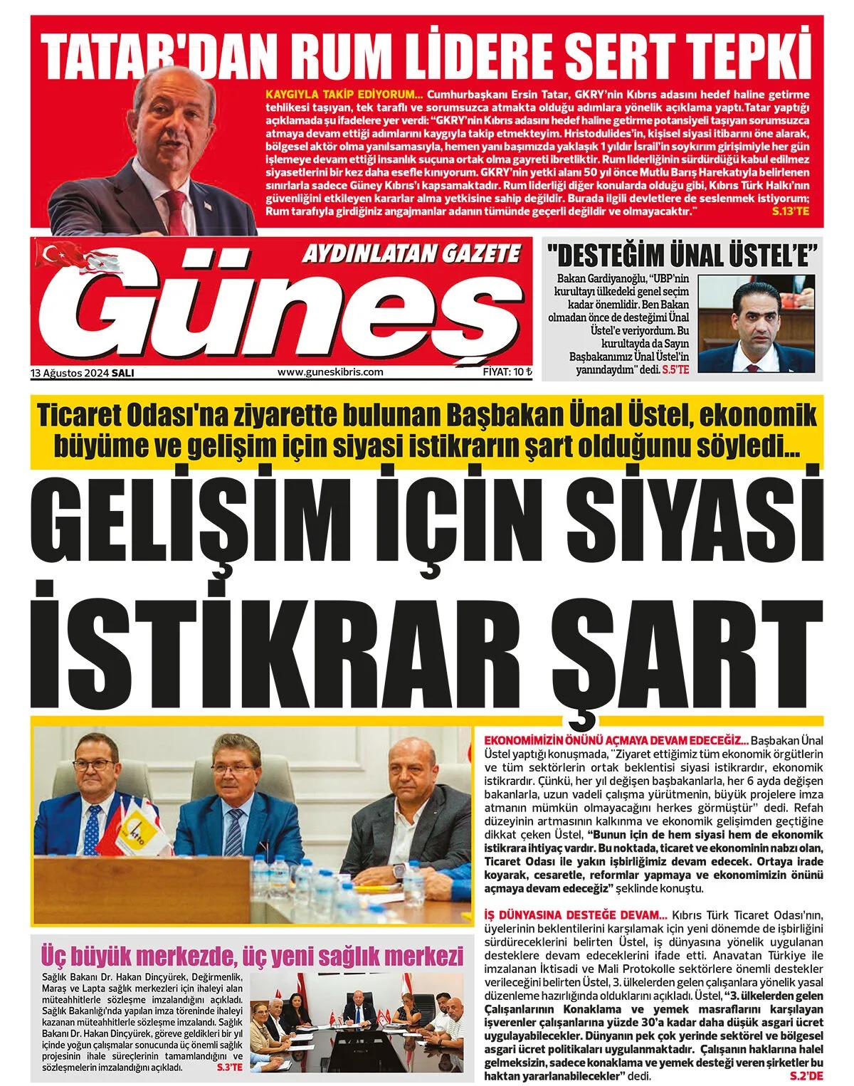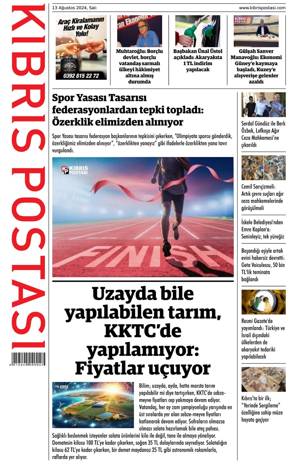 13 Ağustos 2024 Salı Gazete Manşetleri