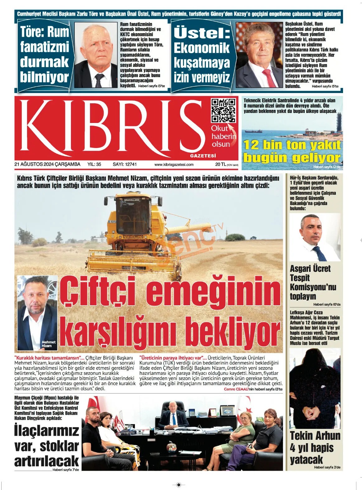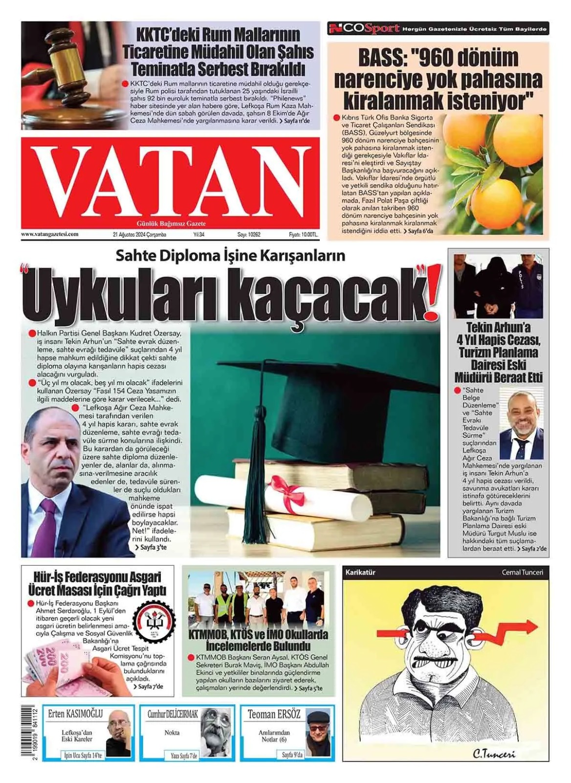 21 Ağustos 2024 Çarşamba Gazete Manşetleri