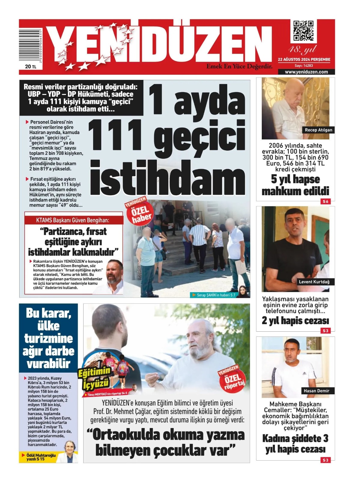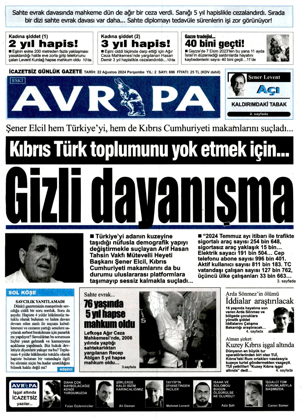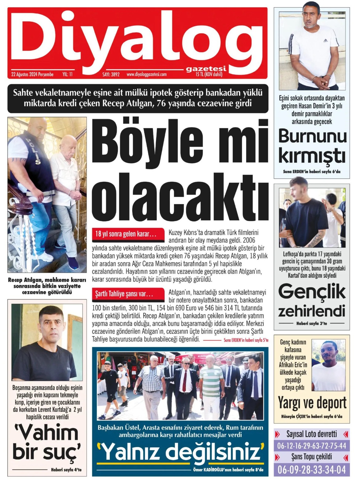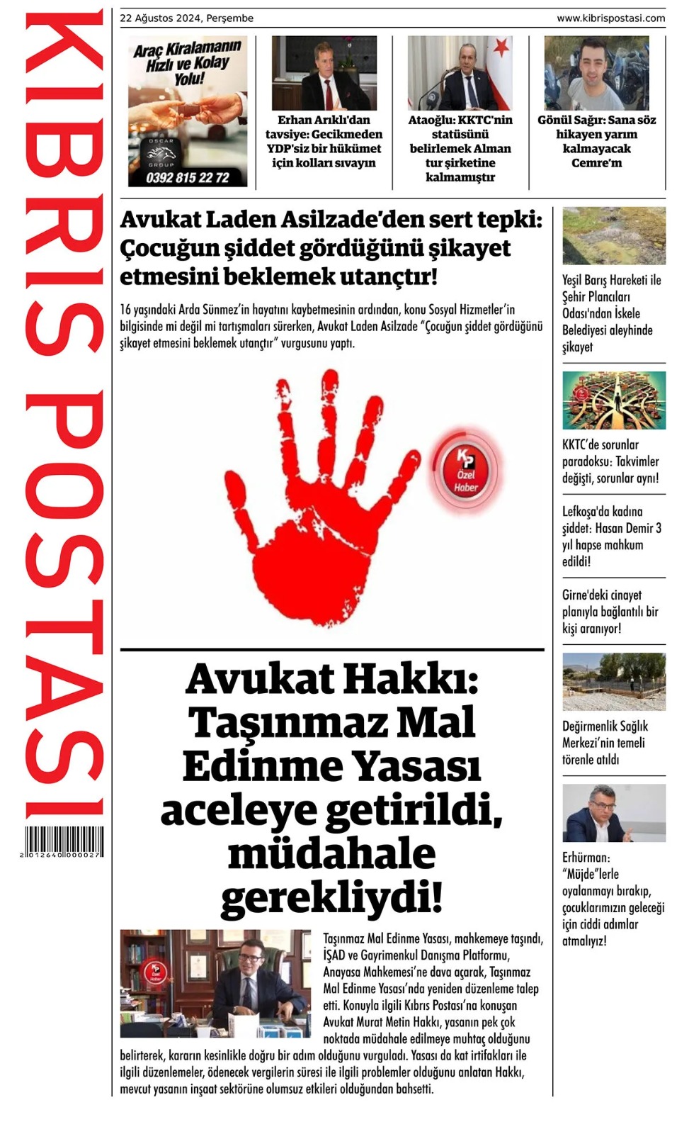 22 Ağustos 2024 Perşembe Gazete Manşetleri