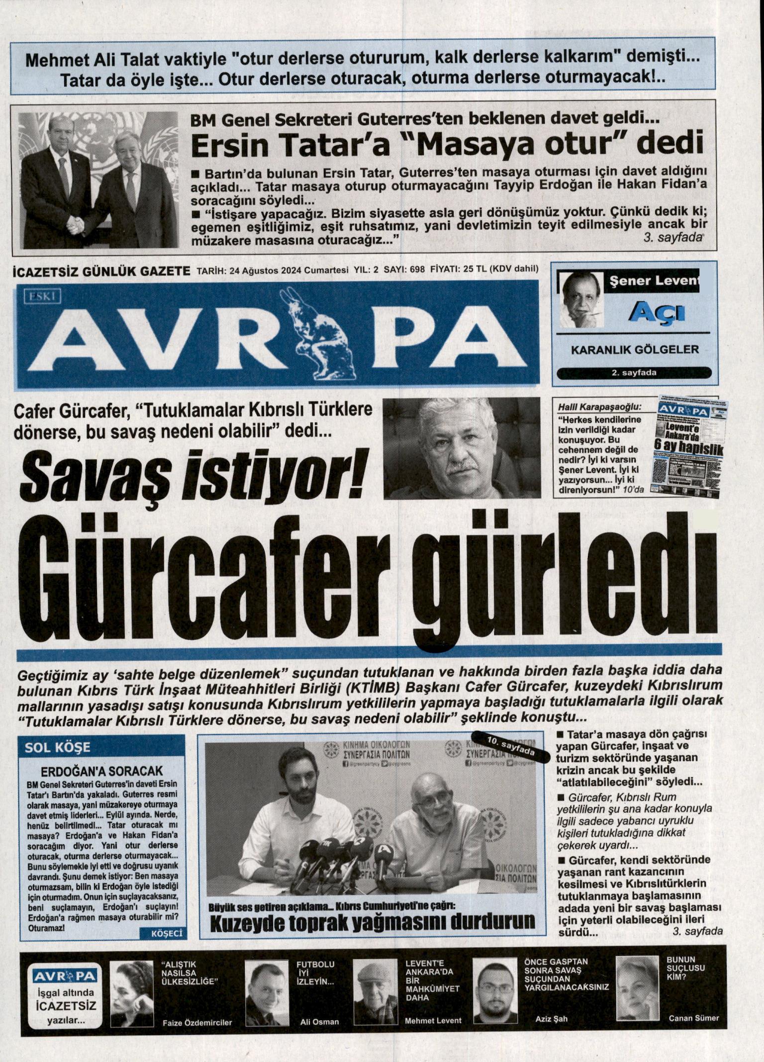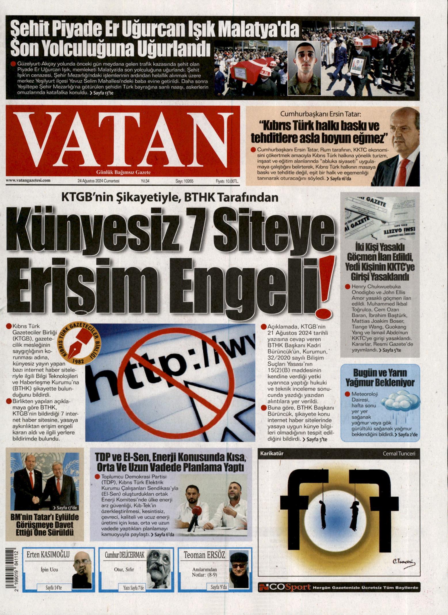 #24 Ağustos 2024 Cumartesi gazete manşetleri