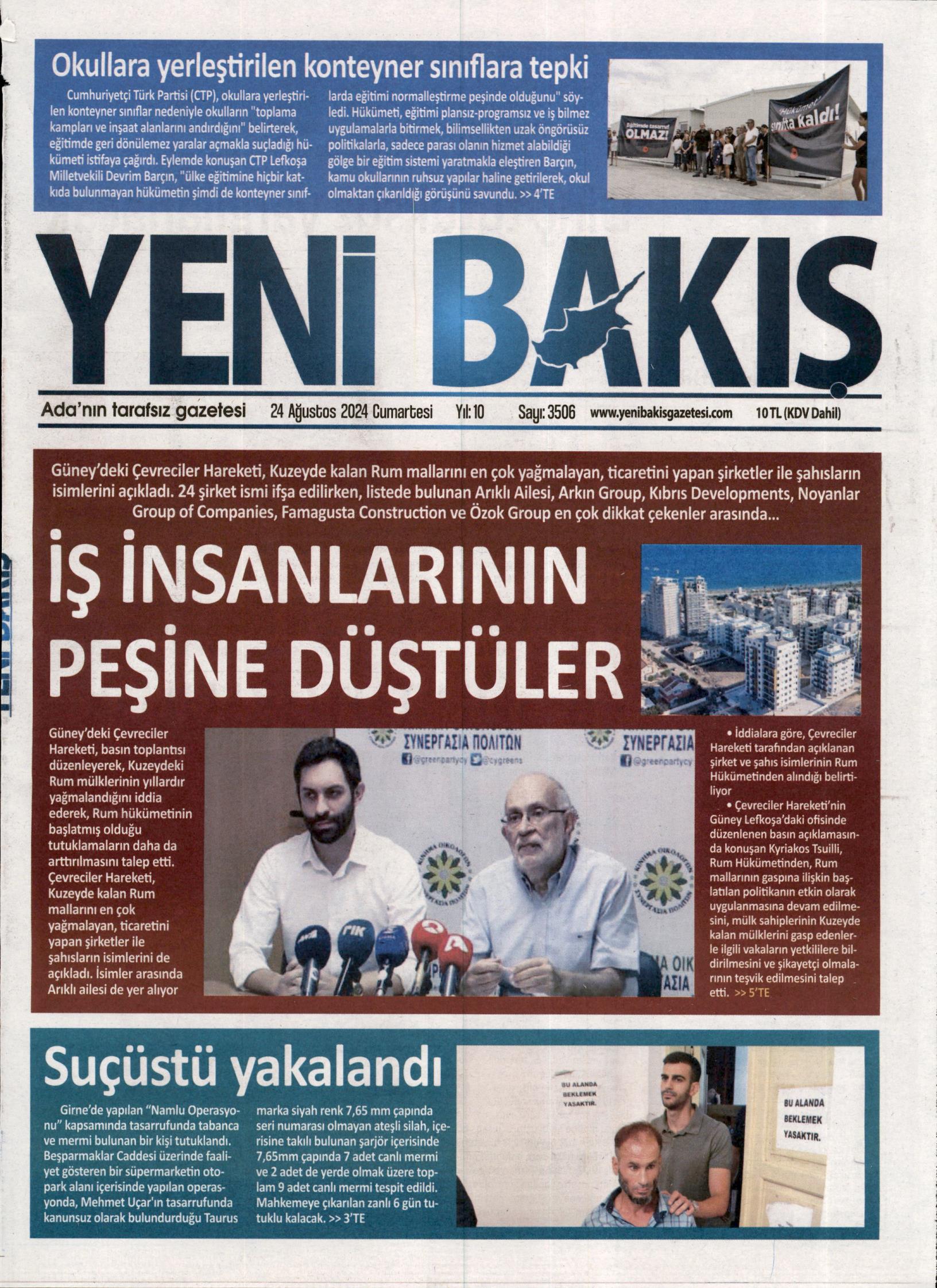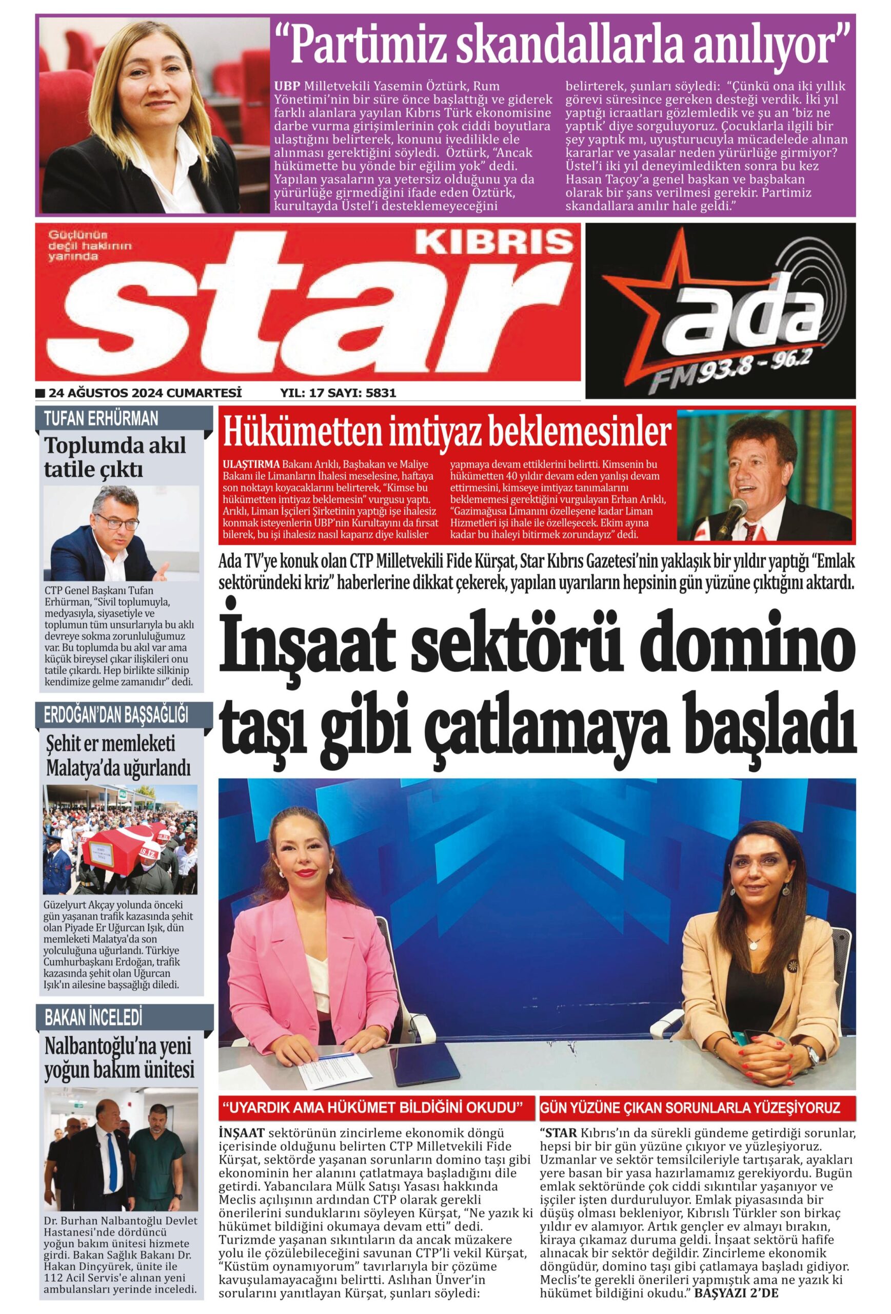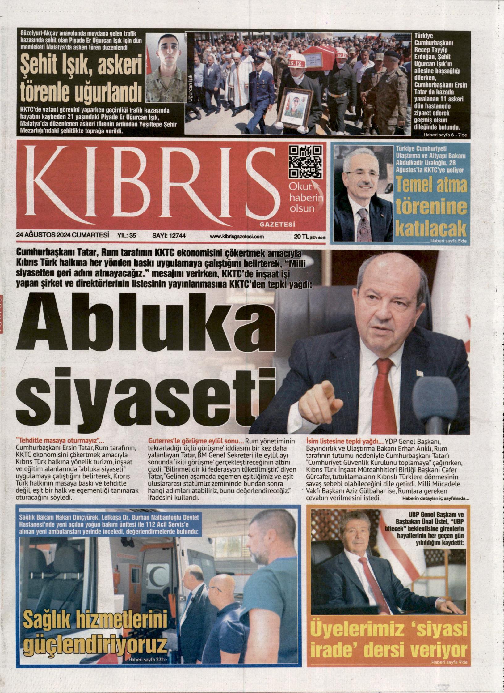 24 Ağustos 2024 Cumartesi gazete manşetleri