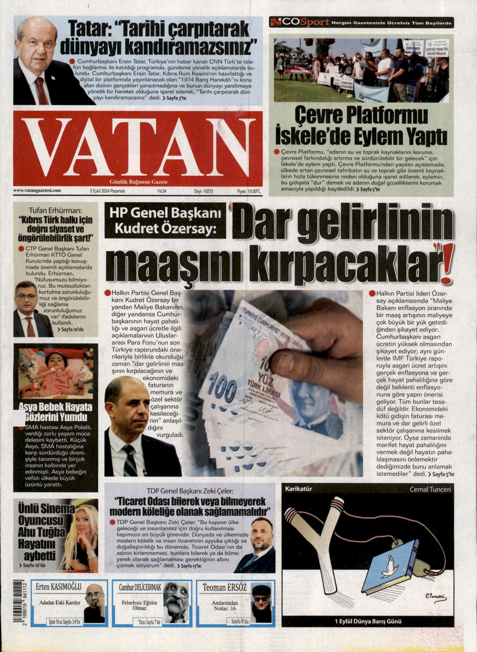 2 Eylül 2024 Pazartesi Gazete Manşetleri