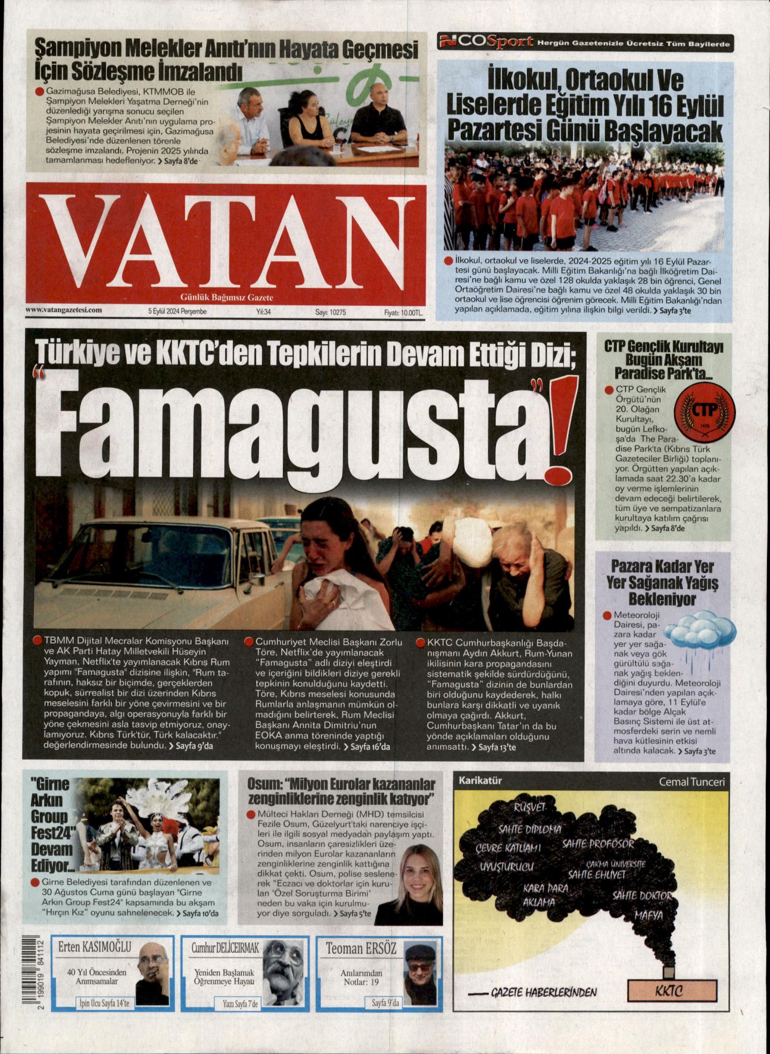 5 Eylül 2024 Perşembe Gazete Manşetleri