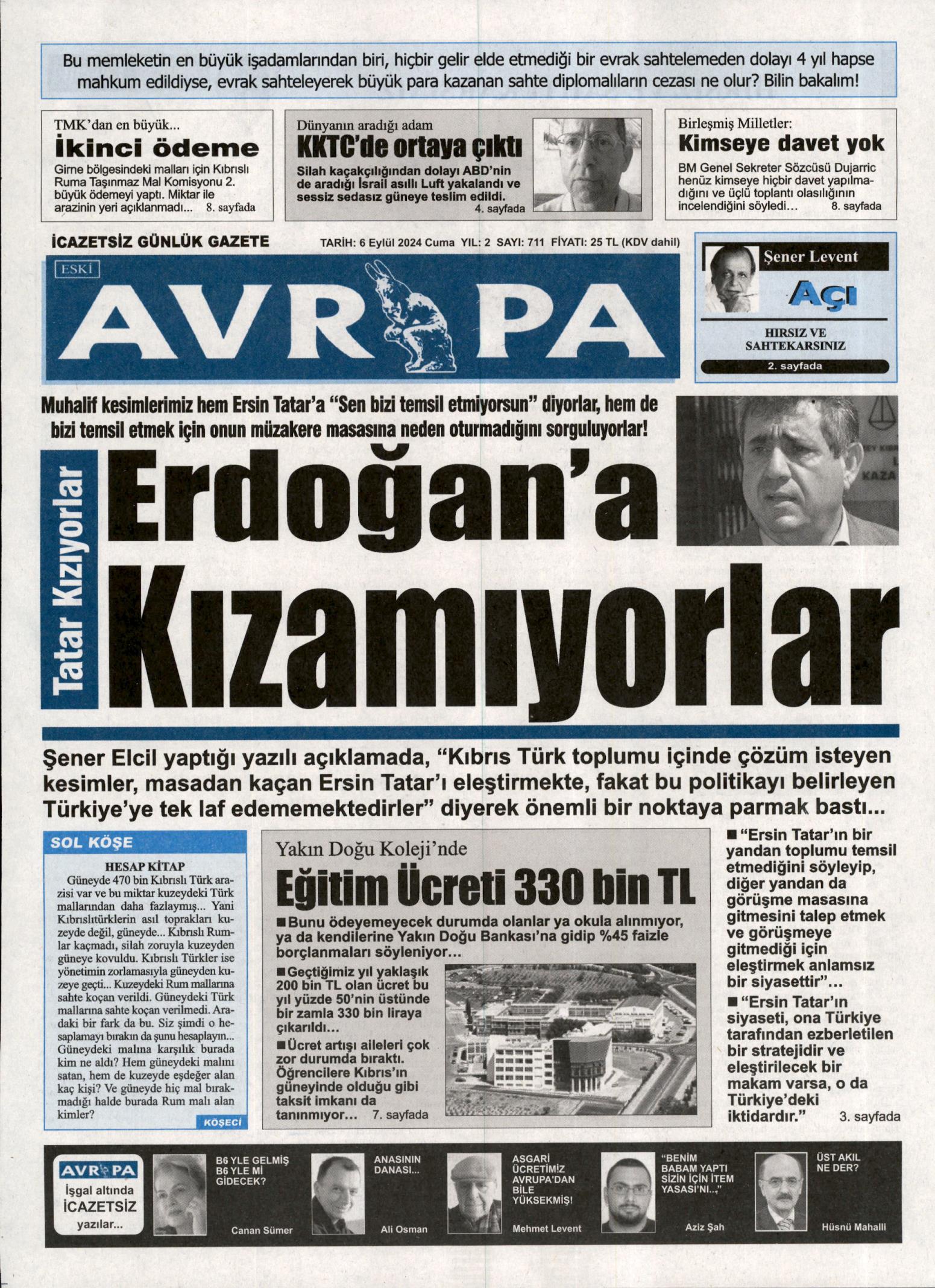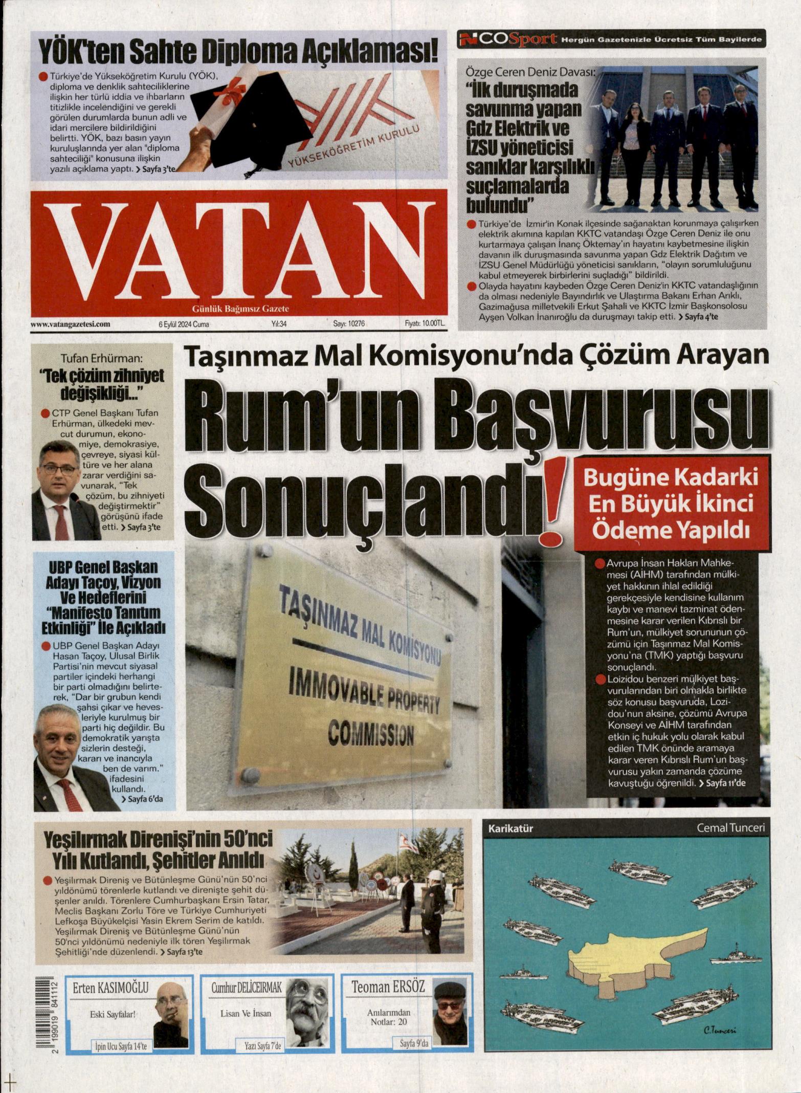 6 Eylül 2024 Cuma Gazete Manşetleri