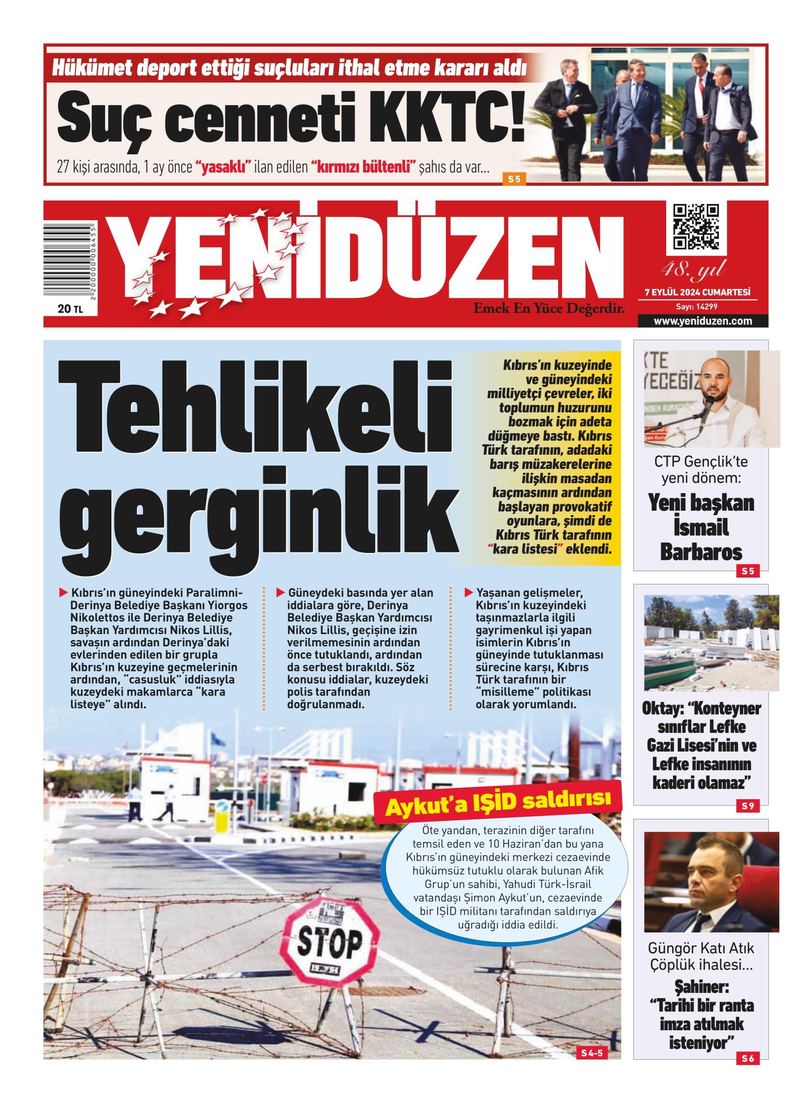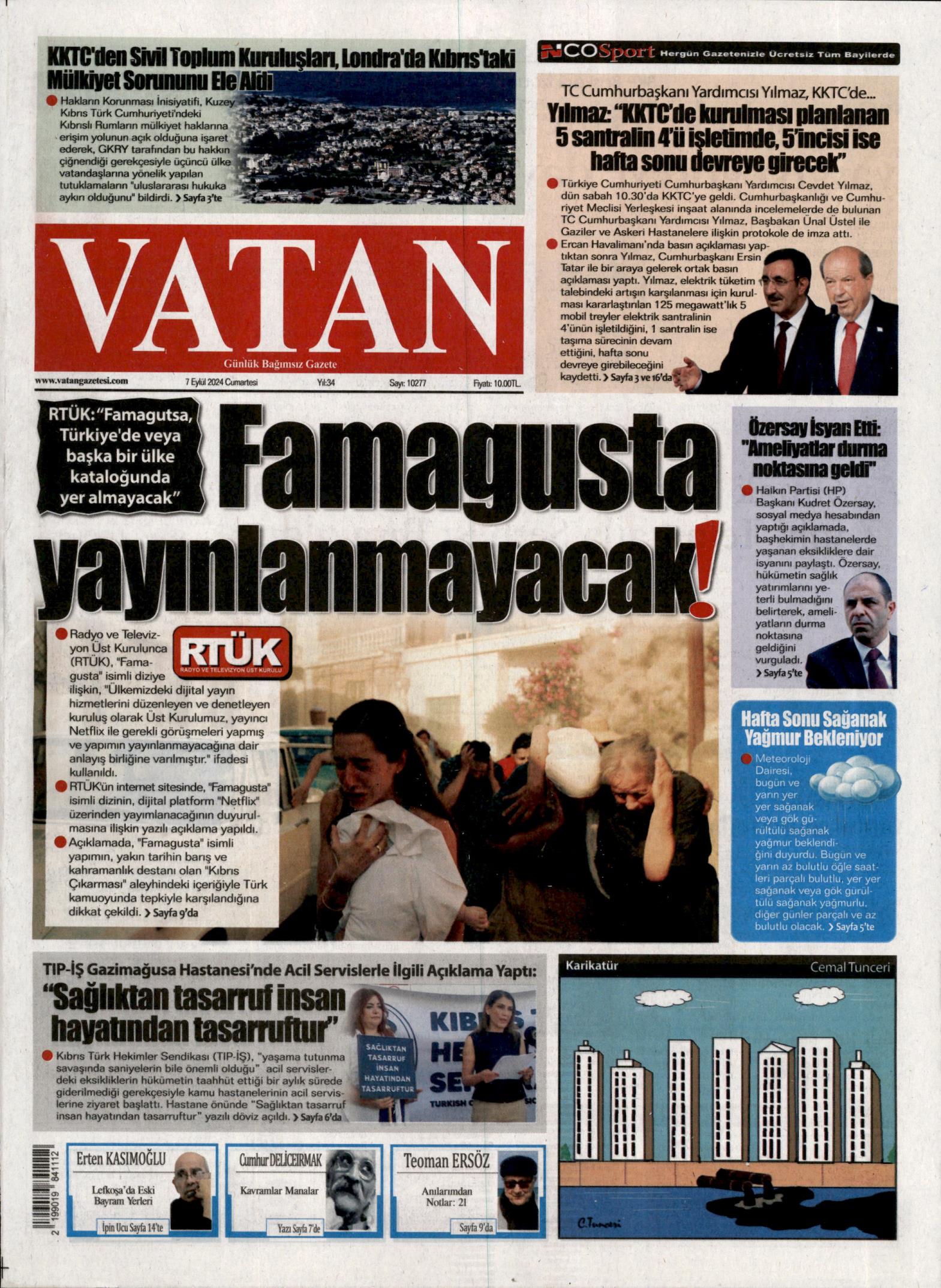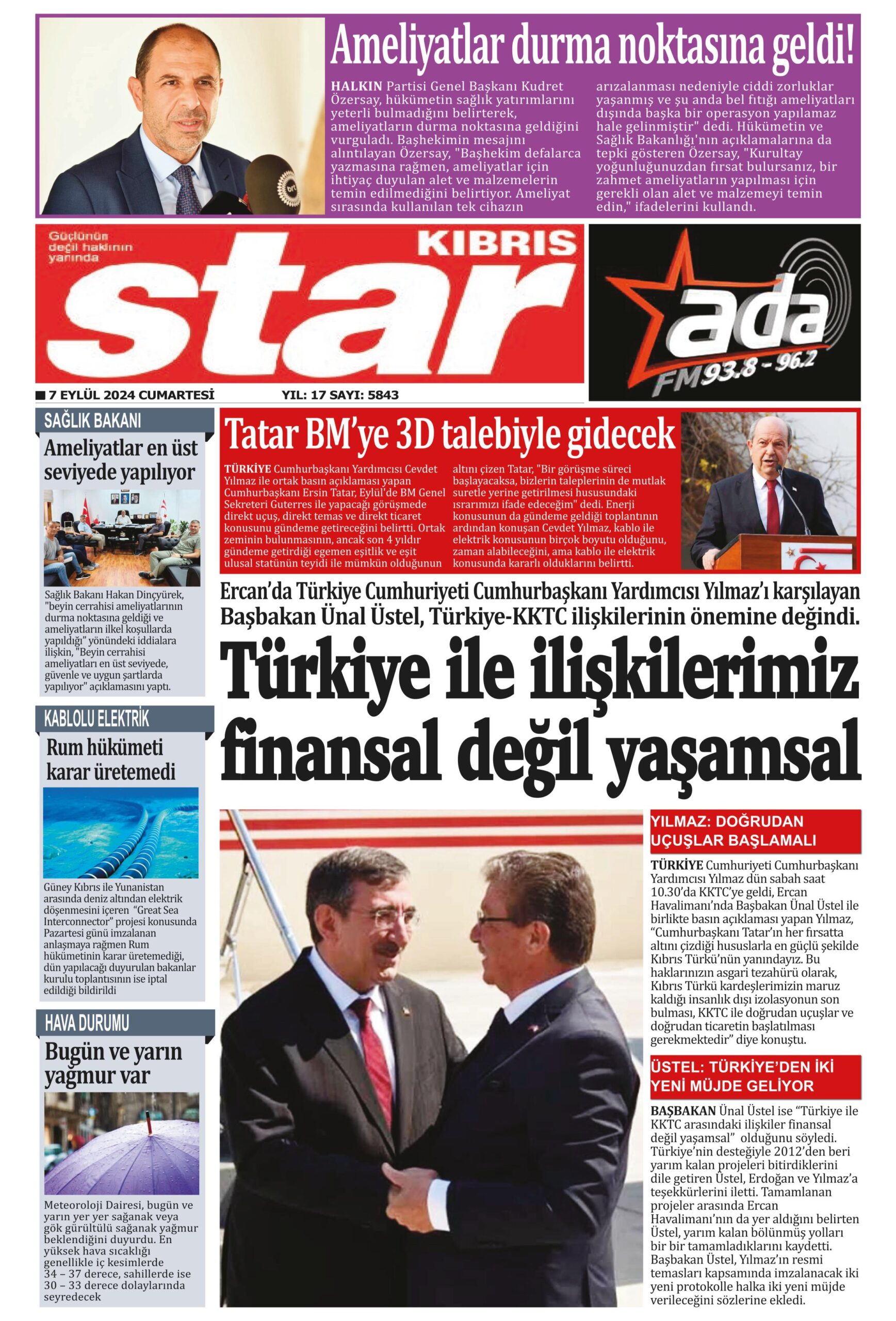 7 Eylül 2024 Cumartesi gazete manşetleri