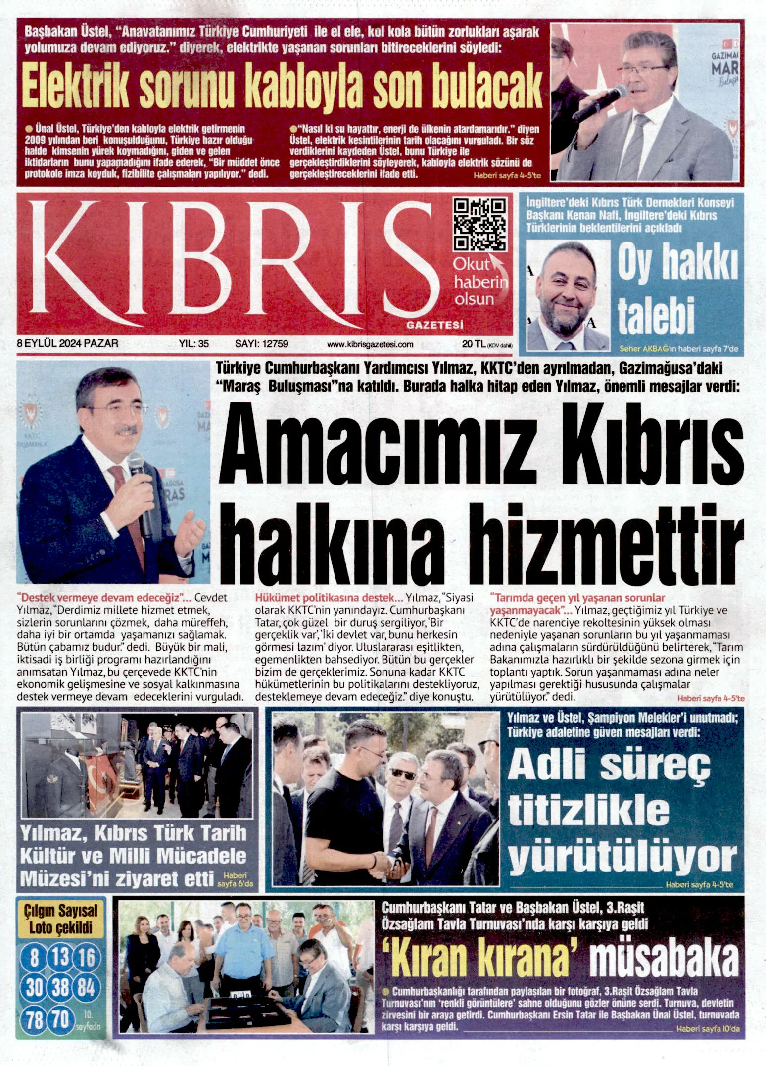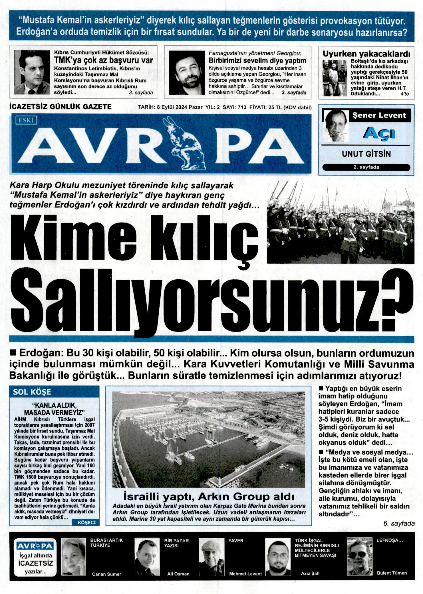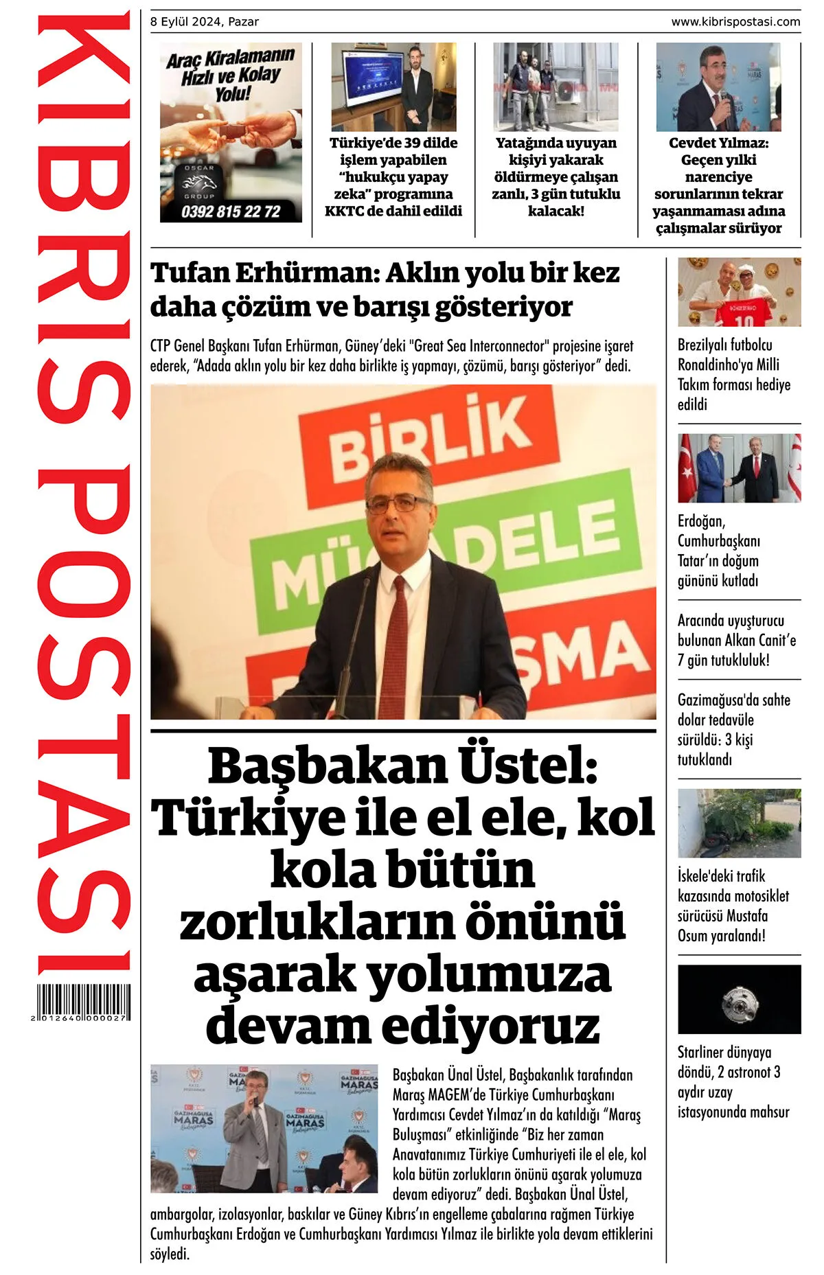 8 Eylül 2024 Pazar Gazete Manşetleri